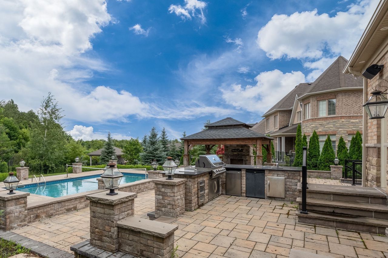 Show-stopper!! This French-inspired stone chateau, over 0.5 acre boasts approx. 4000sqft AG spanning 4 beds, 4 baths w/ two primary suites. Grand drive fin. w/ elegant pavers leads to breezeway & Triple garage. DD entry presents a formal living room & office moving to chef’s kitchen upgraded w/ Sub-zero B/I fridge, 6 burner stove w/ pot filler, large breakfast bar, separate wet bar w/ B/I wine fridge & much more! Large formal dining area fin. w/ banquette leads to great family room. Hardwood, Pot lights, & wainscoting thru -out. Circular stairs w/ wrought iron rails leads upstairs to primary suite w/ designer Island W/I closet & large 5-piece ensuite w/ claw-foot tub. 2nd bed w/ large W/I closet & 4-piece ensuite. 3rd & 4th bed w/ J&J bath. B/I Closet organizers thru-out. Resort-style patio w/ pavers, summer kitchen, canopy gazebo, wood burning fireplace, & IG pool!!Proudly presenting Holdroyd, French collection by Intracorp, The Meadows in the Glen. Custom finishes thru-out, high ceilings, time-less layout & beautiful landscaping! Do not miss the chance to see this rarely offered home.