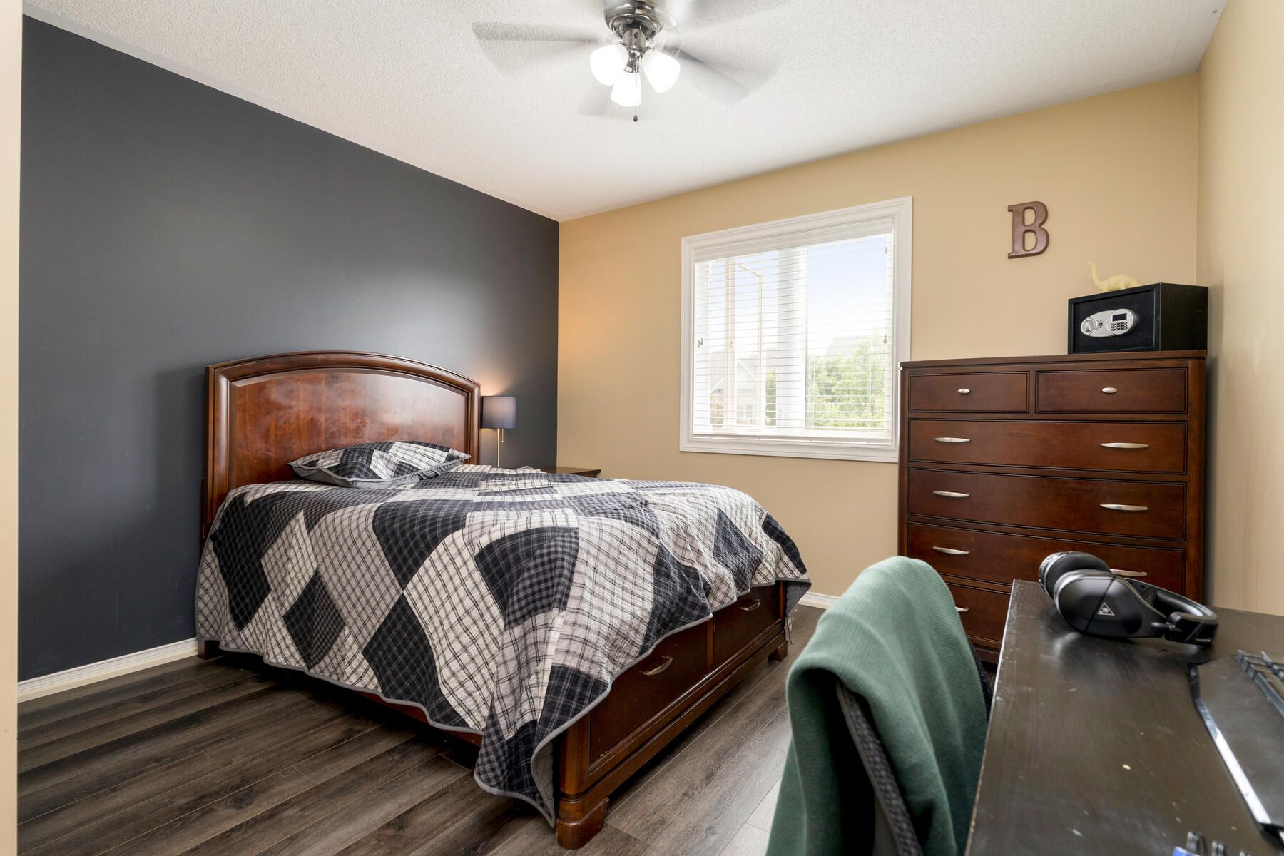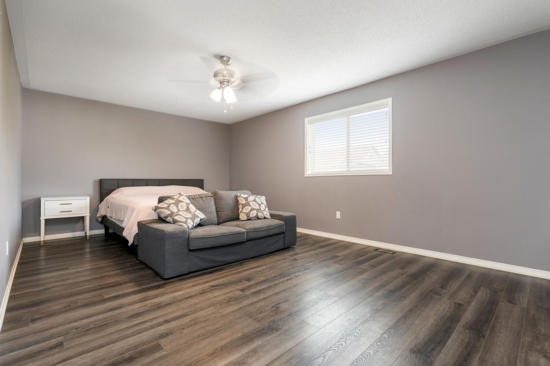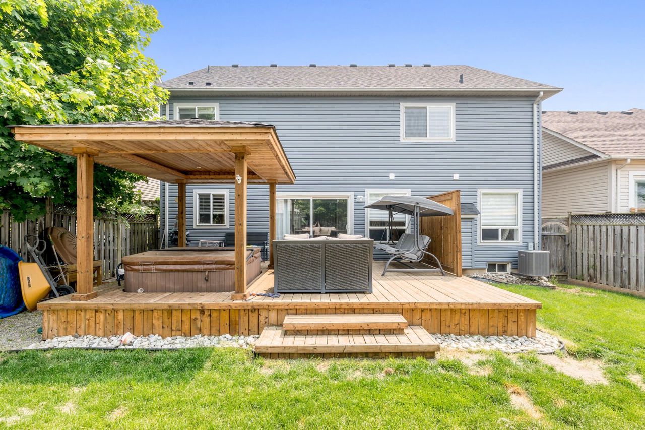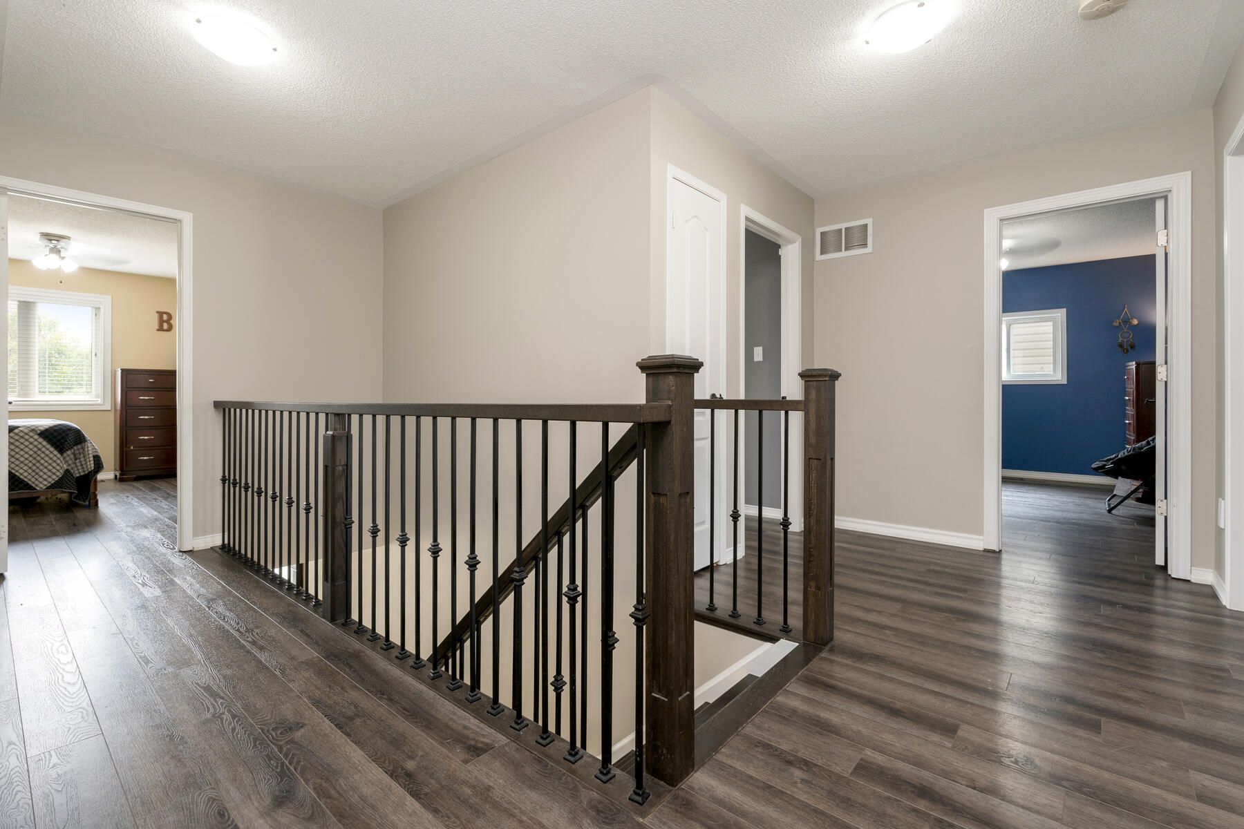 Large, family home in great neighbourhood! At 2,715 sq ft, this 5 bedroom, 3 bath home is the largest model in the subdivision. Nice curb appeal with newer siding & stone detailing plus newer garage doors & windows at the front. Covered front porch leads to spacious foyer. Open concept with large rooms- great for entertaining & everyday family life. Newer luxury vinyl floors are made to withstand kids & pets. Kitchen has stainless steel appliances & large breakfast bar. Also, on main floor- family room w/ gas fireplace, living room w/ bay window & separate dining room. Bright breakfast room leads out to the fully fenced backyard. Deck has privacy screen & built-in hot tub with a roof above it. Garage has convenient inside access to mud/laundry rm. Hardwood staircase. All 5 bedrooms are on the same level. Primary boasts 2 walk-in closets & huge ensuite with jetted tub and shower. Double sinks makes getting ready for work a breeze! Unfinished basement holds lots of potential......or just enjoy as-is. There’s a to-scale hockey rink painted on the floor! Walk, in just minutes, to schools, skatepark, playgrounds, arena, greenbelt nature trails & more! Don’t miss out- book your showing today!