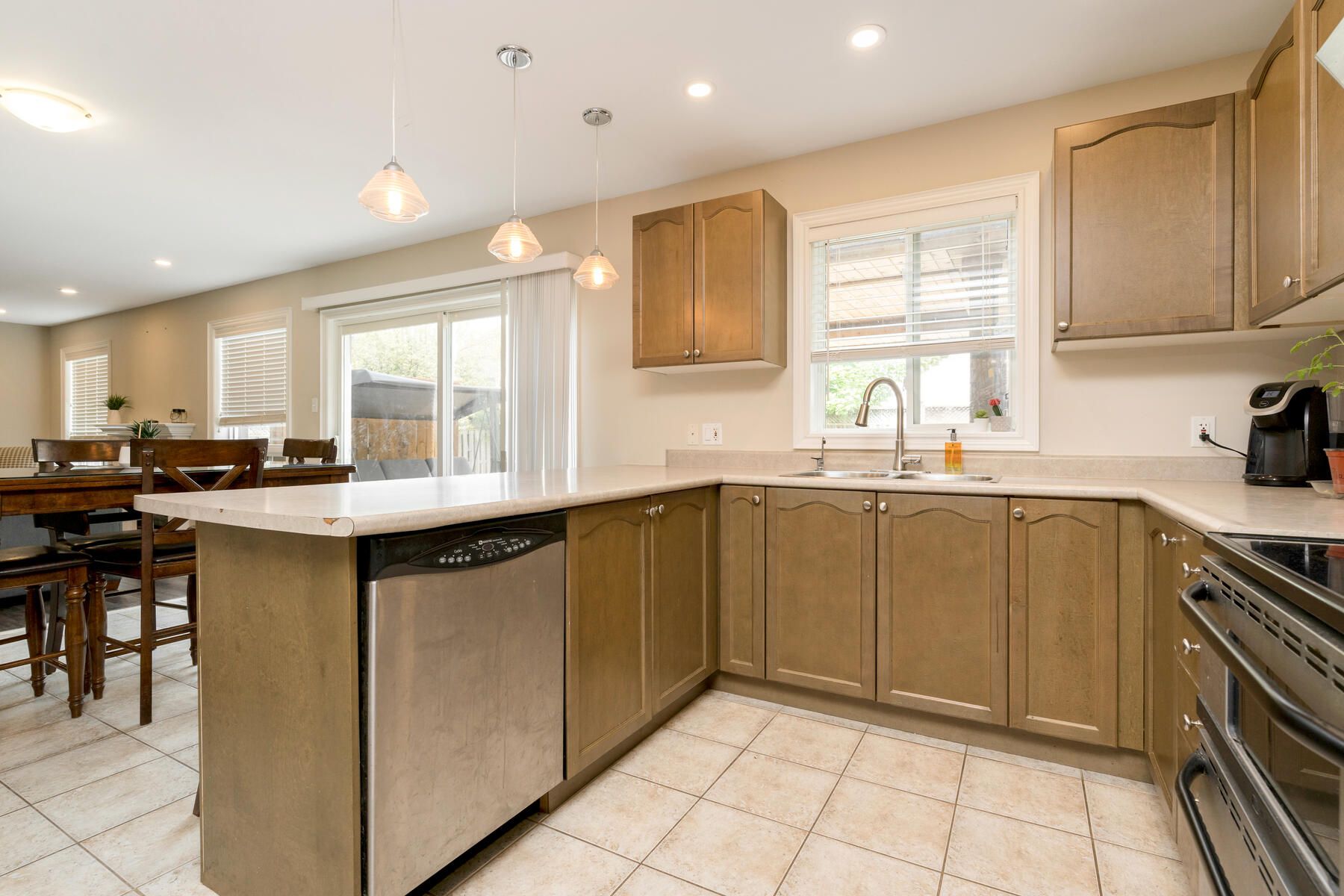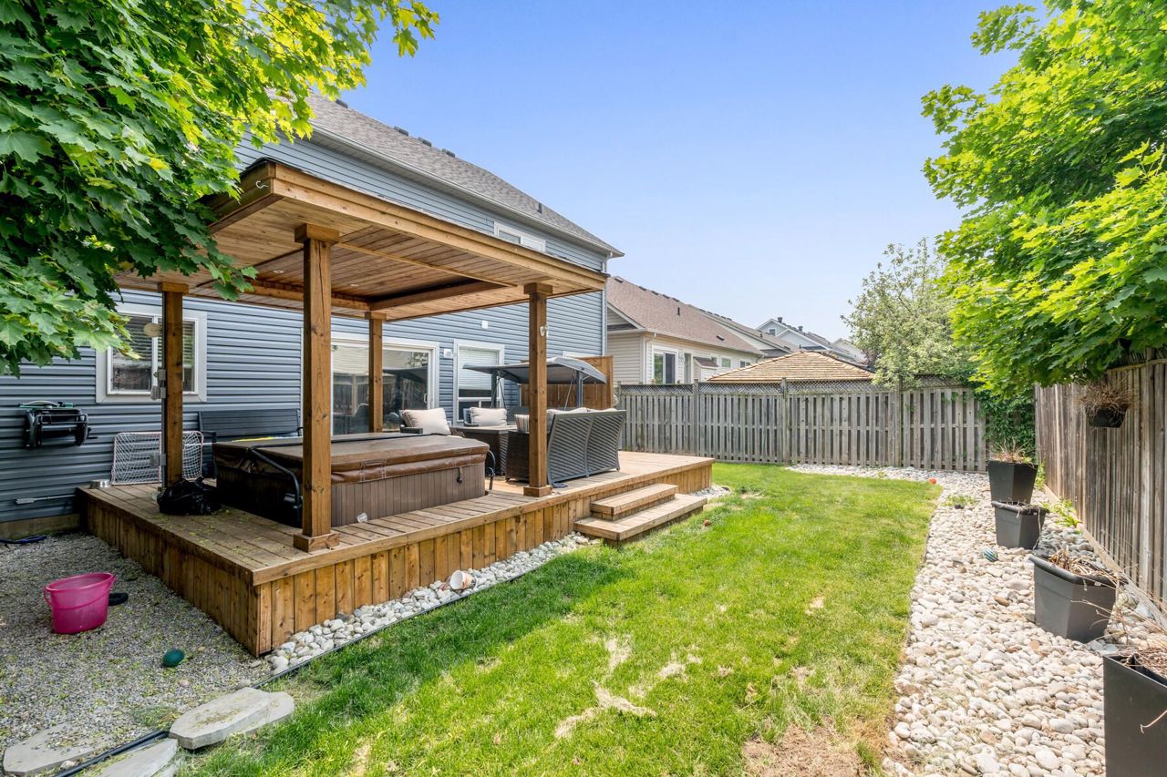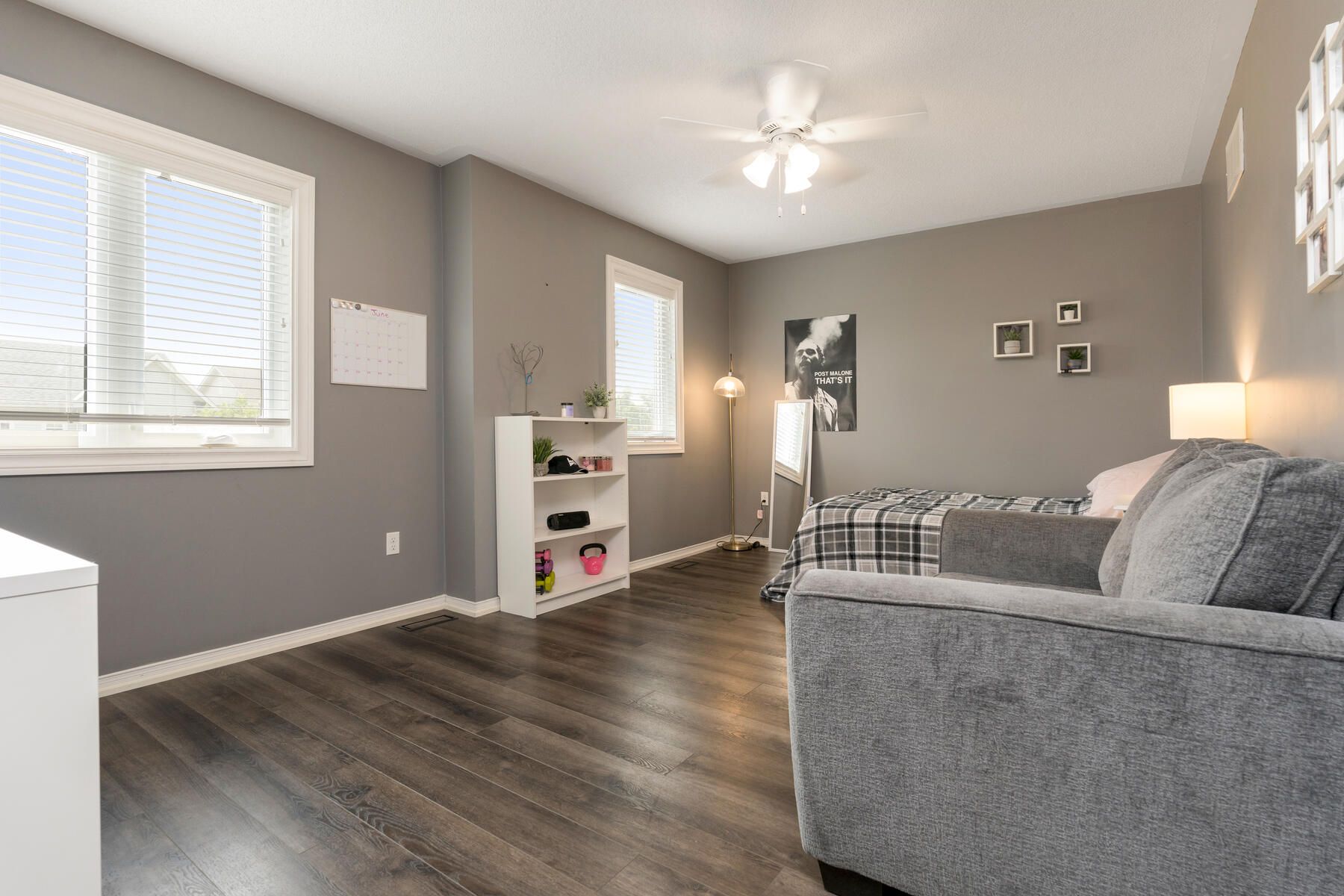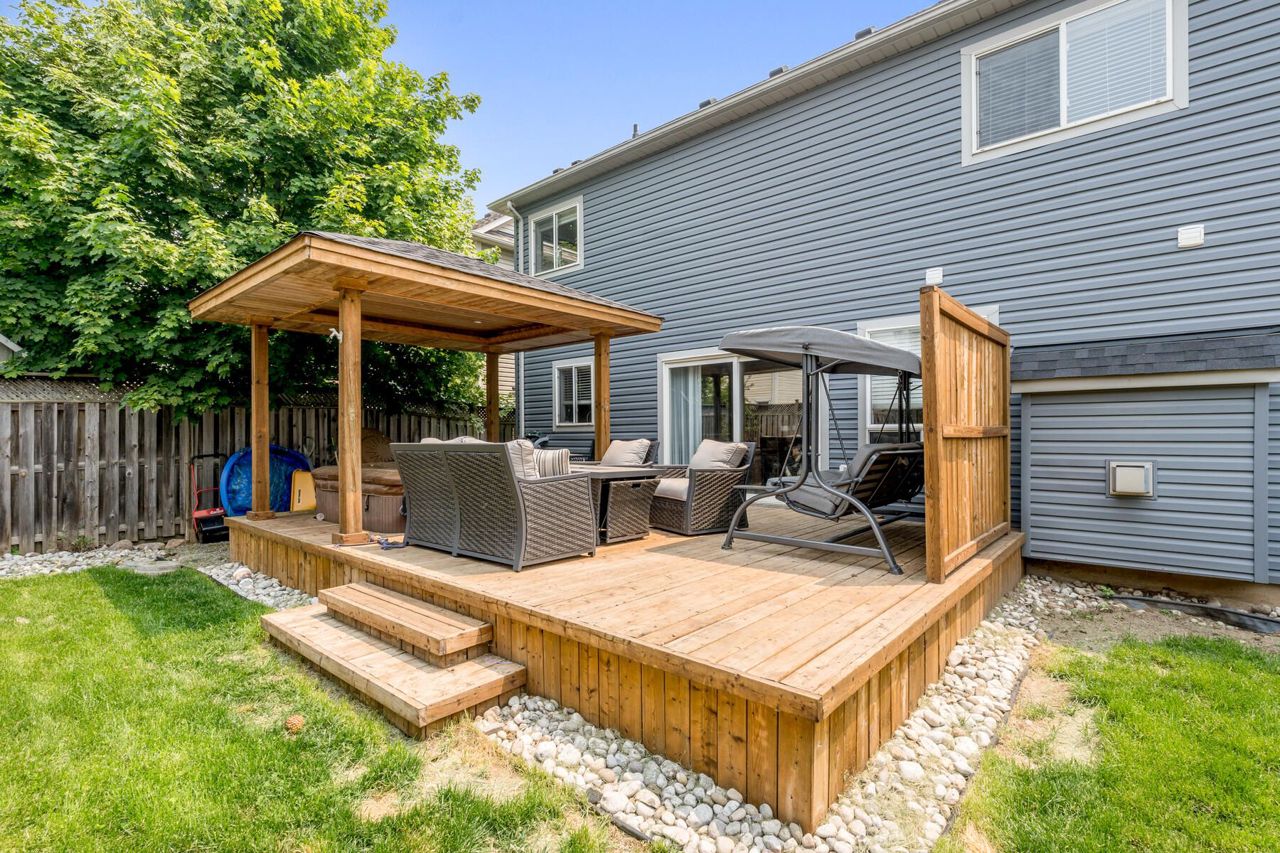 Large, family home in great neighbourhood! At 2,715 sq ft, this 5 bedroom, 3 bath home is the largest model in the subdivision. Nice curb appeal with newer siding & stone detailing plus newer garage doors & windows at the front. Covered front porch leads to spacious foyer. Open concept with large rooms- great for entertaining & everyday family life. Newer luxury vinyl floors are made to withstand kids & pets. Kitchen has stainless steel appliances & large breakfast bar. Also, on main floor- family room w/ gas fireplace, living room w/ bay window & separate dining room. Bright breakfast room leads out to the fully fenced backyard. Deck has privacy screen & built-in hot tub with a roof above it. Garage has convenient inside access to mud/laundry rm. Hardwood staircase. All 5 bedrooms are on the same level. Primary boasts 2 walk-in closets & huge ensuite with jetted tub and shower. Double sinks makes getting ready for work a breeze! Unfinished basement holds lots of potential......or just enjoy as-is. There’s a to-scale hockey rink painted on the floor! Walk, in just minutes, to schools, skatepark, playgrounds, arena, greenbelt nature trails & more! Don’t miss out- book your showing today!