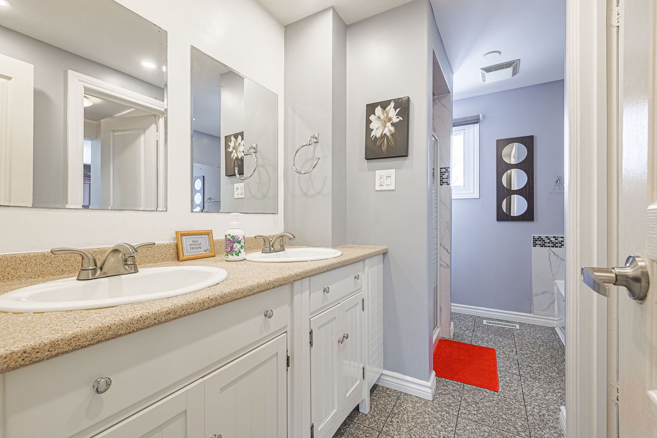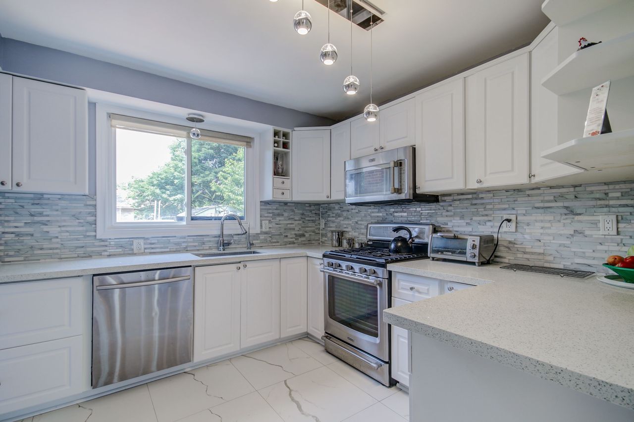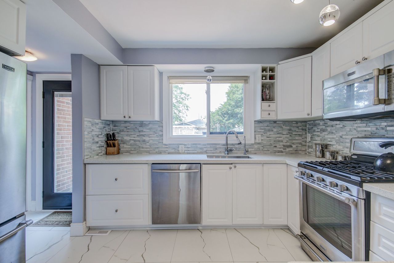 Rare 5BR home with expansive backyard!! Brand new kitchen: quartz countertops, ample storage & porcelain backsplash. W/O FR & DR to cedar deck. All Bedrooms w/ hardwood floors. Master BR: his/hers closets & semi 5 pc ensuite. Garage access to finished basement including: 5 pc bath, rec room, fireplace & laundry. Summer delights: firepit, large shed & wide deck. Extended 5-car driveway. Excellent rental potential!
