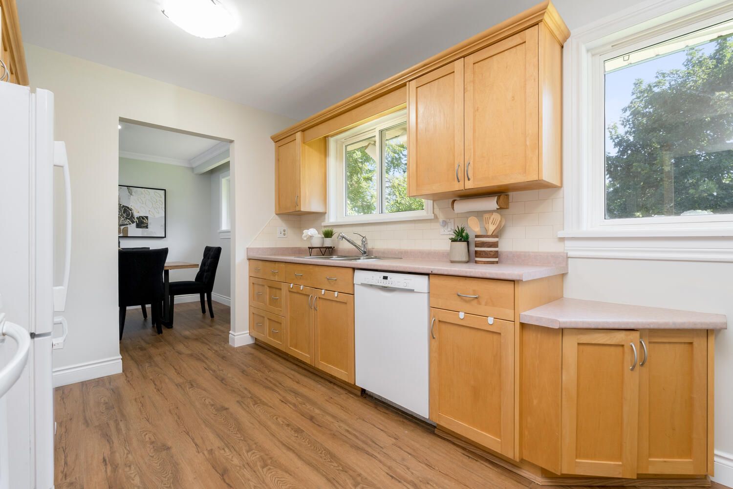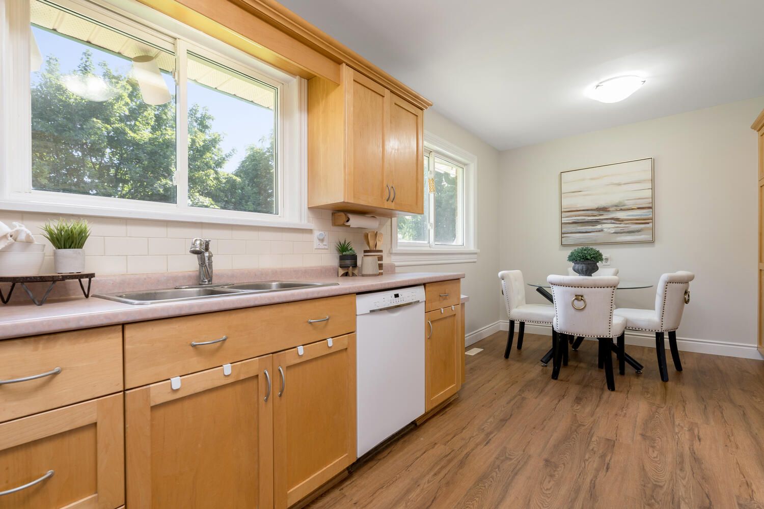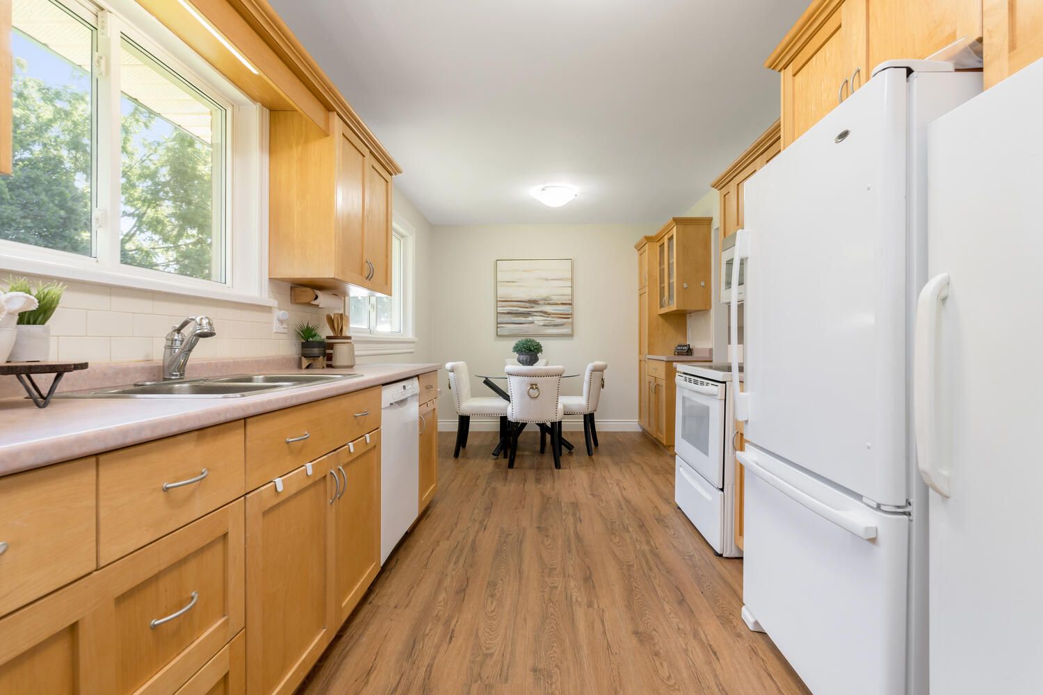 Vinyl Floor Eat-In Kitchen O/Looks Backyard