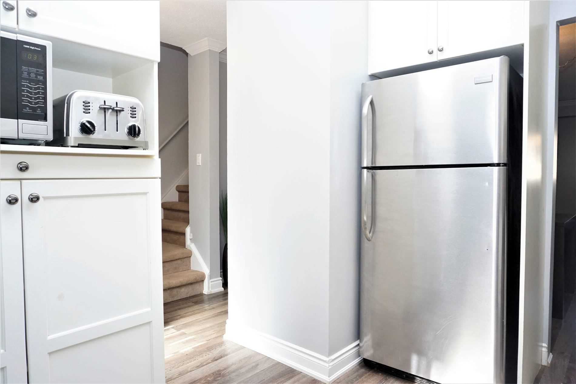 Time To Get Into The Market, Great Opportunity For Home Ownership End Unit Condo Townhouse,Spacious 1214Sq.Ft. Open Concept Living&Dining Rms W/Crown Molding W/O To Deck&Fenced Yard.Bright Kitchen W/Lrg Window+S/S Appliances.3 Bed, 1.5 Bath,Part Finished Bsmt W/Rec Rm,Excercise Rm,Natural Gas Heat&Central Air Conditioning.Parking In Front+Additional Rental Space Available.Enjoy Small Town Living In A Family Friendly Neighbourhood W/Schools, Shopping+Go Train Include: All Electric Light Fixtures, All Window Treatments, Fridge, Stove, Built-In Dishwasher, Clothes Washer + Dryer.