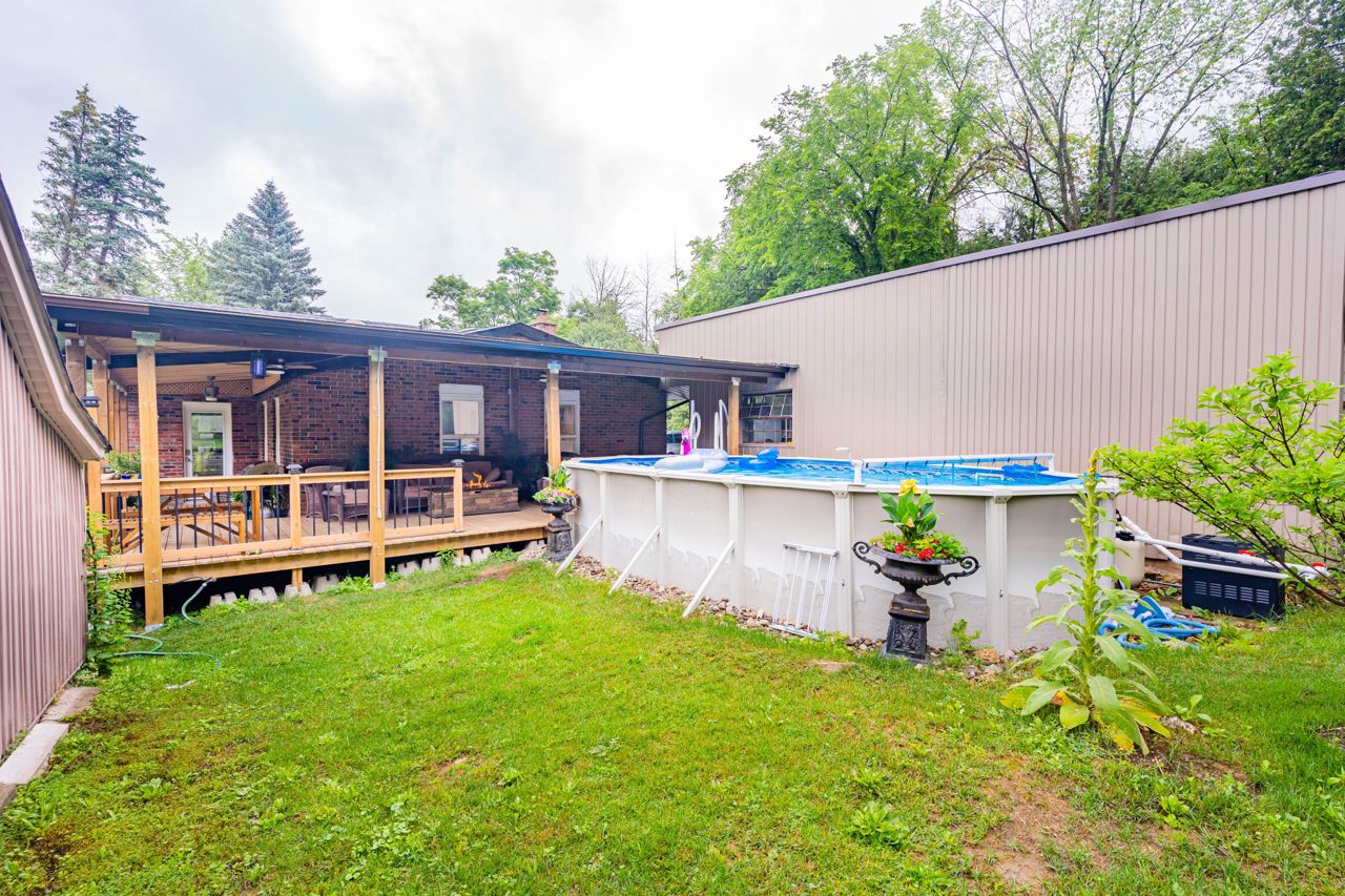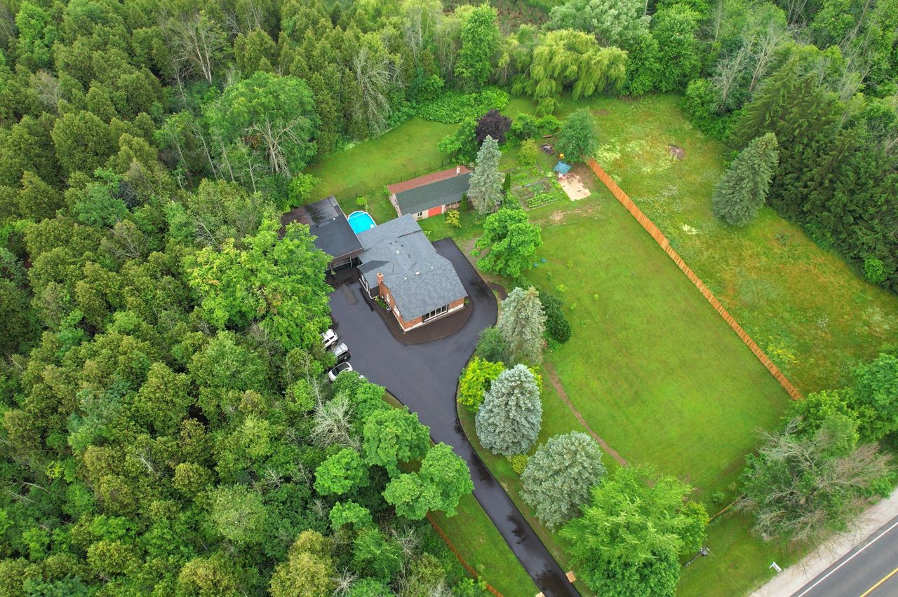 Completely upgraded 2 bed bungalow with finished 1 bed basement sitting on 1.1 acres .Property comes with oversized two car garage , also hooked with town water, natural gas line. Recently done Driveway & fencing around the Property. Completely Re-done inside with all new flooring , open concept kitchen with built-in appliances , Newly built wooden deck around the house and Above the Ground Pool, pot lights, roof , outdoor building & much more. Holds Great future potential. Easy proximity to Hwy 401, Georgetown, Guelph. Clear land with your private garden and An outdoor building.200 Amp Hydro Service. Shops With Hydro. Fridge, Stove, Washer & Dryer.