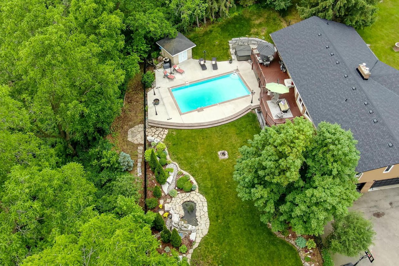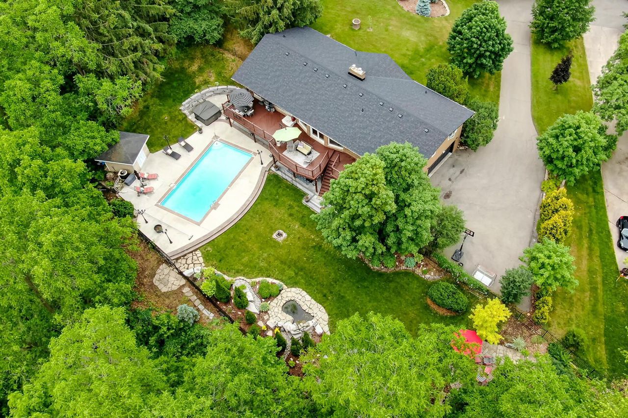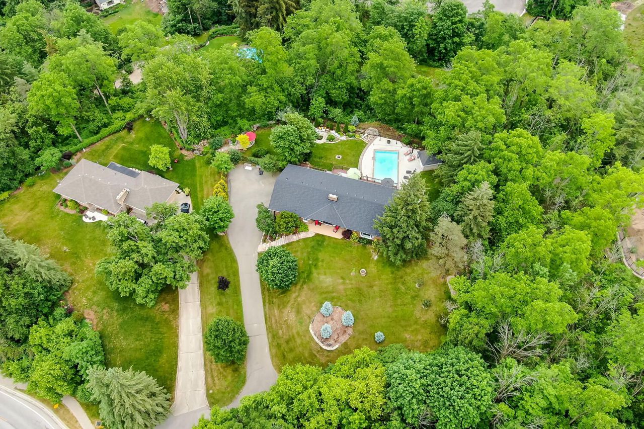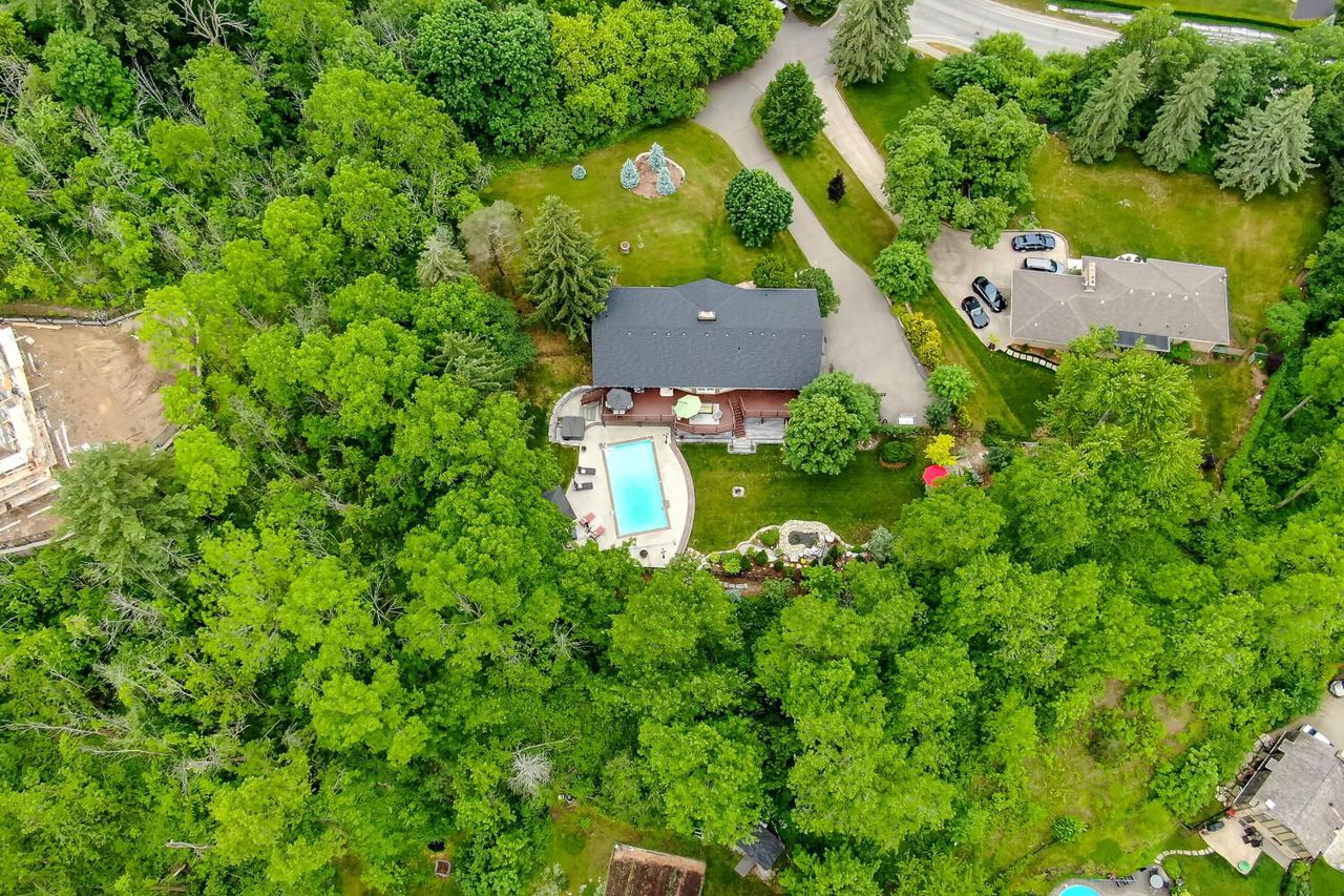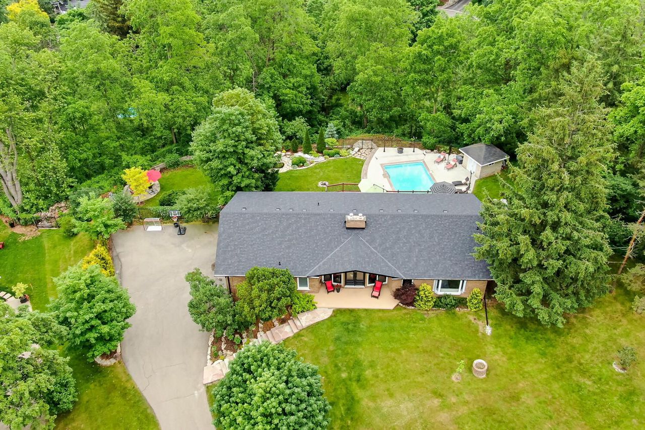 Fabulous executive ranch-style bungalow w'swimming pool on almost an acre in Glen Williams! This sprawling home is tucked up & away on coveted Wildwood Rd & features an open concept floorplan w'the beautiful kitchen having stainless steel appliances, centre island & granite counters & is open to the dining room & spacious living room that has a woodstove & offers stunning views from every window. The primary retreat boasts a lrg W/I closet & gorgeous renovated (2022) ensuite. There are 2 add'l lrg bdrms both w'lots of closet space & a pretty main bathroom. The main level has 3 W/Os to the expansive deck that adds to your living space. The bright lower level has an in-law suite w'separate entrance, kitchen, living area, bedroom & 3pc bathroom plus a huge rec room w'woodstove & W/O to a lovely covered patio where you can enjoy the yard in any weather. There is no need for a cottage w'the incredibly private resort-like backyard featuring an nground pool, tranquil pond, many quaint sittingareas to take in the breathtaking views & plenty of room to play. Located in the charming hamlet of Glen Williams: walking distance to cafes, restaurants, shops, trails & credit river with all of the conveniences of Georgetown minutes away!