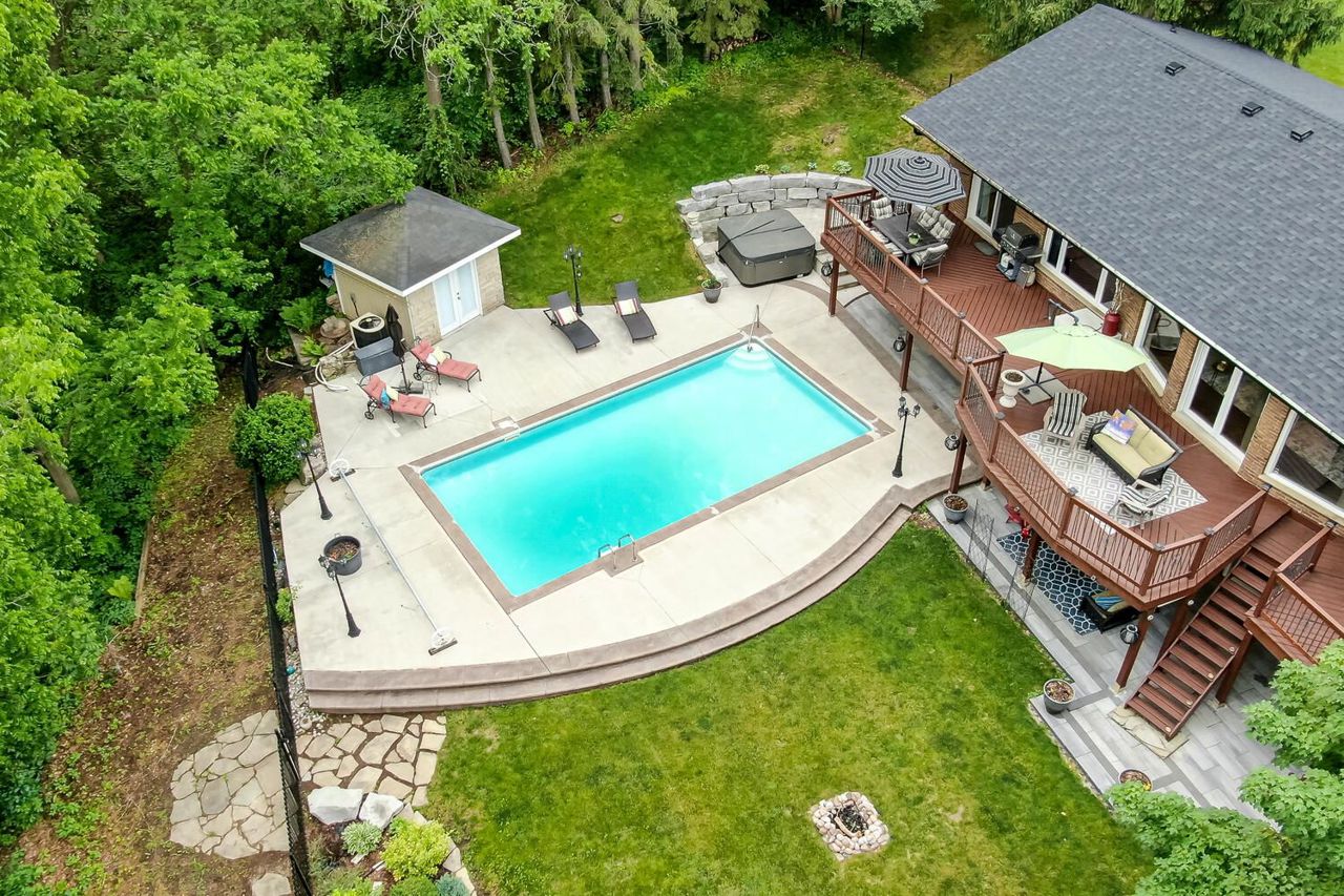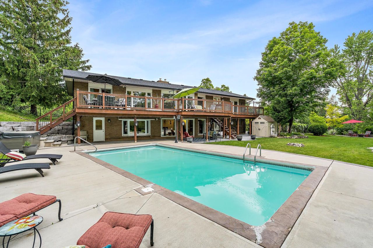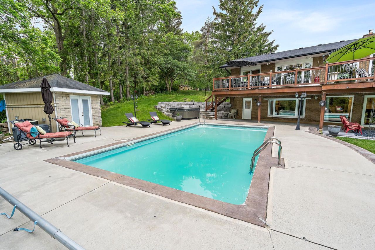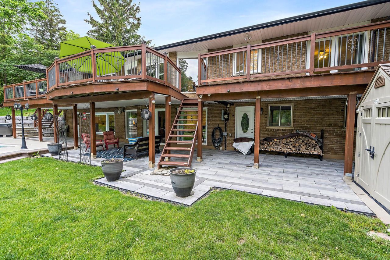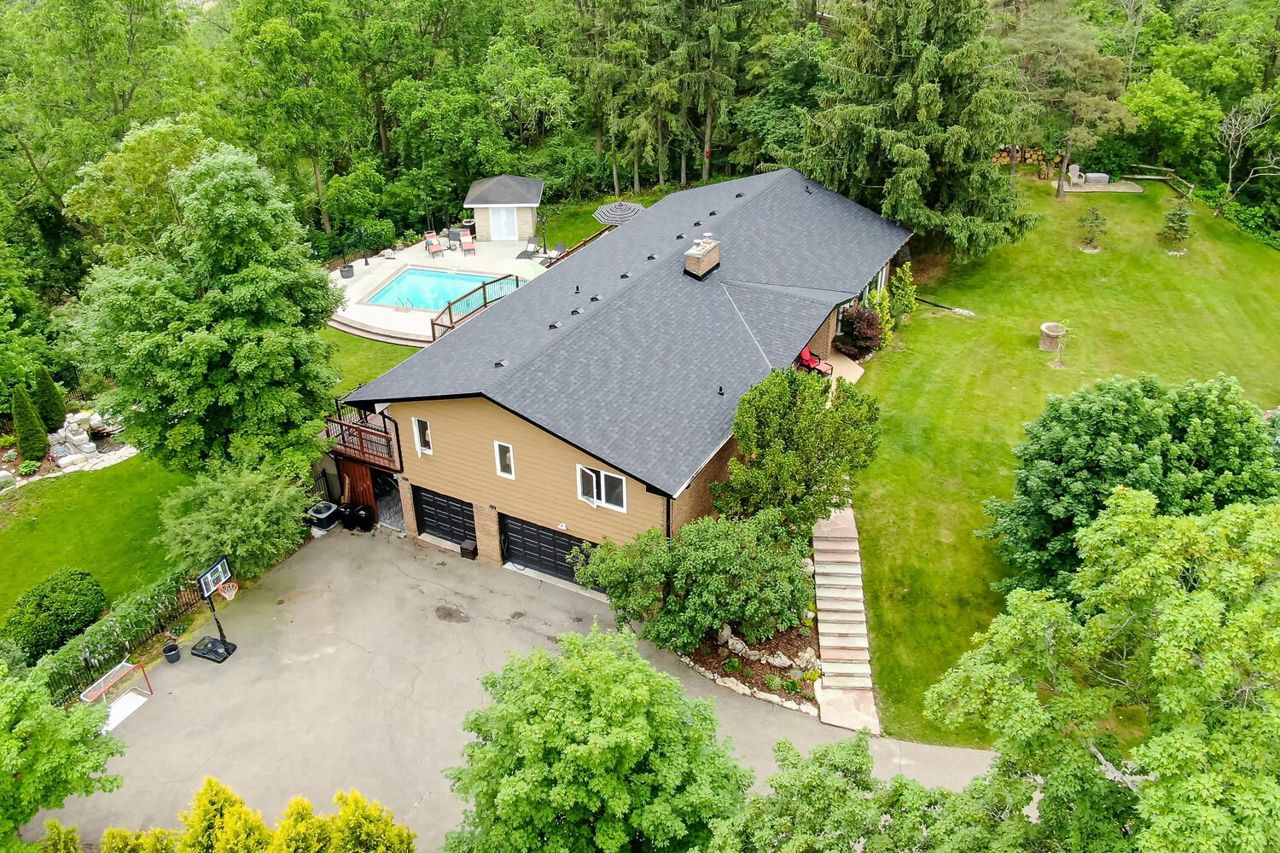 Fabulous executive ranch-style bungalow w'swimming pool on almost an acre in Glen Williams! This sprawling home is tucked up & away on coveted Wildwood Rd & features an open concept floorplan w'the beautiful kitchen having stainless steel appliances, centre island & granite counters & is open to the dining room & spacious living room that has a woodstove & offers stunning views from every window. The primary retreat boasts a lrg W/I closet & gorgeous renovated (2022) ensuite. There are 2 add'l lrg bdrms both w'lots of closet space & a pretty main bathroom. The main level has 3 W/Os to the expansive deck that adds to your living space. The bright lower level has an in-law suite w'separate entrance, kitchen, living area, bedroom & 3pc bathroom plus a huge rec room w'woodstove & W/O to a lovely covered patio where you can enjoy the yard in any weather. There is no need for a cottage w'the incredibly private resort-like backyard featuring an nground pool, tranquil pond, many quaint sittingareas to take in the breathtaking views & plenty of room to play. Located in the charming hamlet of Glen Williams: walking distance to cafes, restaurants, shops, trails & credit river with all of the conveniences of Georgetown minutes away!