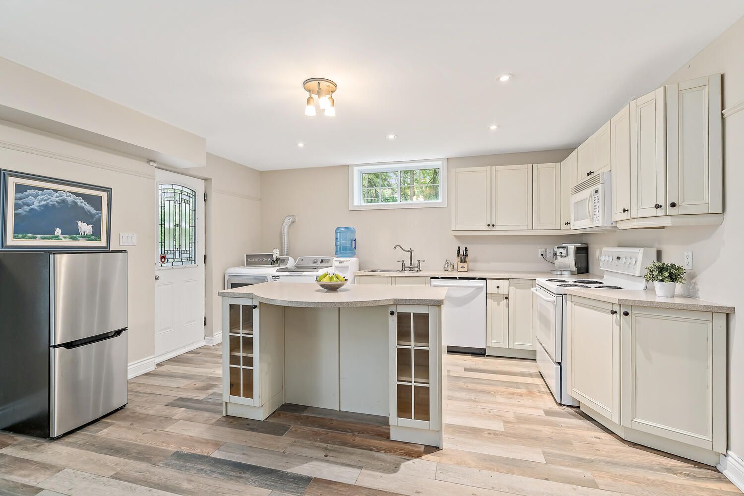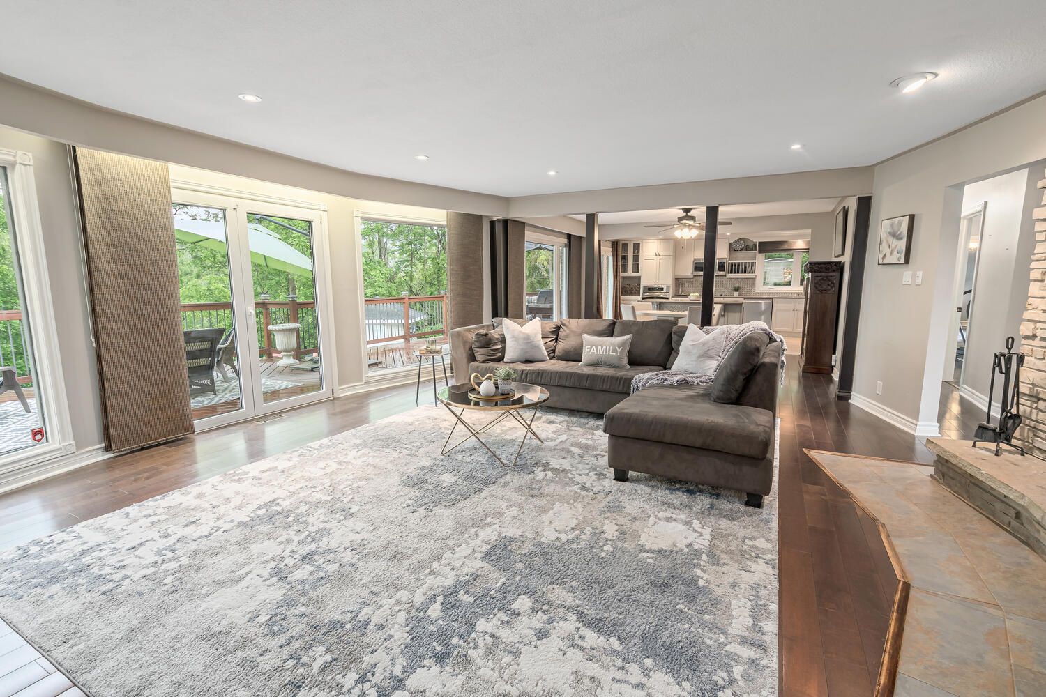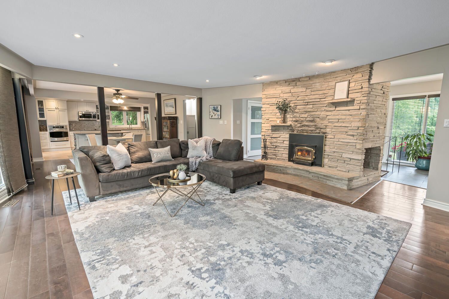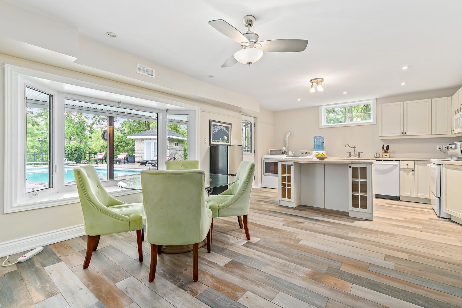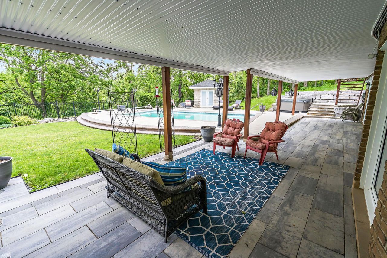 Fabulous executive ranch-style bungalow w'swimming pool on almost an acre in Glen Williams! This sprawling home is tucked up & away on coveted Wildwood Rd & features an open concept floorplan w'the beautiful kitchen having stainless steel appliances, centre island & granite counters & is open to the dining room & spacious living room that has a woodstove & offers stunning views from every window. The primary retreat boasts a lrg W/I closet & gorgeous renovated (2022) ensuite. There are 2 add'l lrg bdrms both w'lots of closet space & a pretty main bathroom. The main level has 3 W/Os to the expansive deck that adds to your living space. The bright lower level has an in-law suite w'separate entrance, kitchen, living area, bedroom & 3pc bathroom plus a huge rec room w'woodstove & W/O to a lovely covered patio where you can enjoy the yard in any weather. There is no need for a cottage w'the incredibly private resort-like backyard featuring an nground pool, tranquil pond, many quaint sittingareas to take in the breathtaking views & plenty of room to play. Located in the charming hamlet of Glen Williams: walking distance to cafes, restaurants, shops, trails & credit river with all of the conveniences of Georgetown minutes away!