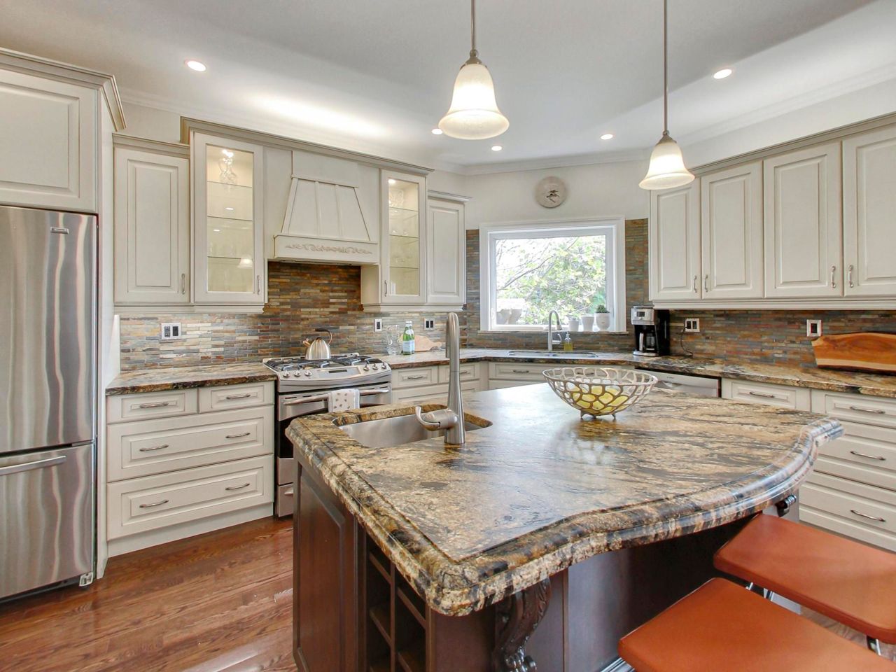 No need to wait, this gorgeous, huge (over 3,000 sf!) family home has it all! The ground floor features a living room, a powder room, laundry, direct access to the garage, a formal dining room, a chef's kitchen with stainless steel appliances, gas stove, pantry and breakfast area and the family room facing the back yard with a cathedral ceiling and fireplace. Head upstairs on the curved stair case and you'll find four bedrooms, including a primary bedroom with walk-in closet and ensuite bathroom with a separate glass shower. A semi-ensuite bathroom off one of the bedrooms is perfect for guests or kids. The finished basement has 1,500 of additional sf and features a full washroom as well as two additional bedrooms, a recreation room, plus storage and a cedar closet! Outside, you'll find the double car garage and four driveway parking spots out front and in the rear of the home is a garden retreat, with flagstones, gardens and landscaping and an additional side patio with pergola.Recent updates: main floor bathroom reno (2022), electric awning in backyard (2022), reverse osmosis filter in kitchen island (2021), furnace (2021), LED fixtures, pot lights, switches, outlets updated (2020), painted professionally (2020)