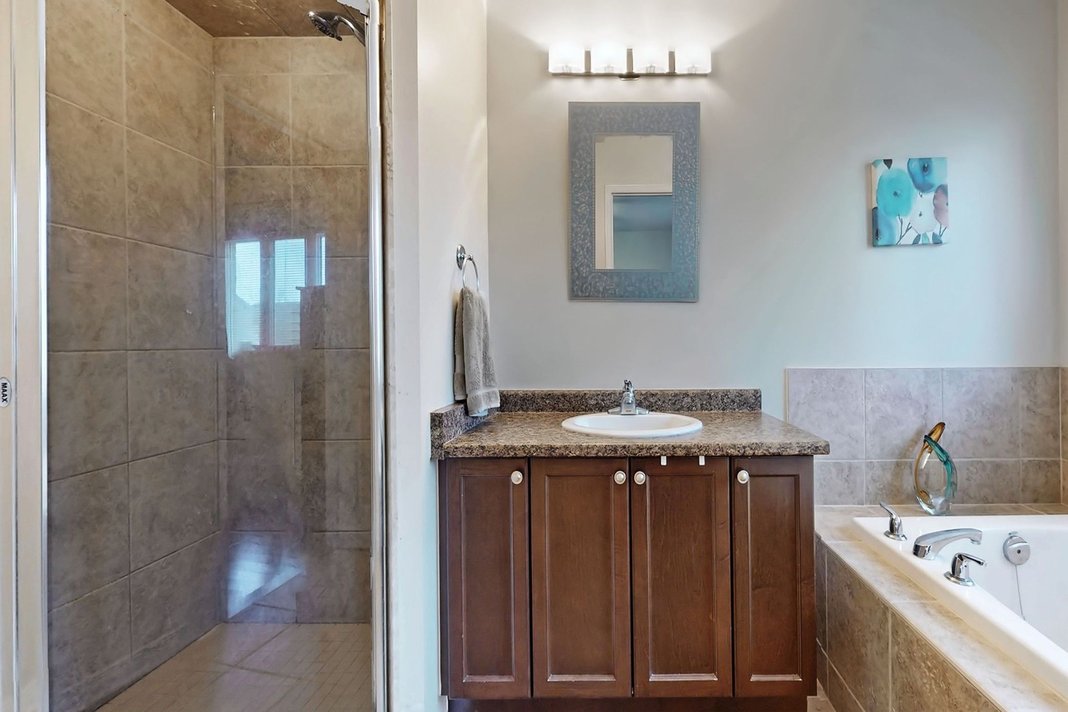 全方位升级配置:主层客厅餐厅及二楼全区域实木地板、实木楼梯、升级枫木橱柜厨房及浴室、厨房与后院燃气接口(适合烧烤)、高端不锈钢电器及防溅墙、车库直通室内入口、便利主层洗衣房、后院露台、前院砖砌车道。地下室精装修带侧门入口,社区街道宁静且适宜儿童成长。