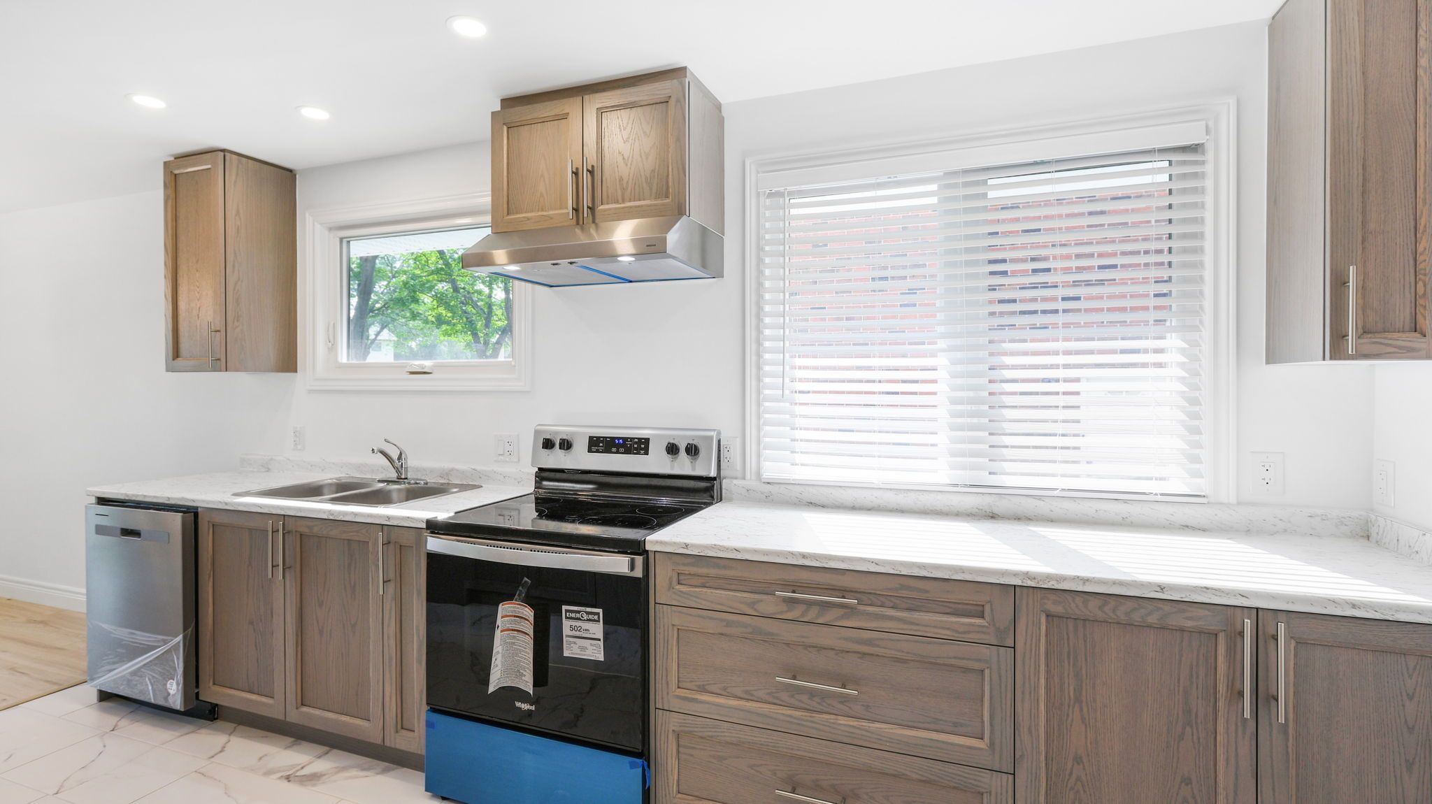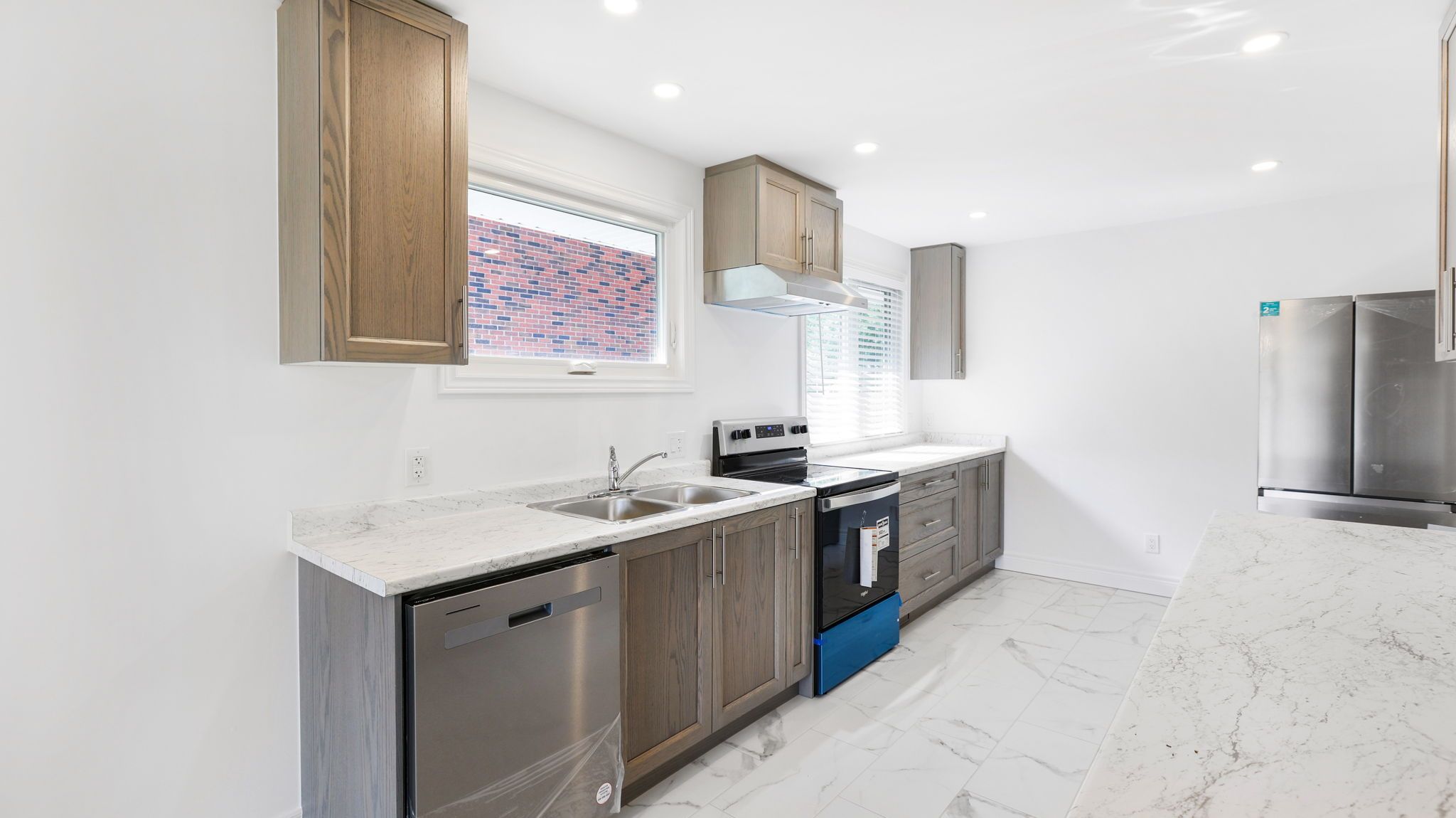 Stunningly renovated 3+2 bedroom, 2 bathroom Raised bungalow nestled in a quiet cul-de-sac on the desirable west mountain. Exquisite top-to-bottom renovation! Enjoy flawless laminate flooring throughout.No carpet! Indulge in the splendor of a brand new, spacious kitchen equipped with stainless steel appliances. Brand new Modern Bathrooms. Discover the convenience of an oversized garage and room for 6 cars in the driveway. Embrace the ample lot size, perfect for creating your own summer sanctuary. ONE BLOCK TO LARGE PARK.TENANT PAYS UTILITIES, LANDLORD PAYS HOT WATER TANK RENTAL. TENANT IS RESPONSIBLE FOR LAWN MAINTAINENCE AND SNOW REMOVAL. AAA TENANT ONLY.SS STOVE,SS FRIDGE,SS DISHWASHER, WASHER AND DRYER, WINDOW COVERINGS.