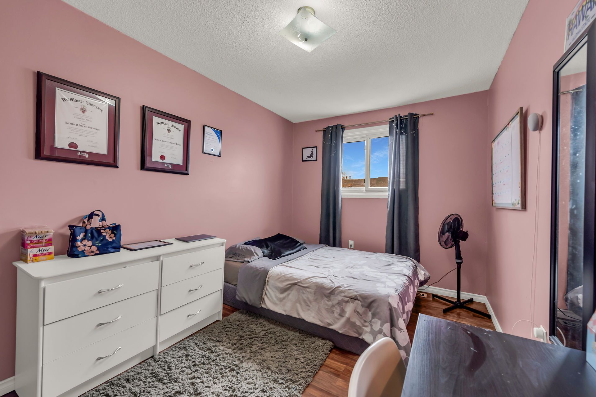 Nice 3 + 1 bedroom townhome in a quiet east Hamilton area. The main level has a rec room/4th bedroom, crawl space for additional storage and a lovely powder room. The 2nd level has a spacious living room with 11ft ceilings and sliding patio doors leading to the fenced in yard. Also featuring a separate dining room and eat-in kitchen. The 3rd level has a roomy primary bedroom, 2 more bedrooms and a nicely updated 4-piece bathroom. Other recent updates include furnace, central air, bedroom closet doors. Front driveway parking plus attached garage. Located in a family friendly neighbourhood close to schools Kings Forest, trails, parks and highway access.Updated Windows,Roof,Furnace,Central Air,Bathroom,Closet Doors