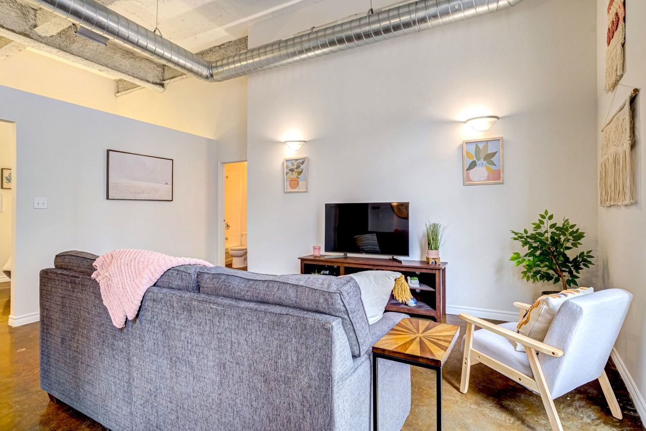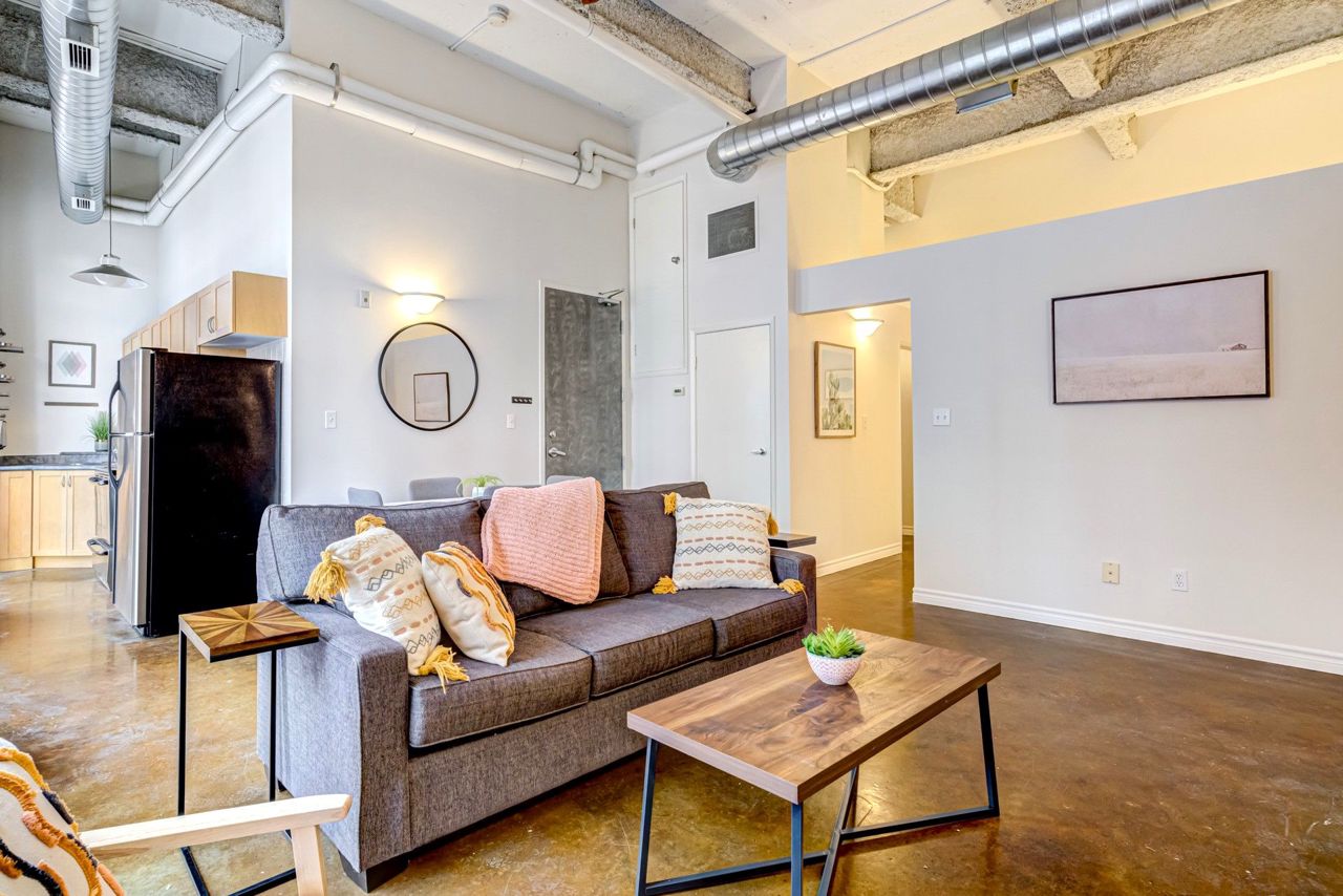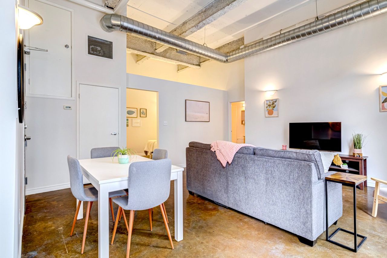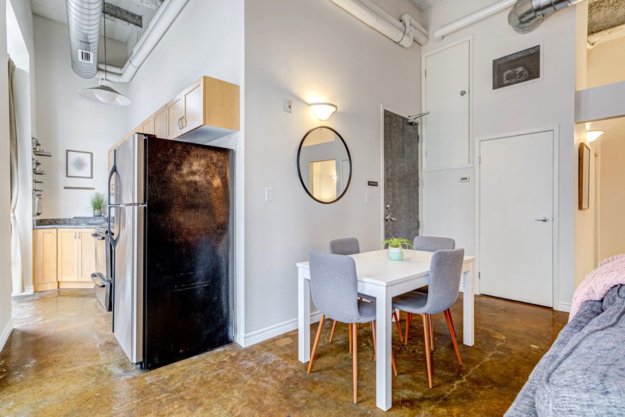 Fantastic 1 Bedroom, 1 Bathroom Condo @ Annex Lofts. Large "loft like" Condo w/ Polished Concrete Floors, 14' ceilings, Soaring 11' Windows, Exposed Beams/Vents, Updated Bath w/ Concrete Counters, SS Appliances, Walk-in Closet, In-Suite Laundry! Shows 10+ Close to James Street North, Farmers Market, and GOFridge, Stove, dishwasher , washing machine, dryer, elfs