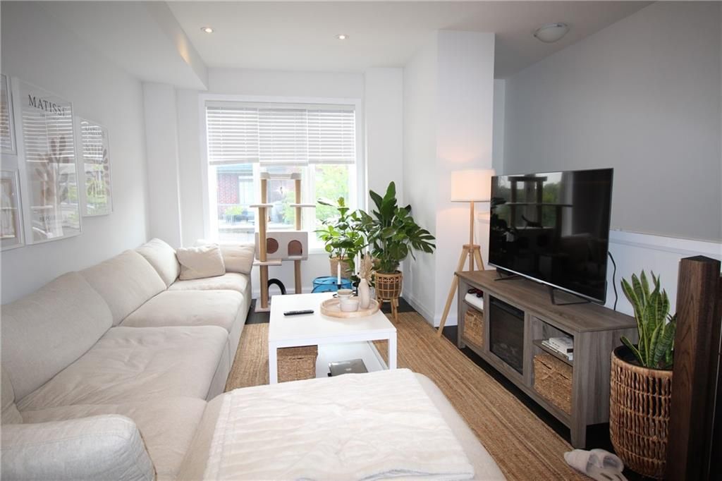 3-storey townhome losani built 1507 sqft home with deck off the kitchen 91 sq ft of outdoor living space. $30k plus in up grades: Oak Stairs, All upgraded countertops, etc. Steps to parks, schools, transit, shops and more. Laundry closet off the kitchen. 3 bedrooms. Primary bedrooms offer walk-in closet with Ensuite. Lower level offers den with walk-out to backyard and inside entry to a single car garage. Driveway offers 1 private parking spot. Visitor parking conveniently located close to the unit RSA. Existing tenants month by month. 24 hrs notice for showing.