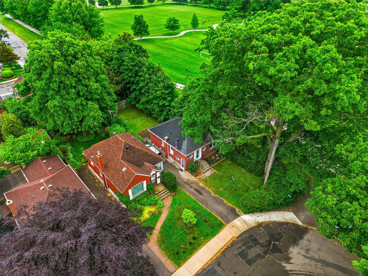 Incredible opportunity to own a charming bungalow in one of Hamiltons most walkable and sought-after neighbourhoods. This updated, double-brick home is just steps from Cootes Paradise Elementary, Westdale Secondary, and McMaster Universityideal for families who want the ease of walking their children from preschool through to university. Set in the heart of Westdale, the location offers unmatched convenience. You're within walking distance to the future Longwood LRT stop, grocery stores, restaurants, cafés, medical and dental offices, and major employers like McMaster Innovation Park and HHS Children's Hospital. The setting is truly special - this home backs directly onto Churchill Park, owned and maintained by the Royal Botanical Gardens. Enjoy peaceful park views from your living room and the privacy of having only one neighbour. Step out your back door into a network of beautiful trails, forests, and natural spaces, all just waiting to be explored. Inside, the home has been thoughtfully updated for comfort and ease. Original hardwood floors run throughout the main level, maintaining warmth and character. The renovated main bathroom (2011) features in-floor heating. The finished basement offers a separate entrance, additional bedroom and bathroom, storage, laundry, and durable luxury vinyl plank flooringperfect for guests, extended family, or rental potential. Practical upgrades include all plumbing and sewer line, backflow prevention, and an upgraded water service line. The basement is spray-foam insulated and the attic has blown-in insulation benefitting the homes energy efficiency throughout. The lower level is wired for 7.1 surround sound and HDMI to a media closet, and the home is fully wired for Ethernet. Bonus: architectural renderings for a second-storey addition or new build are included with the listing. A rare mix of nature, city convenience, and smart upgrades - this is Westdale living at its best. RSA.