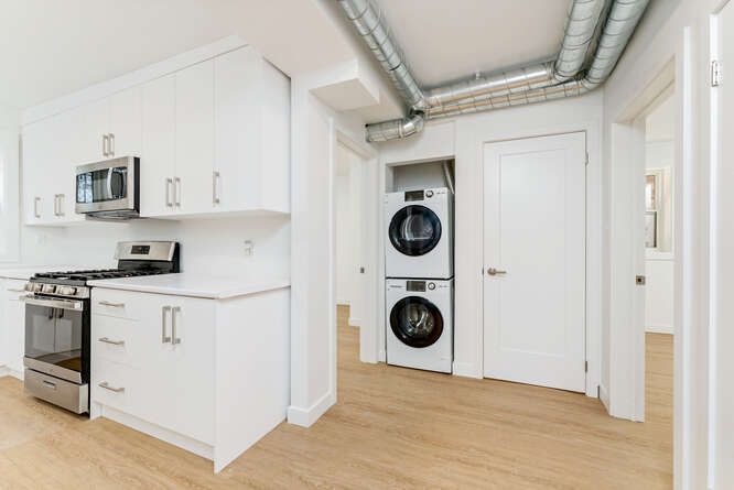 Oakwood apartment on the border of Stinson and Corktown, offering this stunning large open and bright 2 beds 1 bath unit for lease! Available on Sept 1st. New contemporary galley kitchen with S/S appliances and gas range. Not private parking. Ensuite laundry included. High ceilings W Pot lights, big windows, light floors & washroom. Walking distance to Hamilton Go, steps to transit, hospitals, Rec centre.S/S Fridge, Dishwasher, Microwave range hood, White stacked washer and dryer, Gas range, Furnace with A/C. Water included. Gas and Hydro are separately metered and not included!