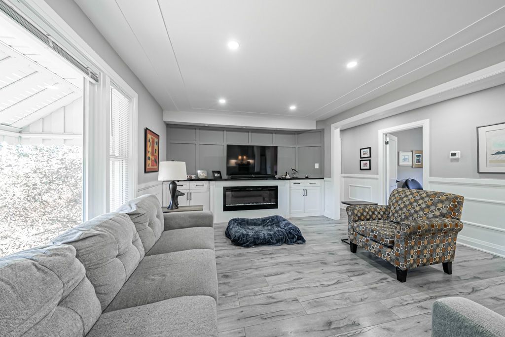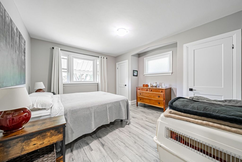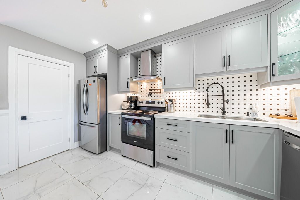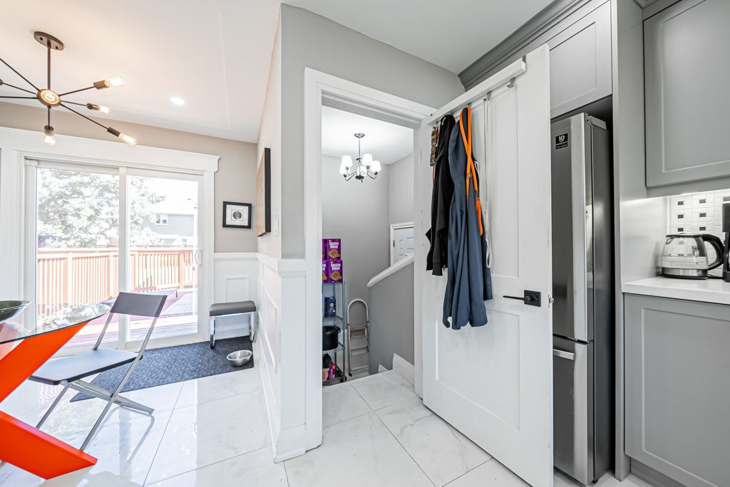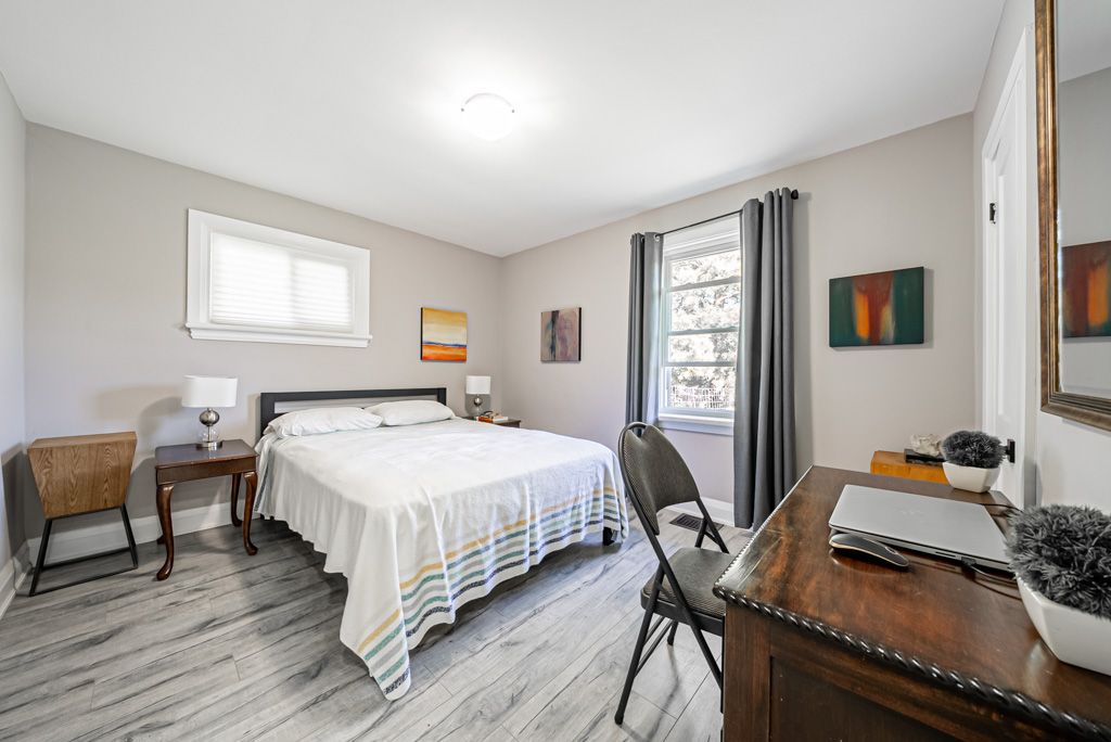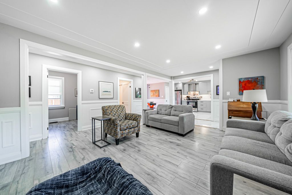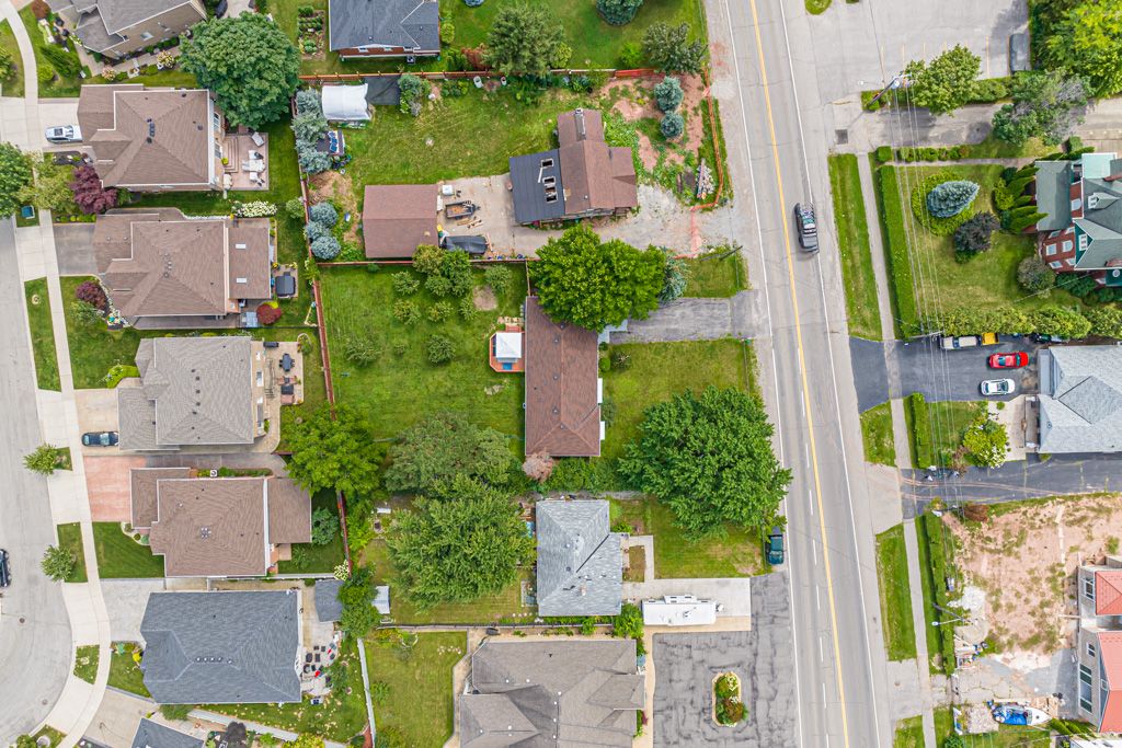 Stunning bungalow nestled on a large lot, boasting breathtaking views of the majestic Escarpment. This renovated home is adorned with designer touches throughout. From the moment you step inside, the attention to detail is evident. The interior has been completely revitalized, featuring new doors, windows, and flooring that harmoniously blend modern aesthetics with cozy comfort. The spacious living room is, highlighted by a charming fireplace that exudes warmth on cooler evenings. The built-in cabinetry, wainscoting, and captivating feature wall add a touch of sophistication to the space. Prepare to be enamored by the kitchen's allure. Dressed in elegant grey shaker cabinetry, the kitchen presents a striking contrast against the pristine white quartz countertops. A modern range hood and designer light fixture illuminate the culinary haven, while glass door upper cabinets provide both functionality and a contemporary vibe. The marble design ceramic flooring adds a touch of luxury.Adjacent to the kitchen, the dining room features a walkout leads to a spacious deck, granting access to the serene and private treed backyard.
