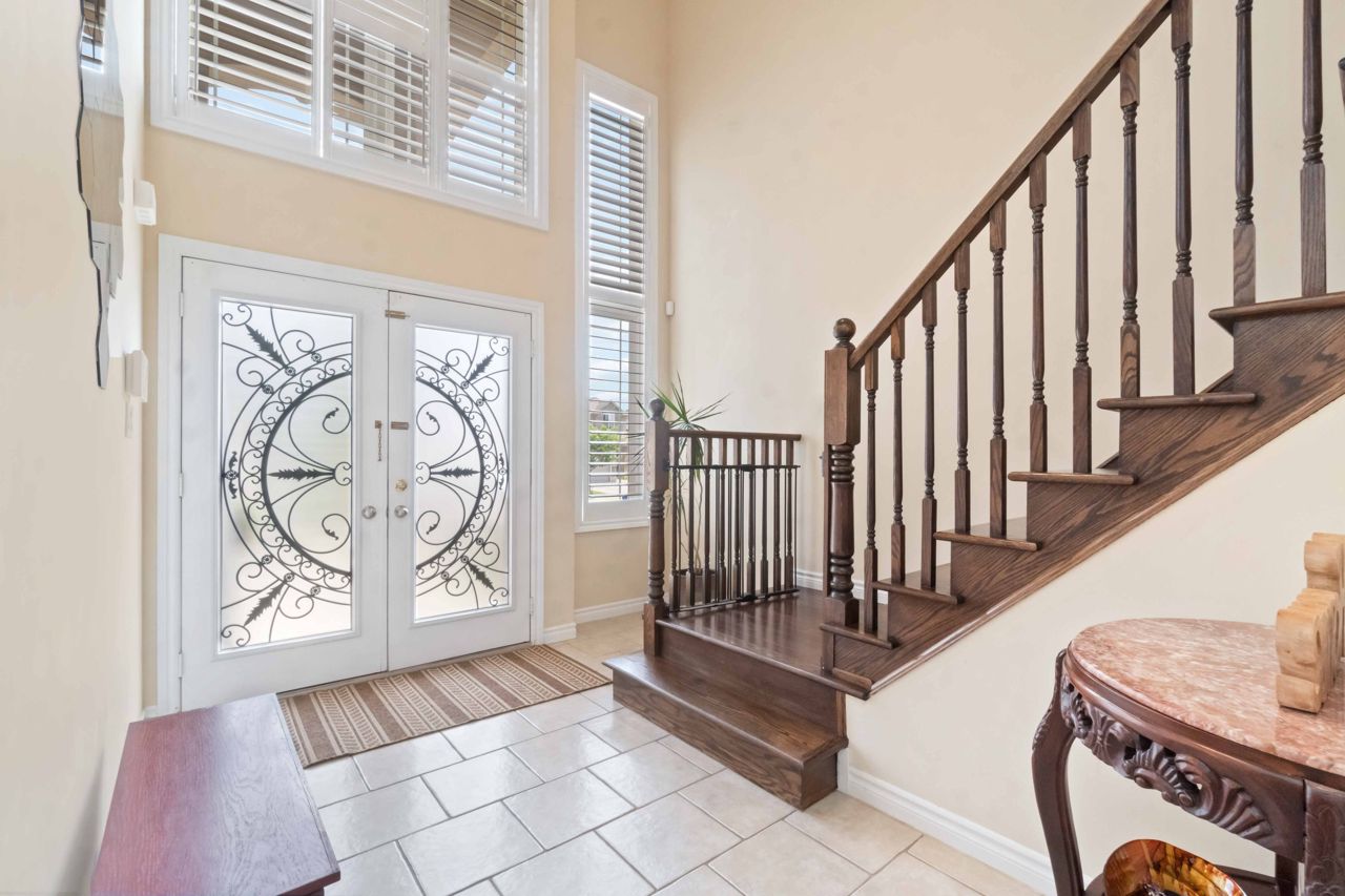 Welcome to this beautiful 2-storey detached home located in a quiet neighbourhood in West Hamilton Mountain. The house has a double front door and an elegant open-to-the-above foyer with high ceilings and lots of natural light. The open-concept kitchen has a centre island sink, granite countertops, and stainless steel appliances. There is a spacious living room, a formal dining area, and a laundry and mudroom on the main level. The second floor offers 4 great-sized bedrooms, including a primary bedroom with an ensuite bathroom and walk-in closet. Most of the windows in this home have California shutters. The lower level has 2 bedrooms, a 3-pc bathroom, and a recreation and entertainment room. The backyard has a professionally built deck and gazebo, perfect for family gatherings, and a beautiful garden with apple and peach trees. The house also has a 2 car garage with inside entry access.