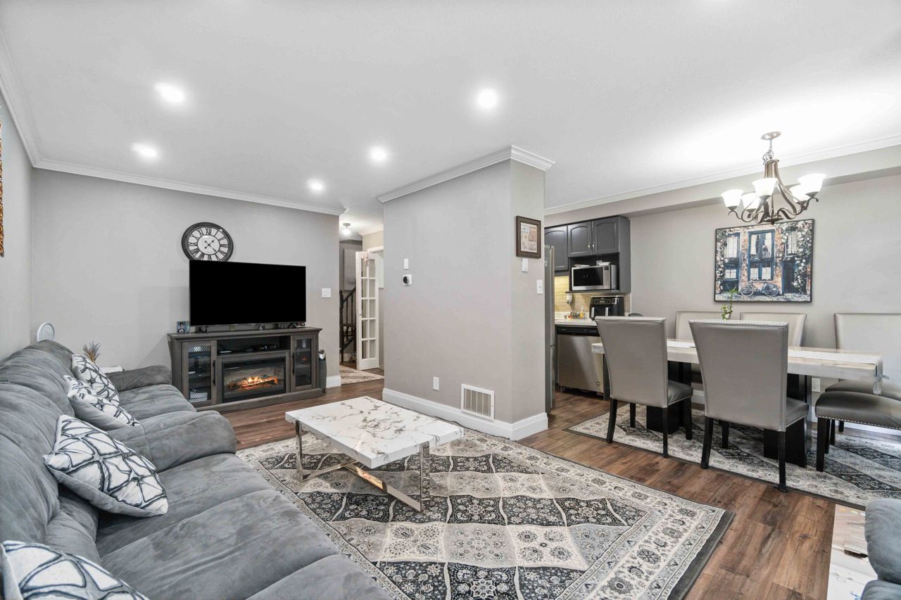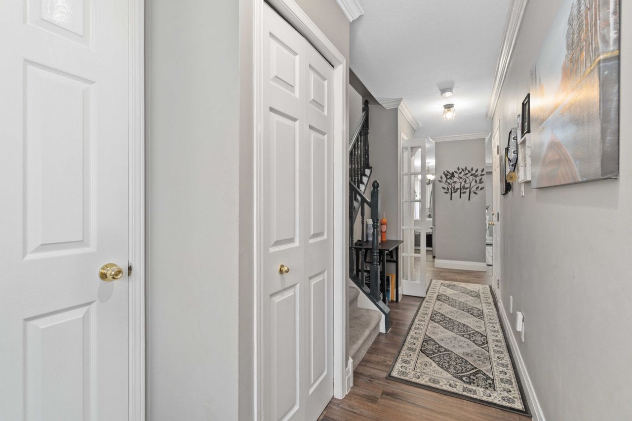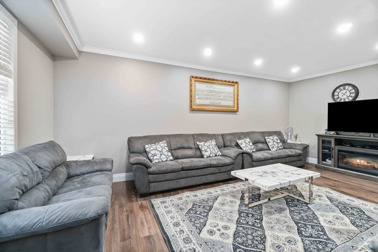Professionally Finished Basement with a spacious Rec room (can be converted to 4th bedroom) plus 3 Pc Washroom. Updates includes 2023 (New Washer, dryer, Fridge). 2022 (Flooring, Basement carpet, Kitchen countertop, Kitchen Sink & taps, Main floor baseboards, Crown moulding). Potlights on main floor, Google nest thermostat and Ring door bell, Painted in 2021. Plenty of Visitor Parking, Fully Fenced Maintenance Free Yard. Short Walk to: Grocery, Parks, Hwy, Schools, Trails & Bus Stops. A Must See Before It's Gone!Updates includes 2023 (New Washer, dryer, Fridge). 2022 (Flooring, Basement carpet, Kitchen countertop, Kitchen Sink & taps, Main floor baseboards, Crown moulding). Potlights on main floor.