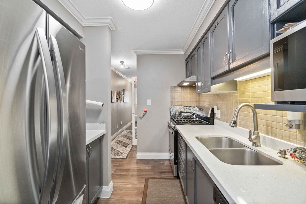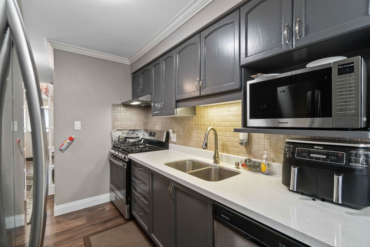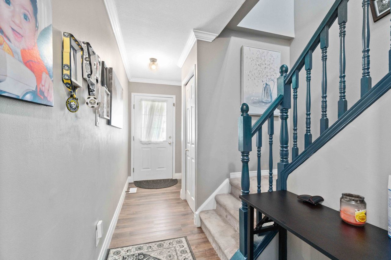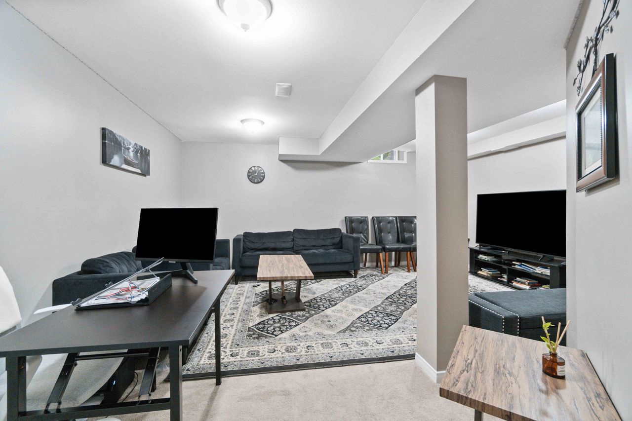 Professionally Finished Basement with a spacious Rec room (can be converted to 4th bedroom) plus 3 Pc Washroom. Updates includes 2023 (New Washer, dryer, Fridge). 2022 (Flooring, Basement carpet, Kitchen countertop, Kitchen Sink & taps, Main floor baseboards, Crown moulding). Potlights on main floor, Google nest thermostat and Ring door bell, Painted in 2021. Plenty of Visitor Parking, Fully Fenced Maintenance Free Yard. Short Walk to: Grocery, Parks, Hwy, Schools, Trails & Bus Stops. A Must See Before It's Gone!Updates includes 2023 (New Washer, dryer, Fridge). 2022 (Flooring, Basement carpet, Kitchen countertop, Kitchen Sink & taps, Main floor baseboards, Crown moulding). Potlights on main floor.