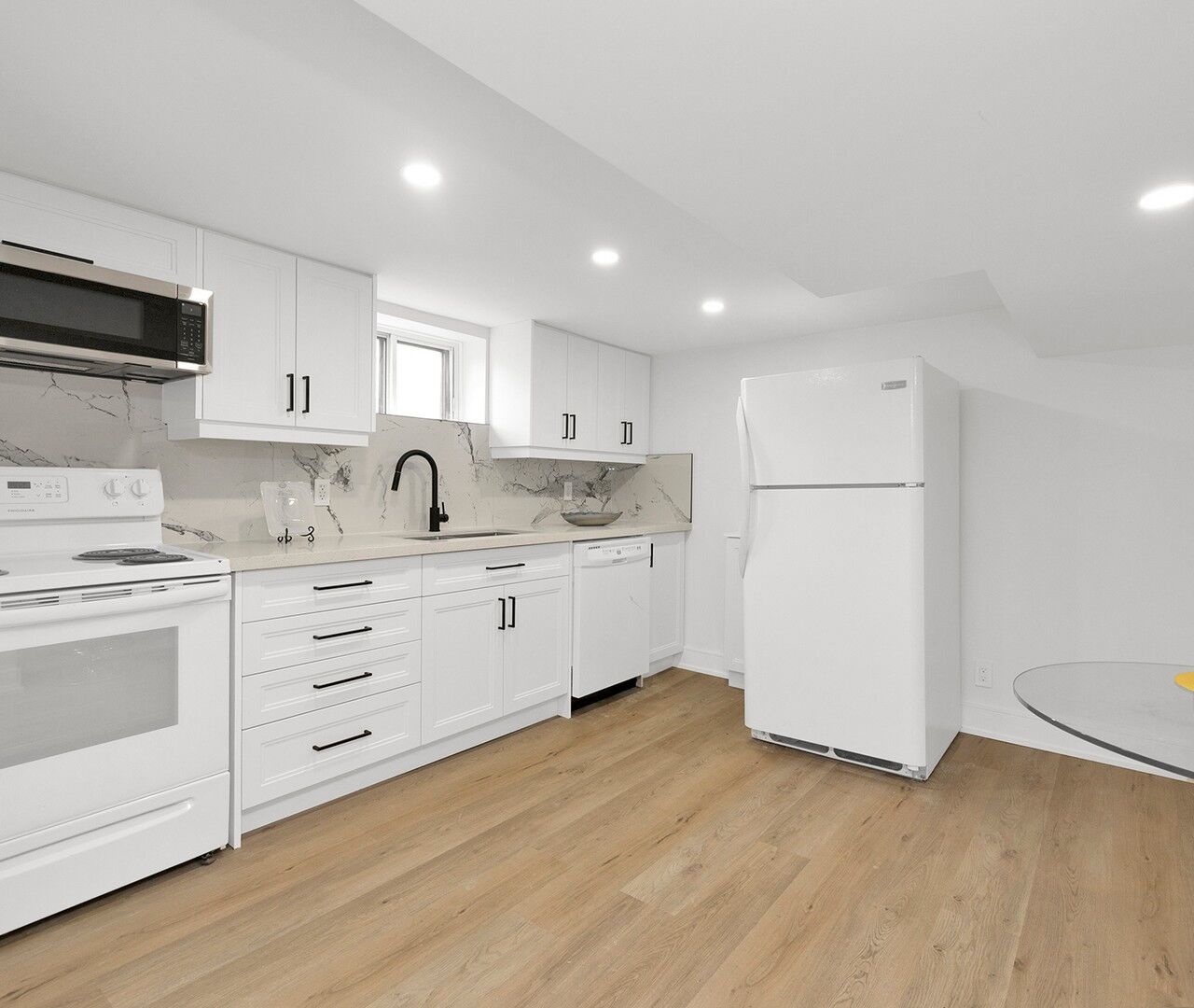 Immerse yourself in contemporary comfort with this fully renovated 4+2 bed & 2476 sqft of total living space. This corner lot house in Hamilton's prime location w/ ample on and off street parking. Boasting close proximity to schools, golf courses, & grocery stores, convenience is at your doorstep. Positioned near the highway, enjoy a easy commute to Toronto Downtown and Niagara Falls. Updates in the past 5 yrs include roof shingles, furnace & central air conditioner. The 1000 sqft finished basement with separate entrance & 2 beds, 1 kitchen, 1.5 bath, offers versatile living or in-law suite potential. Revel in the array of upgrades, including a newer electrical panel with house-wide rewiring, 2 separate laundry setups(M+B) for added convenience, & a newer sunroom roof(2023). The seamless blend of open-concept engineered hardwood, luxury vinyl planks in the basement, & elegant porcelain tiles exude modernity & style.Unleash your culinary creativity in the 2 custom kitchens adorned w/ Quartz countertops. This exceptional residence encapsulates contemporary living with all the trimmings—comfort, style, & accessibility.