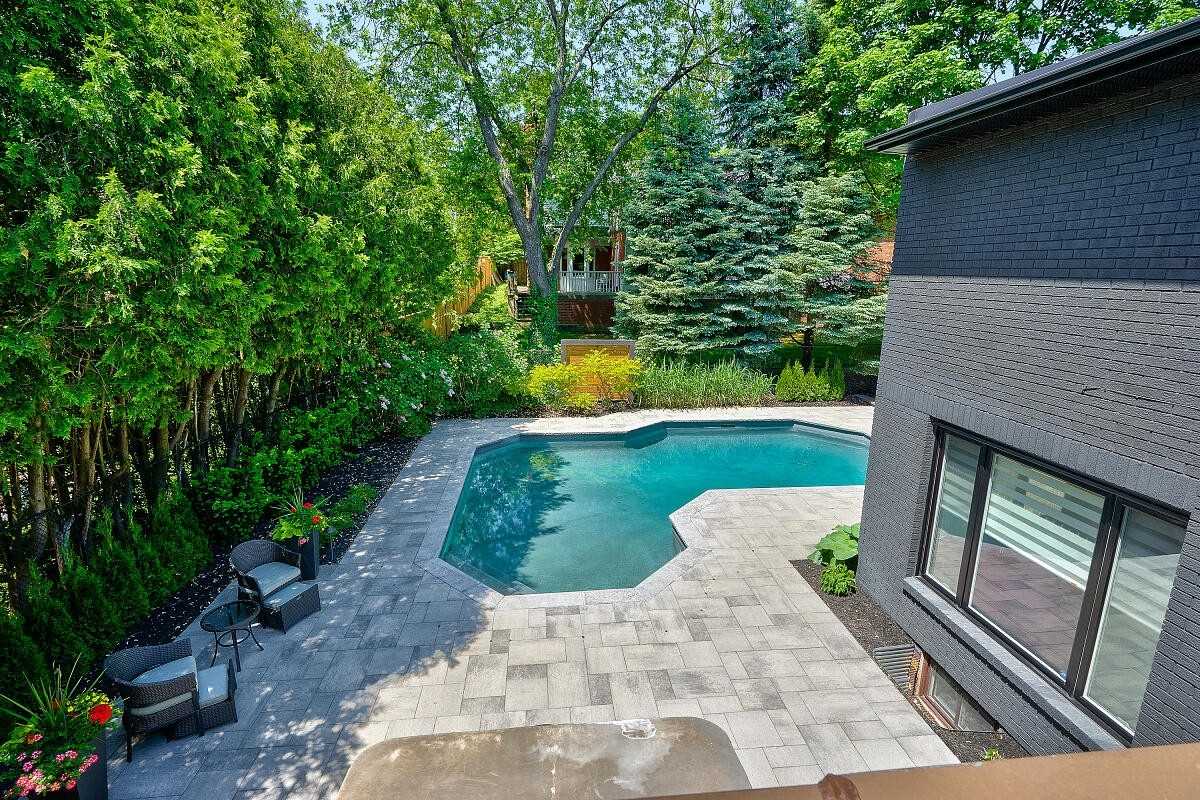 定制翻新。双层住宅,4+1间卧室,3.5间浴室,完工的地下室,带地热盐水的Qunite游泳池。冰箱、炉灶、内置洗碗机、内置微波炉、洗衣机、烘干机、百叶窗、电子灯具、泳池设备、热水浴缸(按现状)。