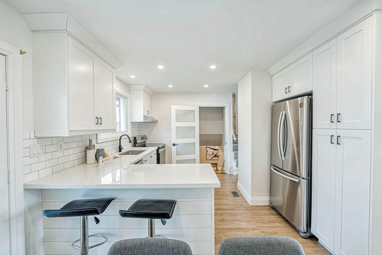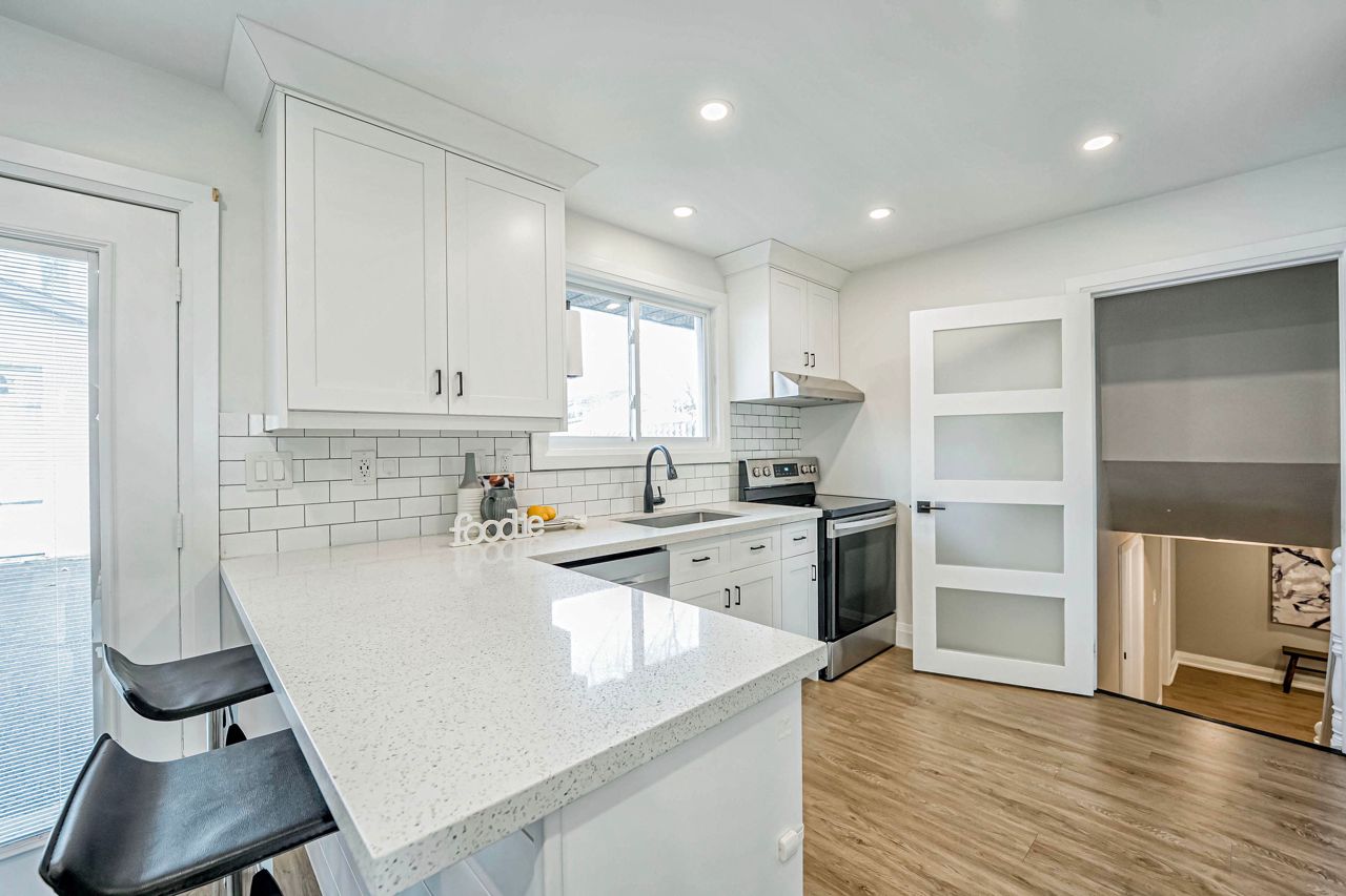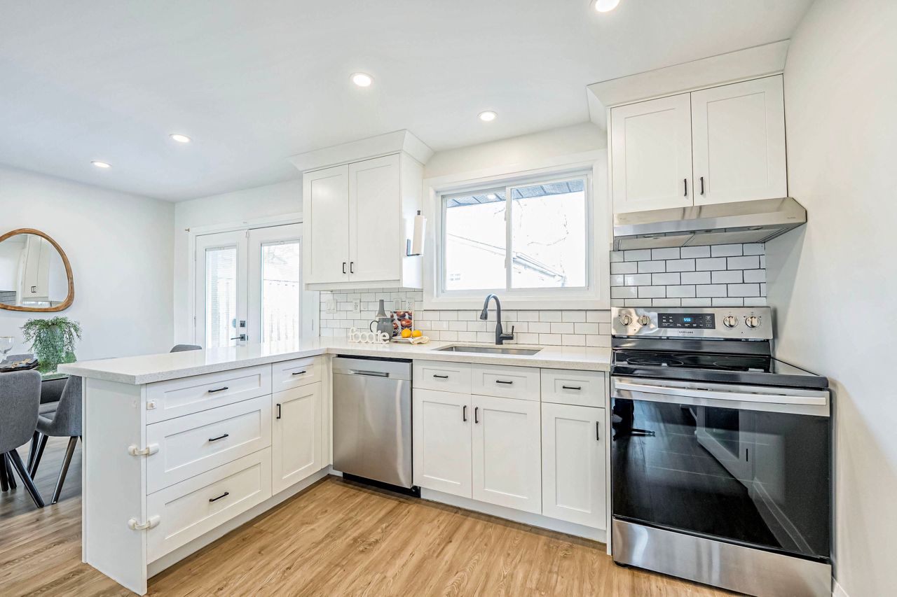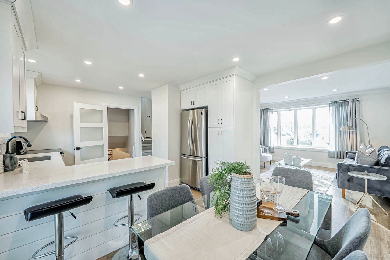 Step into this stunning, fully renovated 3-bedroom, 2-bathroom bungalow in the heart of the sought-after Lawfield neighborhood. Designed for modern living, this open-concept gem sits on a spacious lot, blending elegance and comfort seamlessly. Sun-drenched rooms with large, recently updated windows and sleek pot lighting create a fresh, inviting ambiance. Cook and entertain in style with a custom-built kitchen featuring quartz countertops, all-newer stainless-steel appliances, and luxurious vinyl flooring. Both bathrooms have been meticulously updated with chic, contemporary finishes that are sure to impress. The finished basement provides additional living space with large windows, a full bath, a reading nook, and a laundry room. Ideal for movie nights, a home office, or a guest suite. Enjoy the private backyard, plus a detached garage with a workbench for all your DIY projects. The driveway fits 2 cars comfortably. Furnace, heat pump, and tankless water heater all installed in late 2022. Move in with zero worries! Located in a serene, family-oriented neighborhood with convenient access to major highways. Within walking distance to Lawfield Elementary School, grocery stores, and public transportation facilities. Mohawk College and McMaster University are easily accessible by car. This is more than a home its a lifestyle. Don't miss out on this rare find. Nothing left to do but move in and make it yours! Heat pump for both a/c & heat also, have the aux heat option with the conventional gas furnace all are Carrier brand installed around Sep 2022 (along with the Navien tankless water heater)
