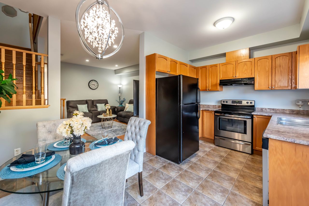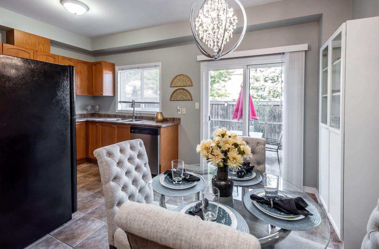 This Beautifully Well Maintained 3 Br, 2.5 Bath Two Storey Townhouse is Located in the heart Of Stoney Creek Just Minutes From The Qew, Mountain Access, Schools, Public Transit, Parks, Groceries, And Amenities. Features W/O To Balcony, Only a few Units In Complex Has This Feature! Main FlrHas 9 ft Ceiling, Kit With Ceramic Floor, Eat In Area, And W/O To Beautifully Landscaped, Fully Fenced Patio! The Second Floor Presents A Fabulous Size Master Bedroom, 3 Pc Ensuite, Closets, 2 Bedrooms And 4 Pc