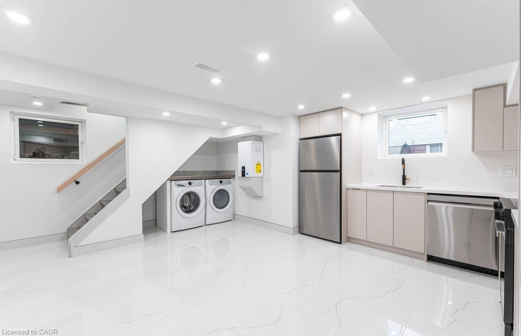 Welcome to this beautifully transformed bungalow that combines contemporary living with smart functionality! Every inch of this home has been thoughtfully renovated from top to bottom—brand new windows, doors, flooring, kitchens, and bathrooms—offering a truly move-in-ready experience. Downstairs, discover a completely self-contained in-law suite, ideal for multigenerational living or rental potential. The lower level includes 2 large bedrooms, a versatile living room that could easily serve as a third bedroom, a full kitchen, bathroom, and its own laundry room. Step outside to find a thoughtfully divided backyard, with each level enjoying its own private fenced outdoor space—a rare and valuable feature for privacy and flexibility. This home is truly brand new in every way—a modern masterpiece with potential income or extended family living, located in a family-friendly neighbourhood. Don’t miss the opportunity to own this exceptional, fully renovated gem!