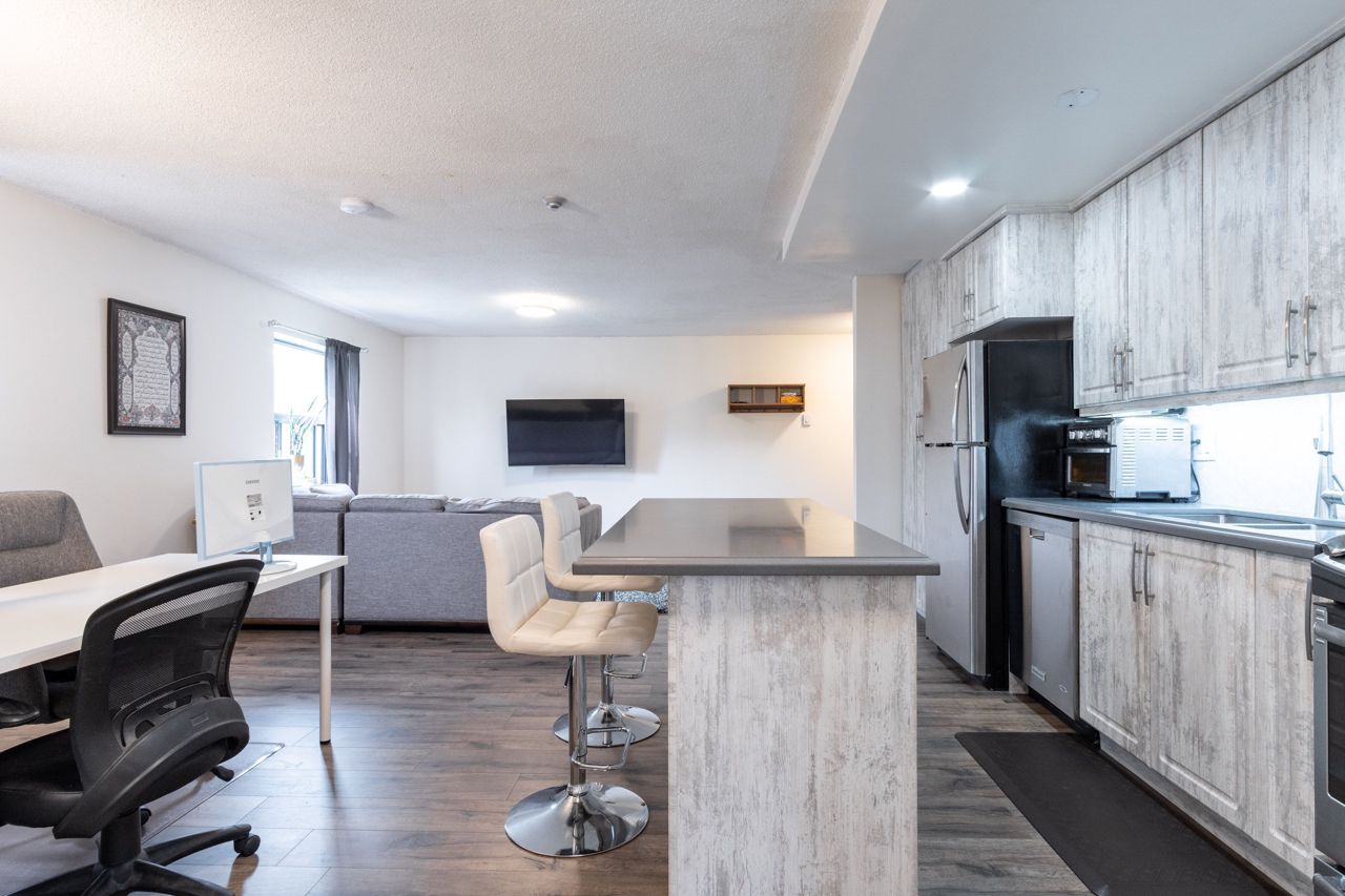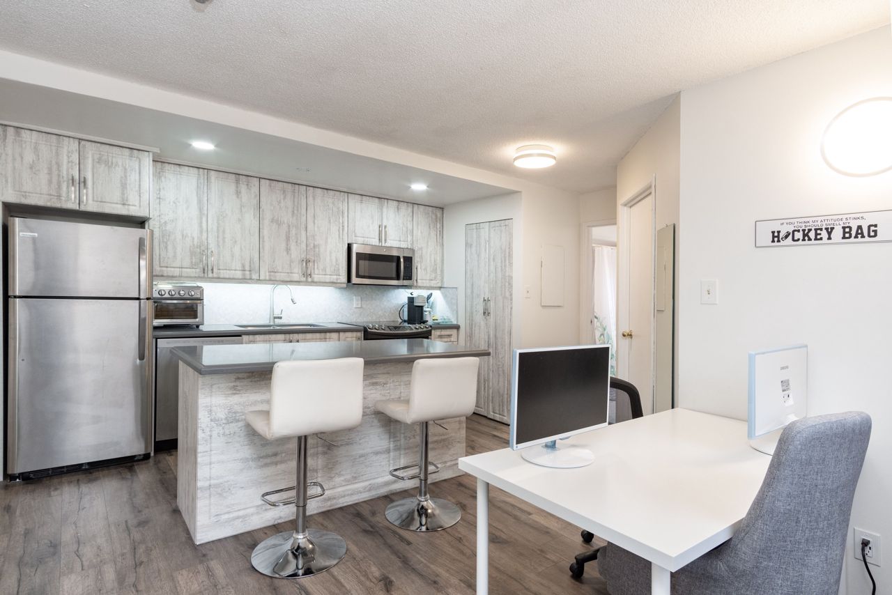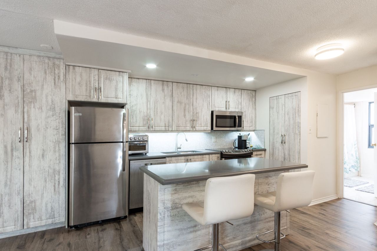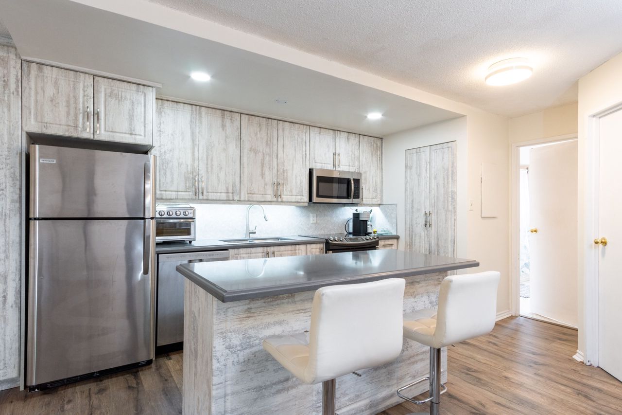 Location! Location! Location! Welcome To A Spacious 1 Bedroom Updated Corner Suite In A High Demand Corktown Neighbourhood Of Hamilton. This Open Concept Suite Features Laminate Floors Throughout, Combined Living & Dining, Newer Kitchen With A Centre Island With A Breakfast Bar - Quartz Counter Top - Stainless Steel Appliances (Fridge/Stove/Dishwasher/Built-In Microwave) - Backsplash - Plenty Of Cupboard Space. Primary Bedroom With A Closet Organizer. 4pc Bath With Tiled Floors & A Linen Closet. Short Walk To The Go Station, St. Joseph's Hospital, Transit, Hamilton Downtown, Parks, Entertainment, Night Life, Groceries, Schools And Much Much More. Only 10-12 Minute Car Ride To McMaster University. A Very Quite Building & A Must See. Shows 10+++.1 Underground Parking Spot & A Locker On The Main Floor. Window A/C Unit, Stacked Washer & Dryer, All Light Fixtures. Condo Fees Include: Water, Internet, Parking, Locker, Common Elements & Exterior Maintenance.