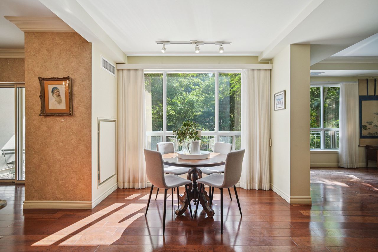 Discover the perfect blend of elegance, comfort, and outdoor living in this inviting 2-bedroom, 2-bath condo at 2000 Creekside Drive. Nestled in the sought-after Spencer Creek Village in the heart of charming Dundas, this spacious main-floor suite offers over 1,860 sq. ft. of beautifully designed living space. Step through the double doors into a welcoming foyer with a roomy double closet. A full-size laundry room with extra storage completes the entrance hallway. Hardwood floors and 9-foot ceilings create an airy, open feel throughout. A generous dining room is perfect for hosting holiday dinners, while the bright, full-size kitchen, complete with an eat-in breakfast area, looks out over peaceful Spencer Creek. The large living room offers plenty of space for relaxing or entertaining.The primary suite is your own private retreat, featuring a spa-inspired ensuite and large walk in closet. The second bedroom is ideal for guests, a home office, or a hobby room. Exceptional and unique to the suite, is a private oasis, the 350+ sq. ft. terrace, overlooking Spencer Creek; perfect for a morning coffee, alfresco dinners, or unwinding under the stars. With secure underground parking, a private storage room, and an unbeatable location, this home offers both style and convenience. You'll be just steps from historic Downtown Dundas with its cozy cafés, galleries, library, and artisan shops, and only minutes from scenic trails, waterfalls, area highways.