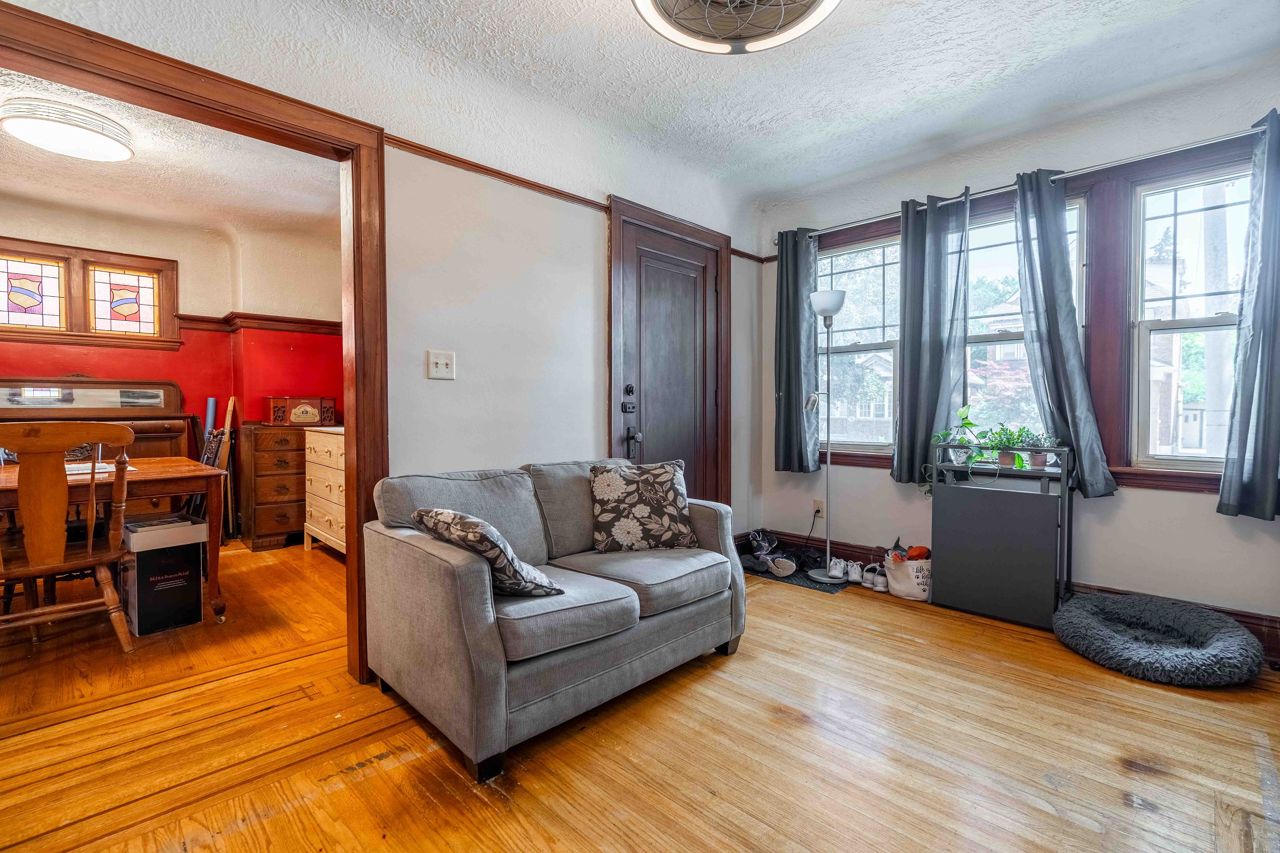 Welcome to 228 Province St S, a 3-bedroom, 1.5-story home full of original character and primed for your updates. Listed at $550,000, it delivers great value in Hamilton's desirable Gage Park area, blending historic charm with modern convenience. Step inside to parquet hardwood floors that add warmth and elegance. Original 5-inch wood baseboards, intricate wood trim, and a solid wood exterior door highlight the home's classic craftsmanship. The stained glass windows create a colourful, magical glow, ideal for relaxed mornings or evenings. Upstairs, two bedrooms offer quirky attic-like charm, perfect for families, offices, or guests. The clean kitchen has ample storage and convenient access to the rear deck. The main floor bedroom, currently used as an office, offers a flexible space to meet your needs. Well-maintained by the sellers: owned hot water tank (2021), no rentals, roof (2018) with lifetime warranty, some windows updated (2004) with lifetime warranty, electrical updated (2010) by Source Electric, and furnace/AC (2010) by Boonstra, exterior waterproofing (2006), Eavestroughs (2009). Focus on enjoyment, not fixes. In Hamilton's vibrant Delta West/ Gage Park neighbourhood near Gage Park, enjoy mature tree-lined streets, family vibes, and Escarpment access for outdoor fun. Groceries, schools, and amenities are nearby. It's a welcoming spot for tranquility and connection. This soulful home with history and potential awaits