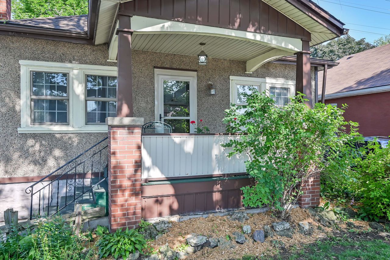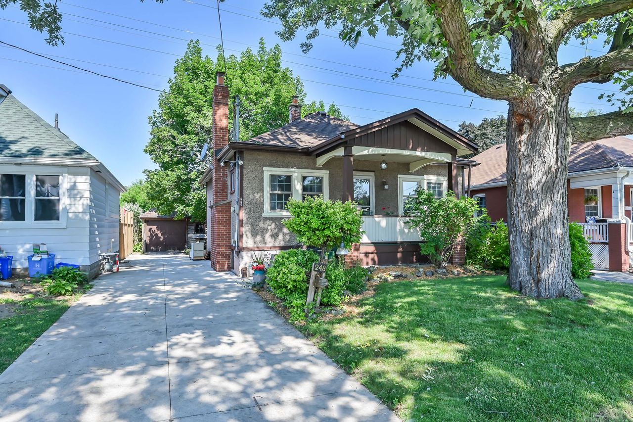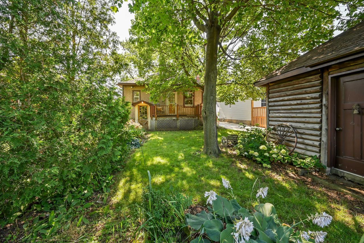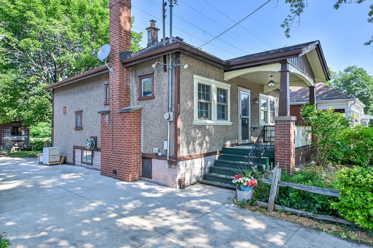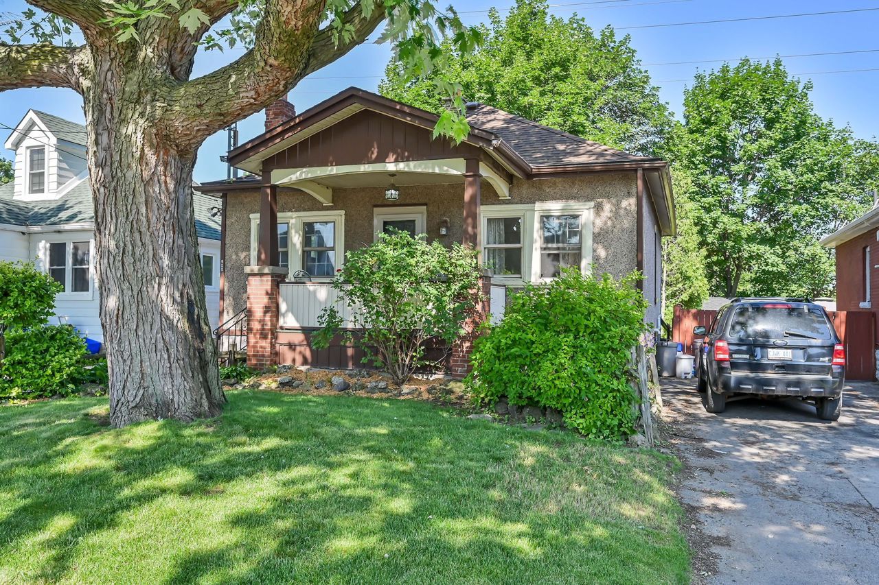 Charming 2 bedroom 1.5 bath bungalow located on mature lot, backing onto green space. Step in off the covered porch, into nicely proportioned living room, with wood fireplace, sunny windows, and stunning pine floors. Spacious eat in kitchen with easy access to rear porch overlooking mature lot. Main floor bath includes claw foot tub. Open basement equipped with workshop, laundry, and 2 pce bath plus walk up to rear yard. Plenty of storage. Step outside into peaceful backyard, with detached wood cladded garage and concrete driveway for 4. Mature gardens throughout. No Great for first time buyers, empty nesters looking to downsize.