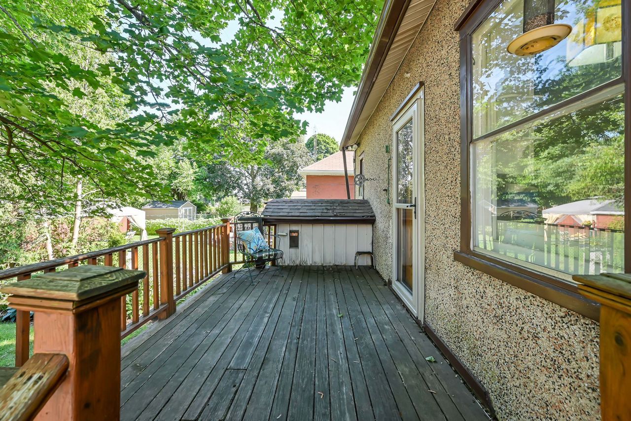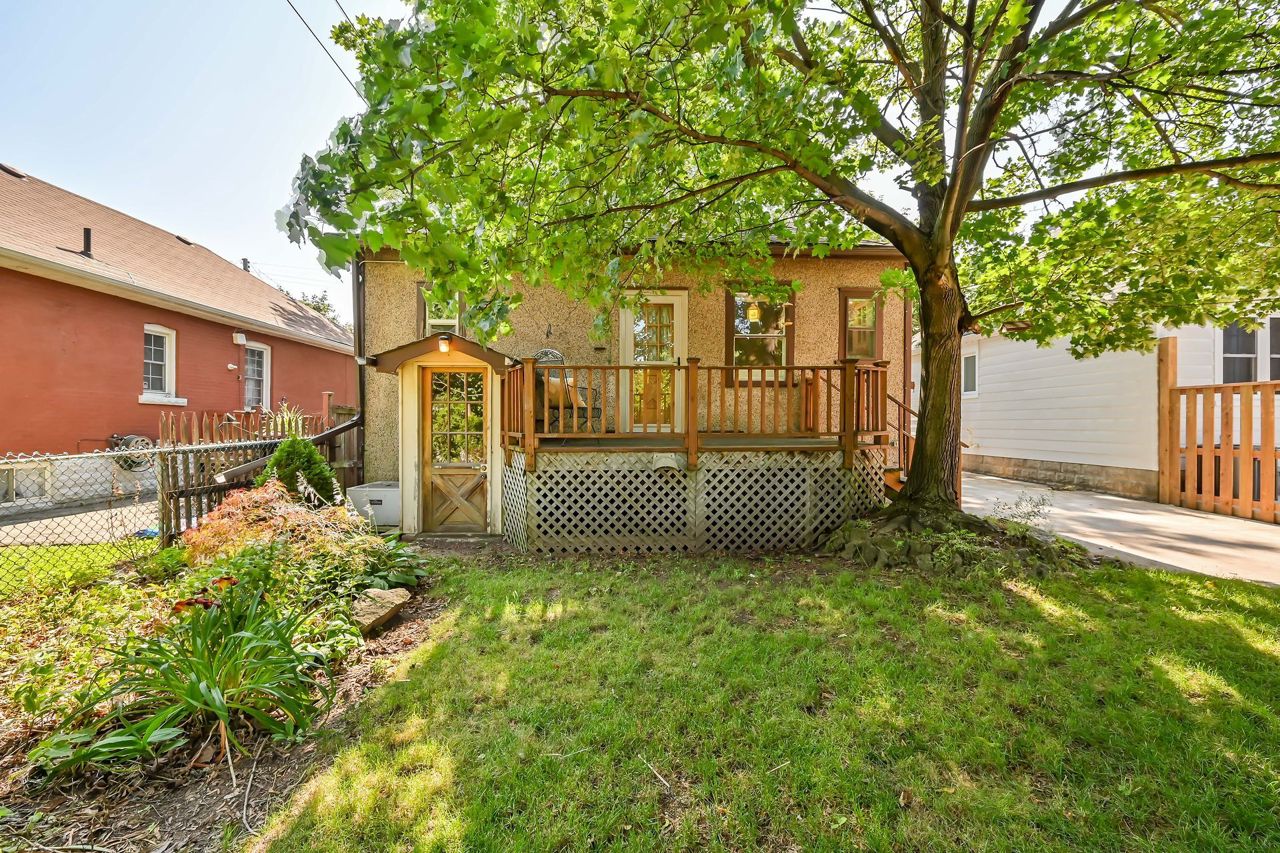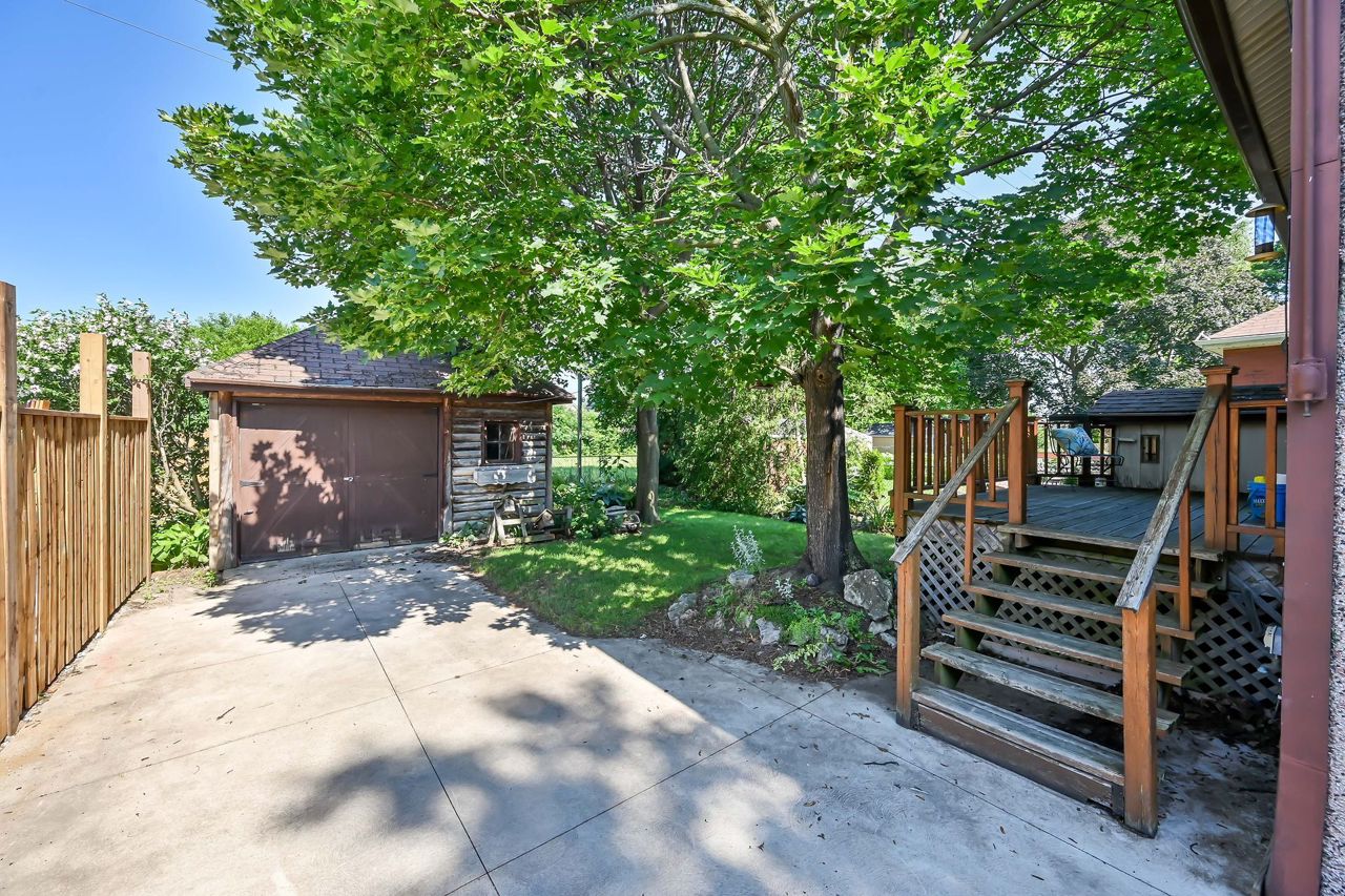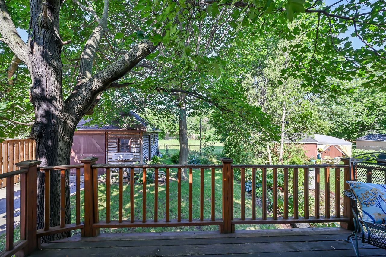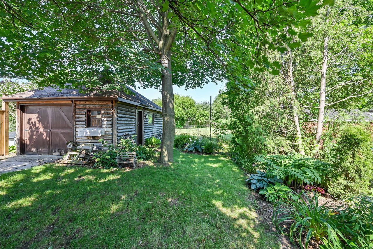 Charming 2 bedroom 1.5 bath bungalow located on mature lot, backing onto green space. Step in off the covered porch, into nicely proportioned living room, with wood fireplace, sunny windows, and stunning pine floors. Spacious eat in kitchen with easy access to rear porch overlooking mature lot. Main floor bath includes claw foot tub. Open basement equipped with workshop, laundry, and 2 pce bath plus walk up to rear yard. Plenty of storage. Step outside into peaceful backyard, with detached wood cladded garage and concrete driveway for 4. Mature gardens throughout. No Great for first time buyers, empty nesters looking to downsize.