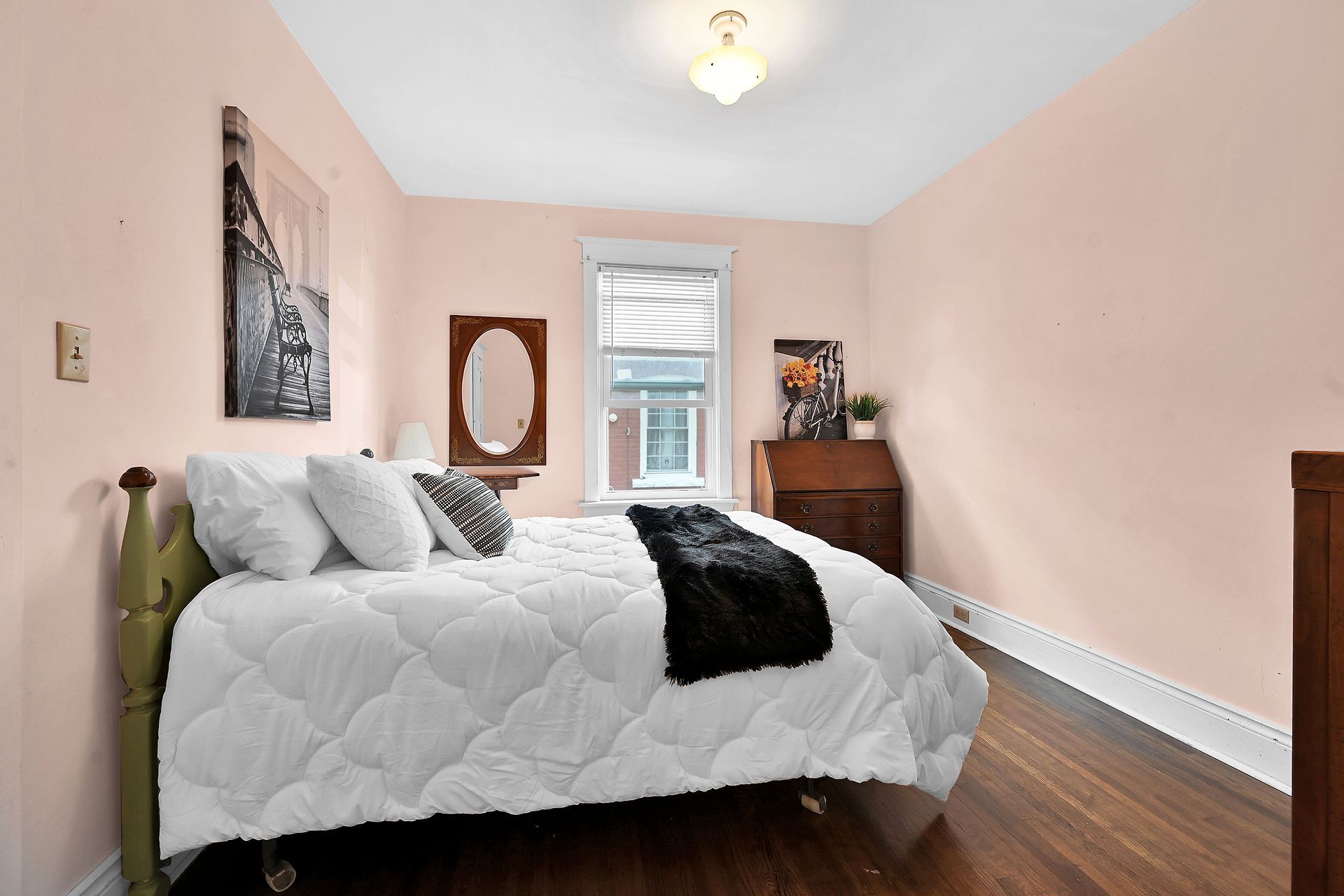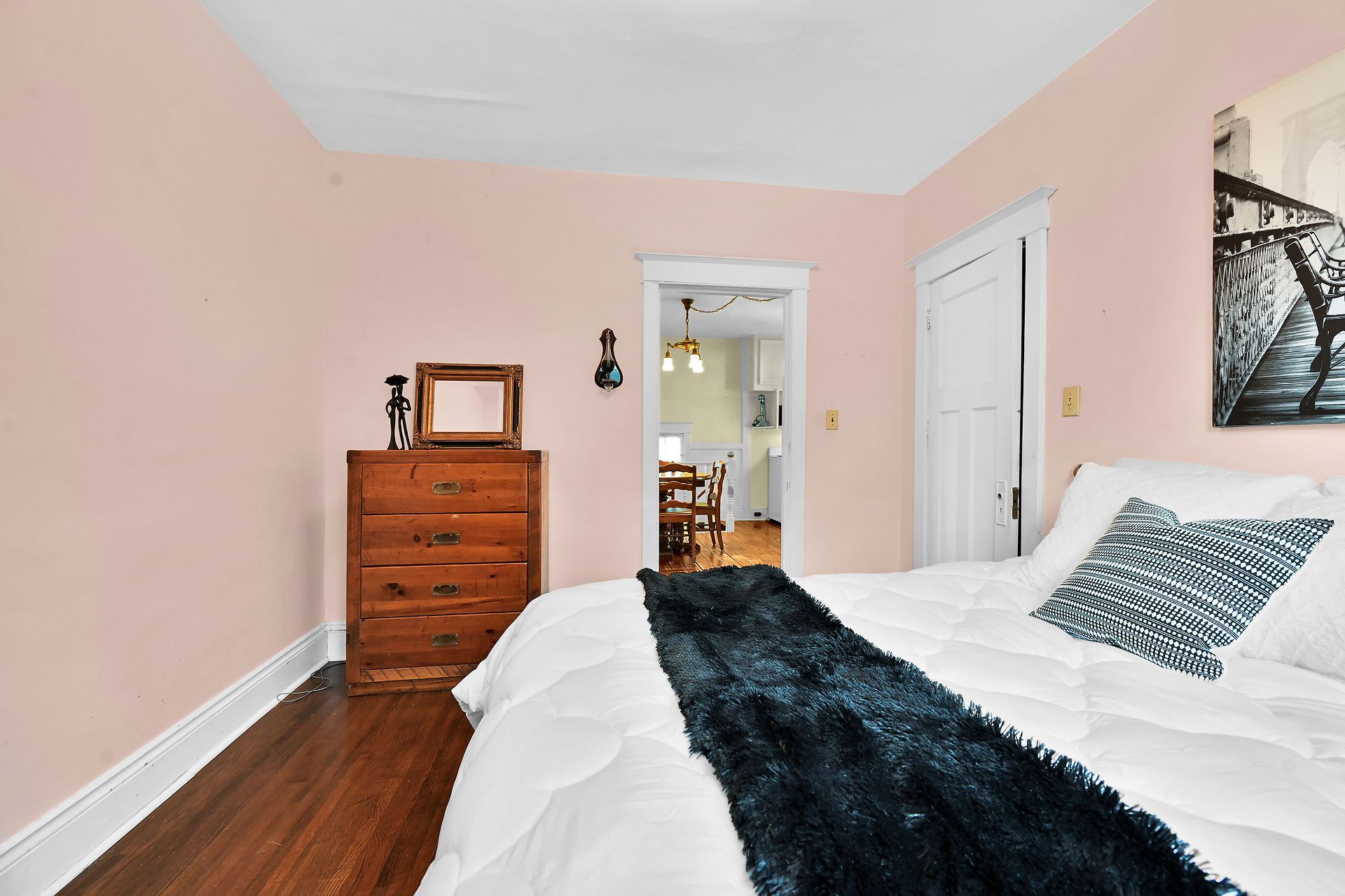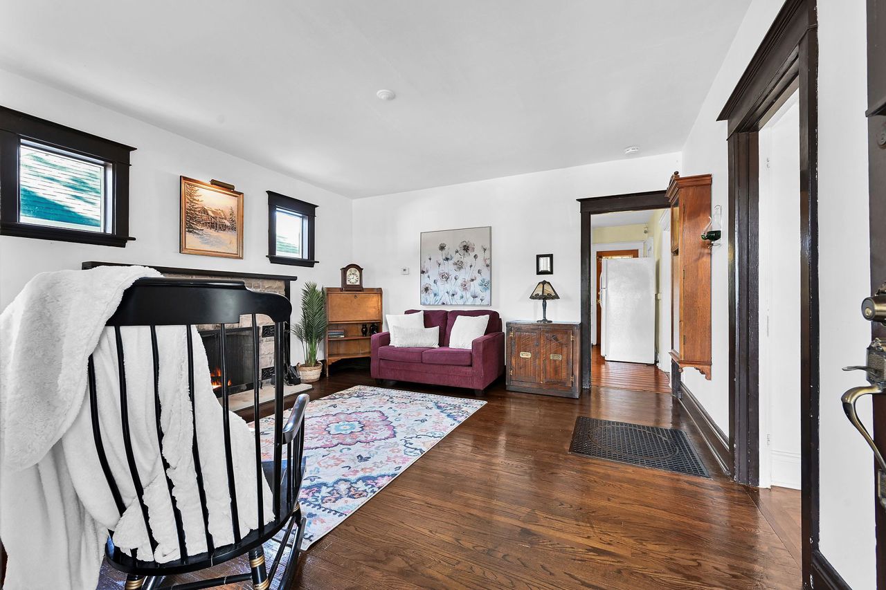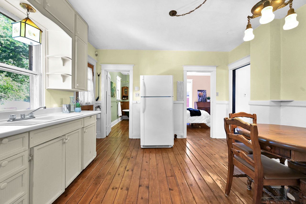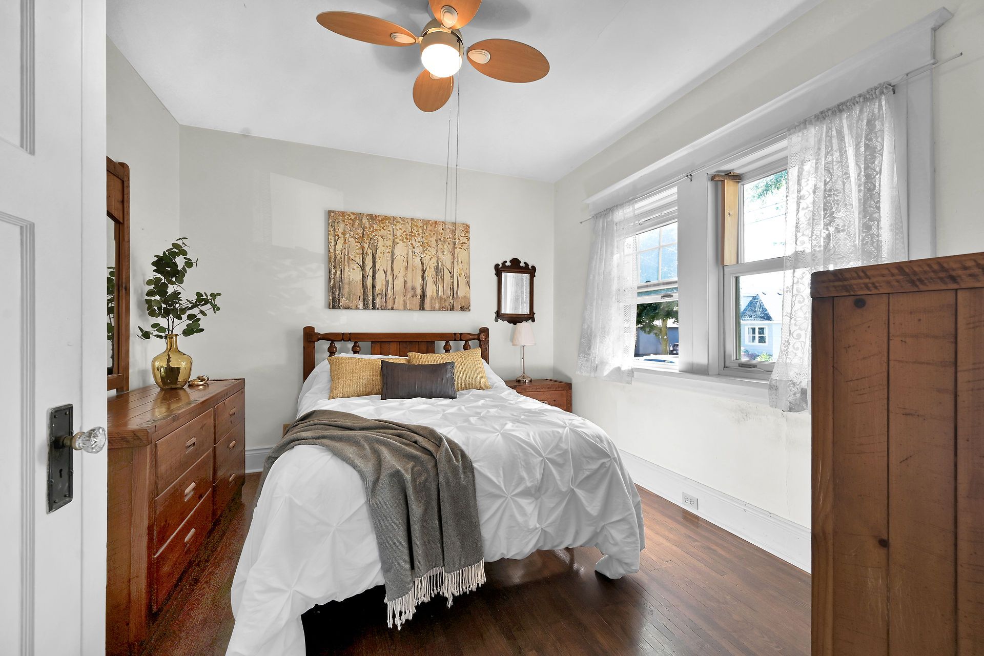 Charming 2 bedroom 1.5 bath bungalow located on mature lot, backing onto green space. Step in off the covered porch, into nicely proportioned living room, with wood fireplace, sunny windows, and stunning pine floors. Spacious eat in kitchen with easy access to rear porch overlooking mature lot. Main floor bath includes claw foot tub. Open basement equipped with workshop, laundry, and 2 pce bath plus walk up to rear yard. Plenty of storage. Step outside into peaceful backyard, with detached wood cladded garage and concrete driveway for 4. Mature gardens throughout. No Great for first time buyers, empty nesters looking to downsize.