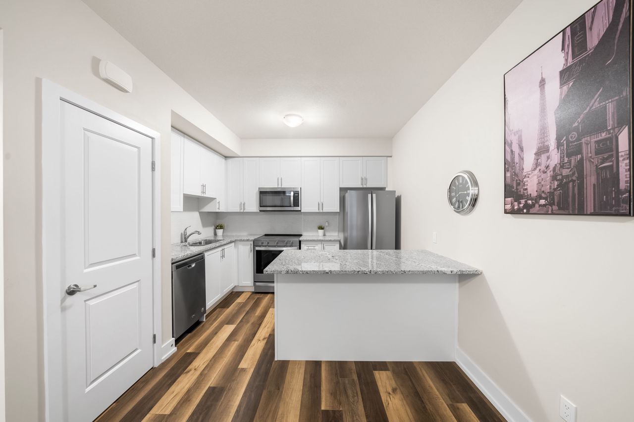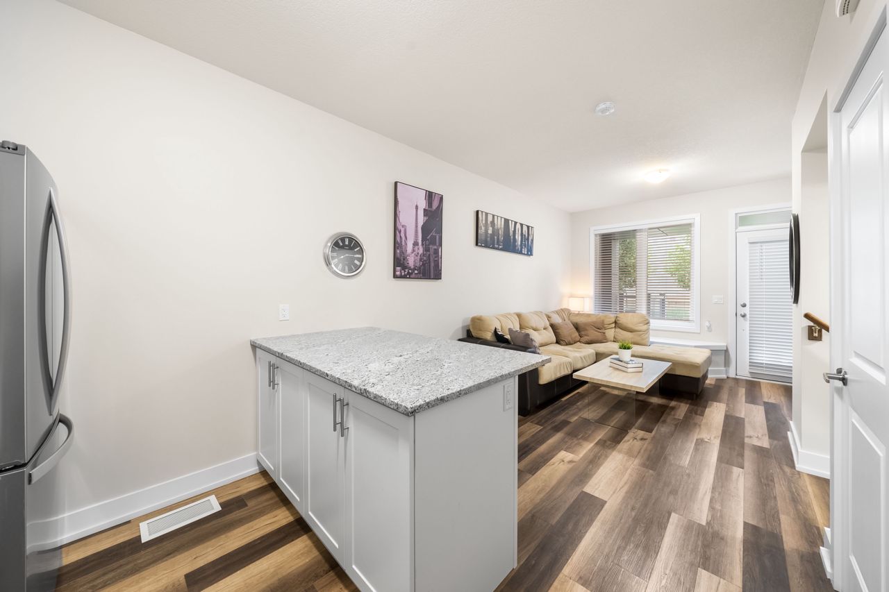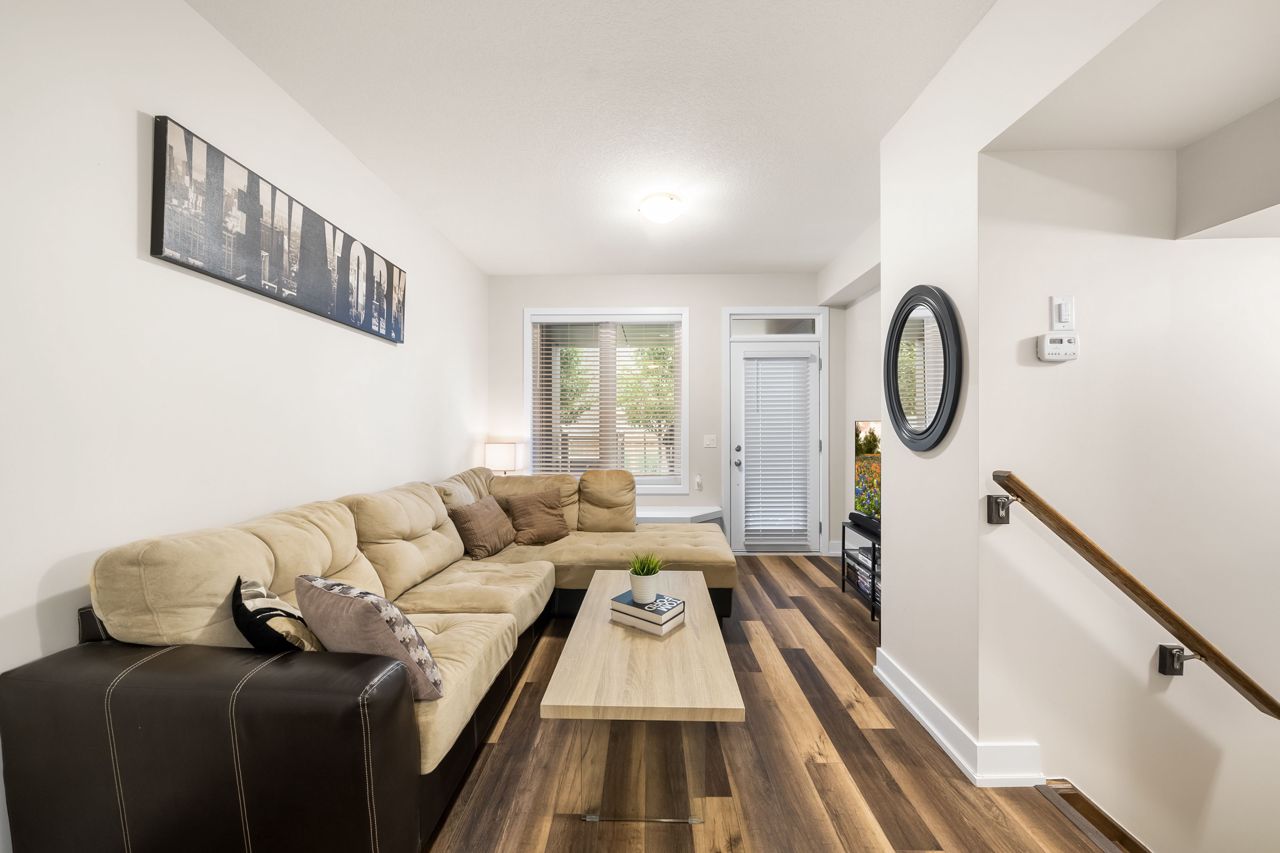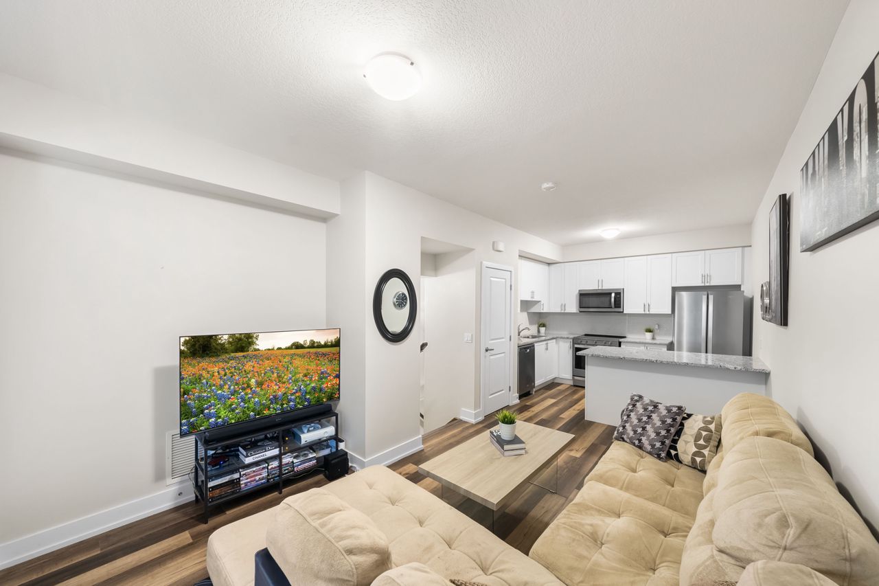 A Stunning 1 bedroom stacked townhome nestled in the highly sought-after Waterdown community. Step inside and be greeted by an inviting open-concept layout that maximizes space and natural light. The spacious living area provides the perfect backdrop for relaxation and entertaining, boasting large windows that bathe the room in sunlight. The Kitchen is a culinary enthusiast's delight, featuring sleek stainless steel appliances, granite counter tops, and ample cabinetry for all your storage needs. For commuters, this location is a dream, with close proximity to major highways and public transportation, allowing for seamless travel to neighbouring cities and beyond. This townhome offers easy access to a plethora of amenities. Take a stroll to local parks, charming boutiques and delicious eateries. or enjoy the convenience of nearby shopping centers. Embrace a life of comfort, style, and convenience in this townhome.upgraded finishes through-out, granite countertops, laminate flooring, stainless steel appliances, in suite laundry with private lower level master bedroom; 2 parking spots included.