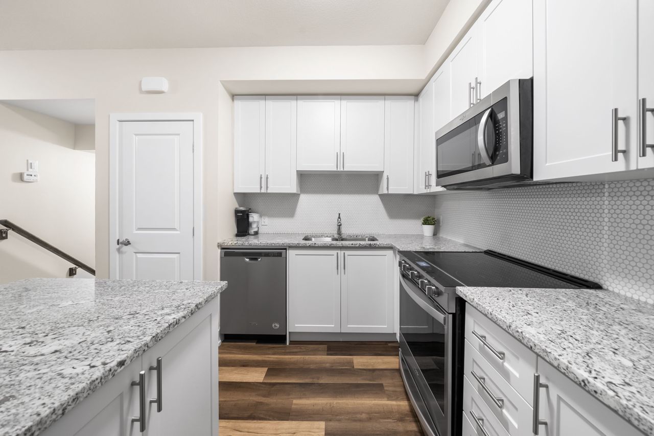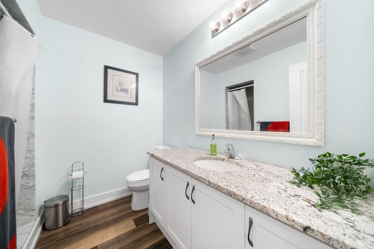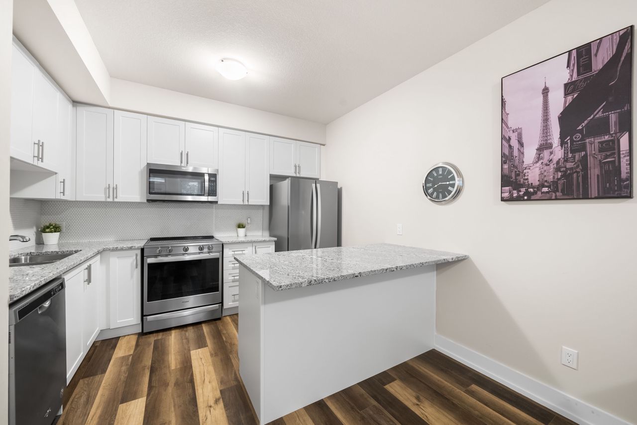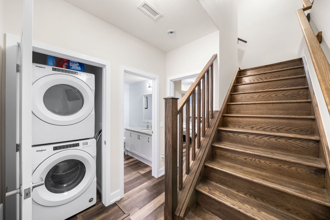 A Stunning 1 bedroom stacked townhome nestled in the highly sought-after Waterdown community. Step inside and be greeted by an inviting open-concept layout that maximizes space and natural light. The spacious living area provides the perfect backdrop for relaxation and entertaining, boasting large windows that bathe the room in sunlight. The Kitchen is a culinary enthusiast's delight, featuring sleek stainless steel appliances, granite counter tops, and ample cabinetry for all your storage needs. For commuters, this location is a dream, with close proximity to major highways and public transportation, allowing for seamless travel to neighbouring cities and beyond. This townhome offers easy access to a plethora of amenities. Take a stroll to local parks, charming boutiques and delicious eateries. or enjoy the convenience of nearby shopping centers. Embrace a life of comfort, style, and convenience in this townhome.upgraded finishes through-out, granite countertops, laminate flooring, stainless steel appliances, in suite laundry with private lower level master bedroom; 2 parking spots included.