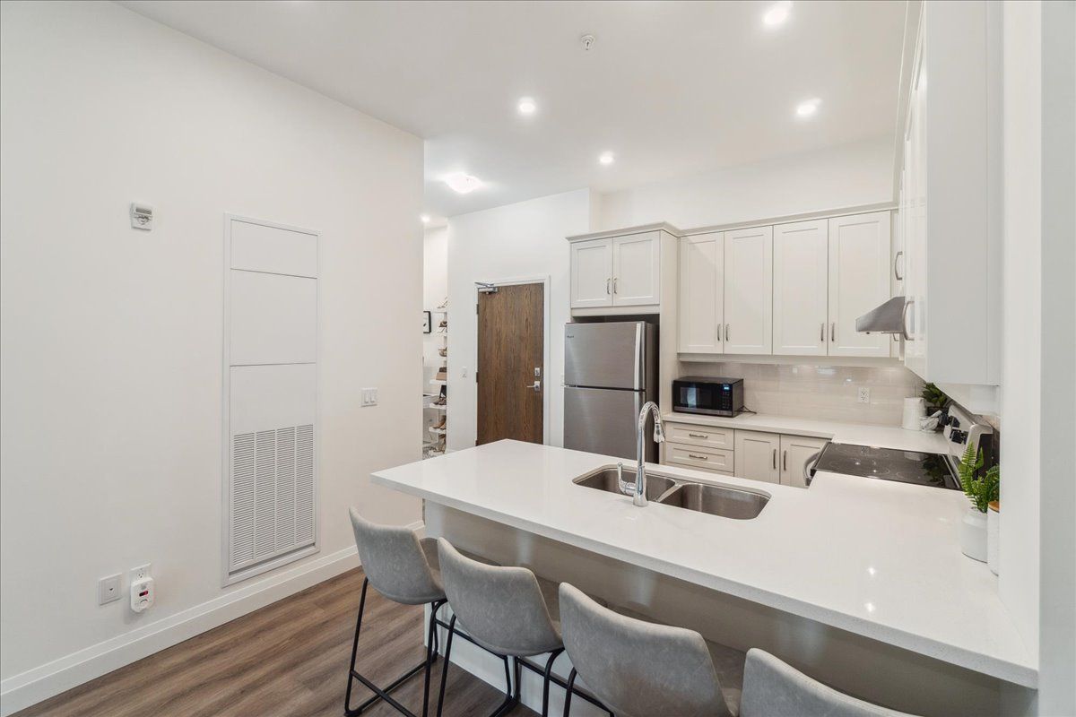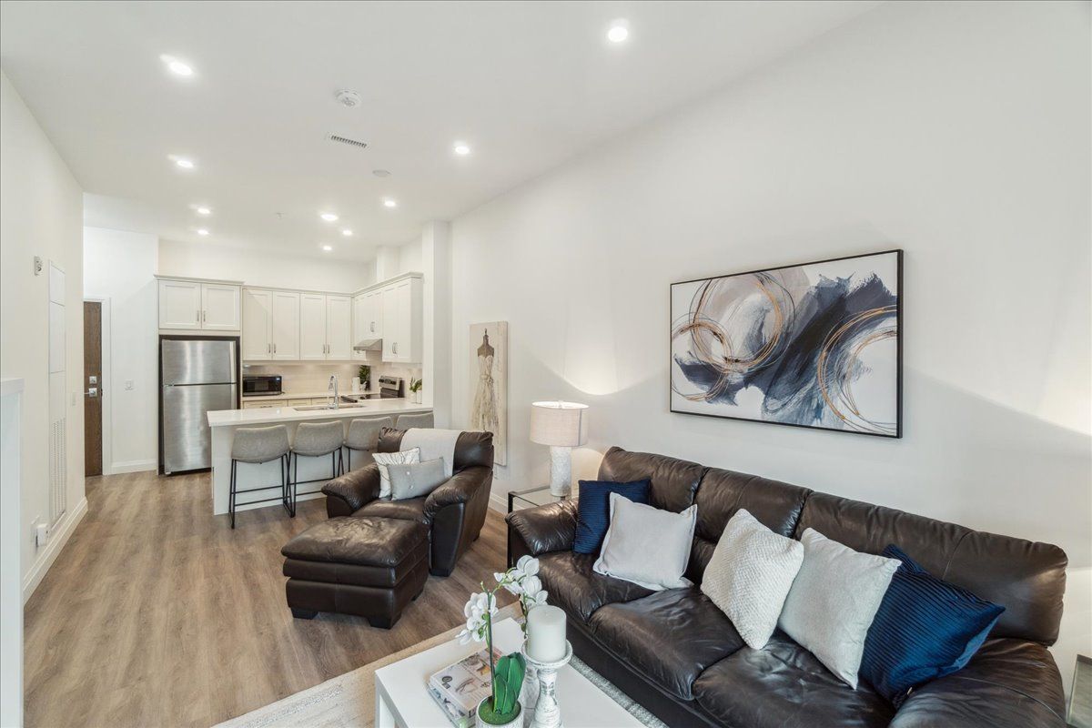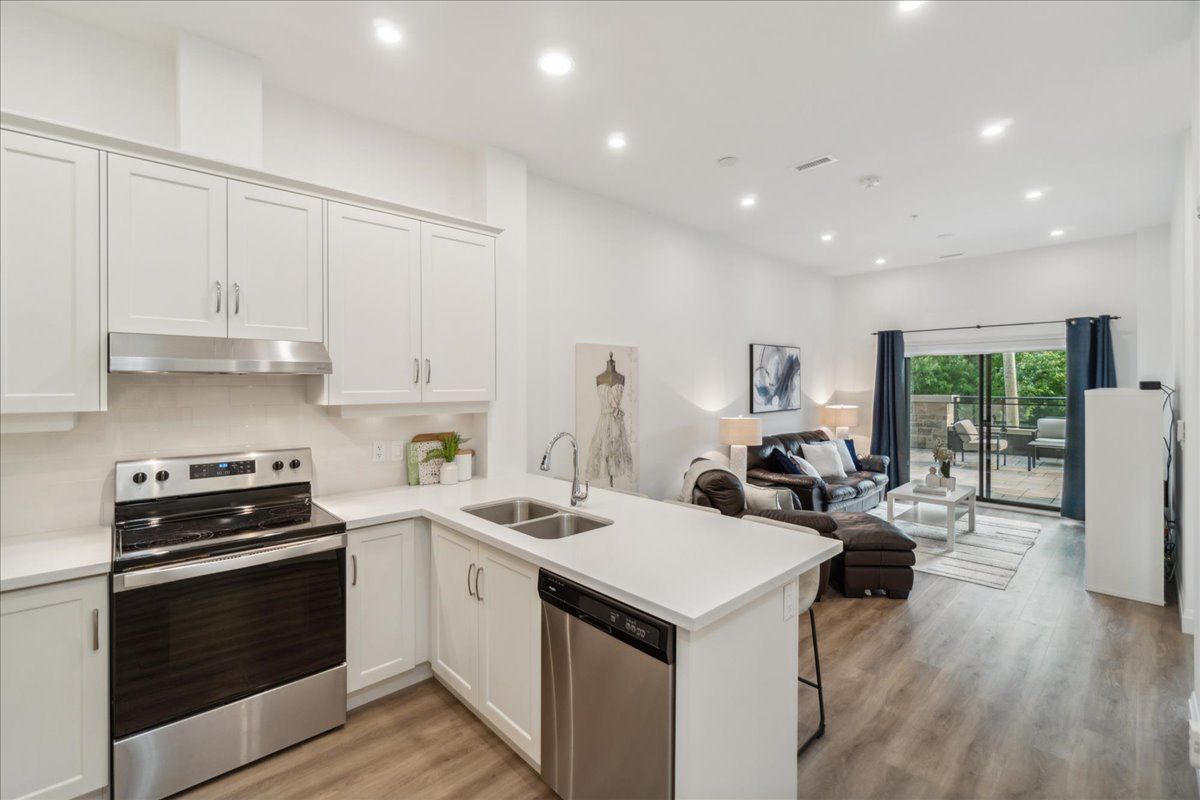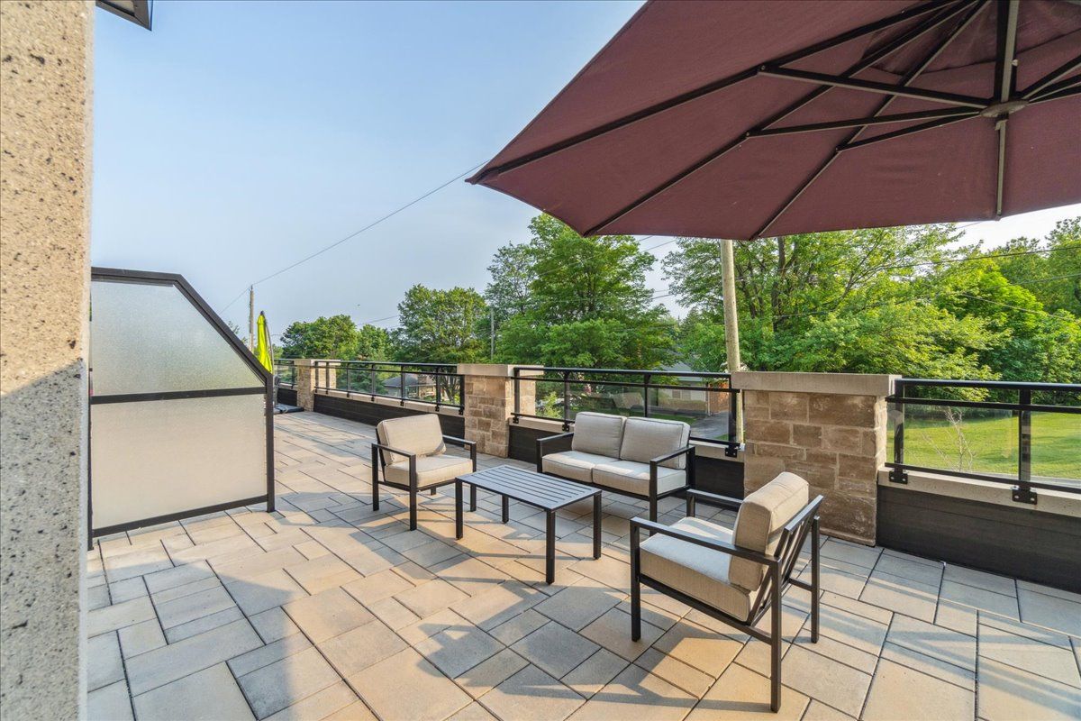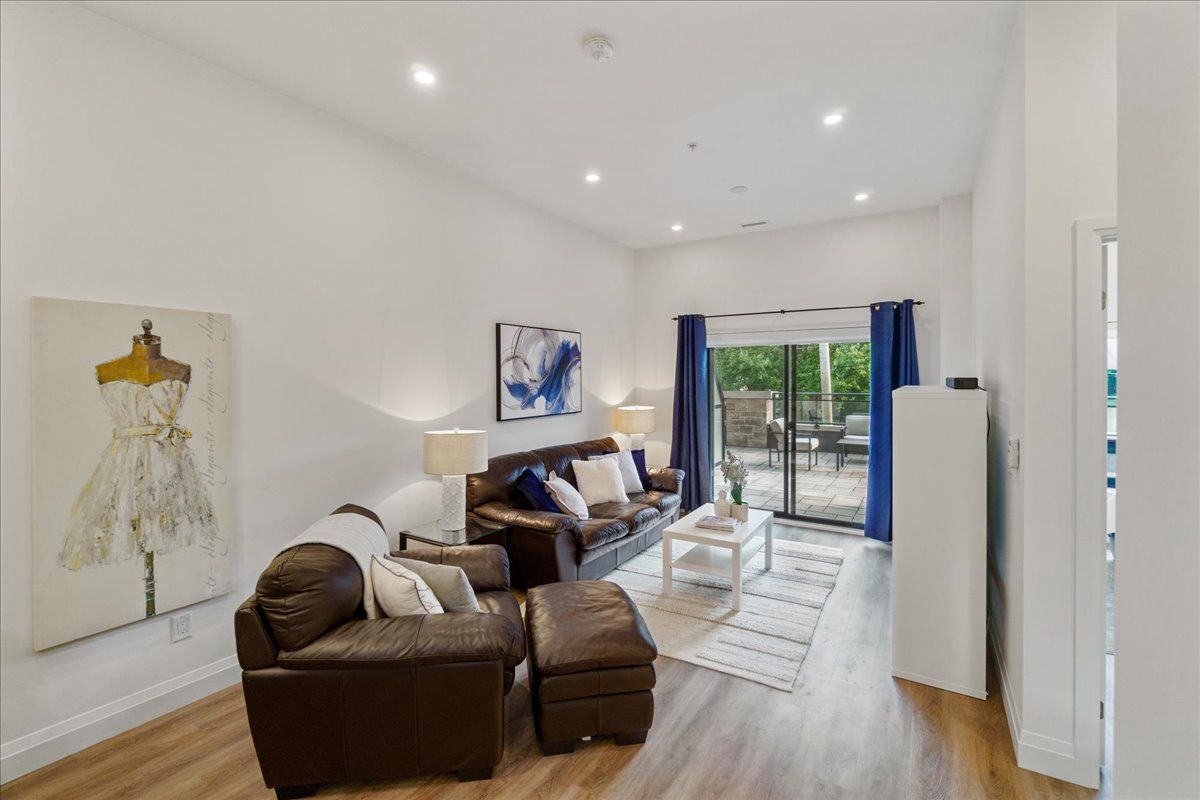 Welcome to the epitome of luxury living! This ground floor unit offers 708 sq ft of elegant space with 10-ft ceilings, high-end finishes, and luxury vinyl flooring throughout. The true highlight is the rarely offered 400 sq ft private terrace, providing a serene outdoor retreat. Embrace indoor-outdoor living at its finest. Enjoy exceptional amenities: concierge, fitness center, pet washing stations, modern common area with a warming kitchen, and a 6th-floor terrace with barbecues. Includes the added convenience of two parking spots. Condo fees include heat and water. Sophisticated ground floor living!