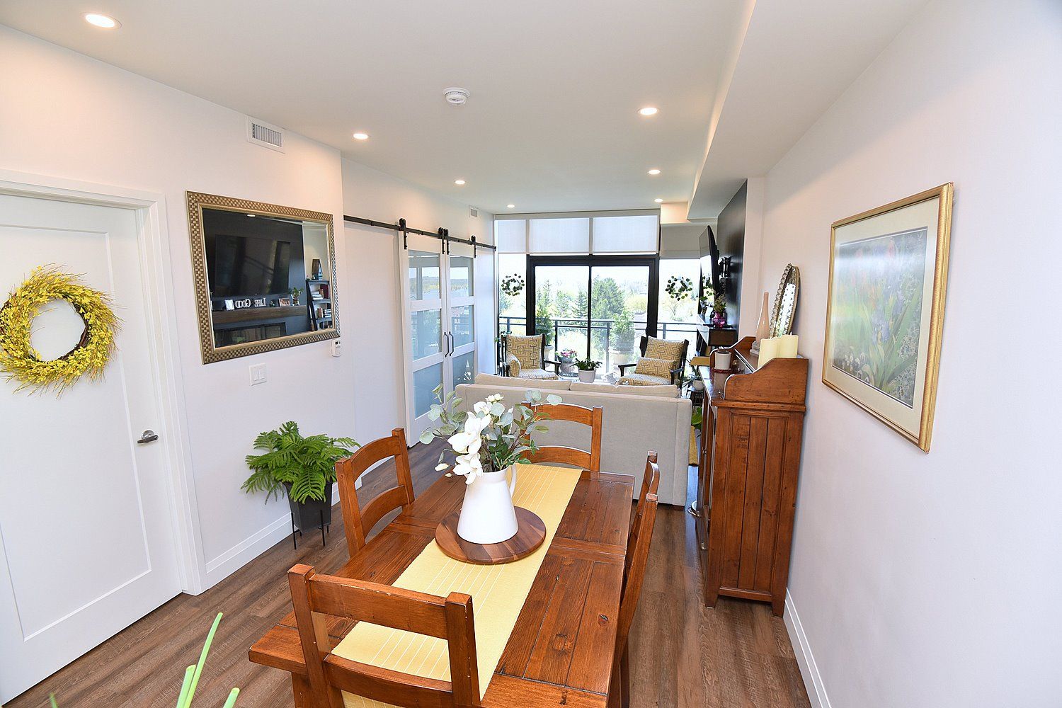 Interboard Listing with Realtors Association of Hamilton-Burlington* The Knoll model is the largest executive 1+1 bedroom unit in the View, Waterdown's most desirable condo building, boasting numerous upgrades that are sure to impress. Located on the penthouse level with floor to ceiling windows that offer spectacular views and have western exposure, this unit features: pot lights, an electric fireplace and mantel, (perfect for those cold raining days and a good book!), a beautifully appointed kitchen with quartz counters, a large accessible bathroom, with plenty of upgrades, as well as a large master bedroom with walk in closet. The building also features a stunning common area with warming kitchen, a gym, pet wash station, 6th floor common terrace with stunning southern views and the list goes on. Come and see for yourself today!Building features a stunning common area with a warming kitchen, a gym, pet wash station, 6th floor common terrace with stunning southern views and the list goes on.