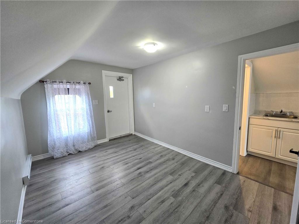 This updated private apartment comprises the whole top floor of the house, so you won't hear anyone walking around above you! The space feels nice and bright with its lovely afternoon sunlight. The rear of the house faces east and exits onto a deck with your private outdoor space. Comes with one parking spot, which is hard to find sometimes! Tenant pays heat/hydro on own meter, landlord pays water. Walk to the shops & restaurants on Ottawa St and the Centre on Barton. Come have a look!
