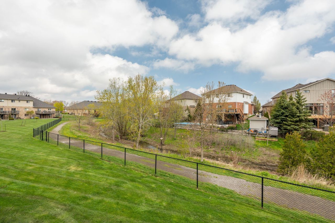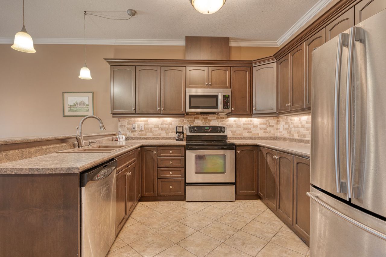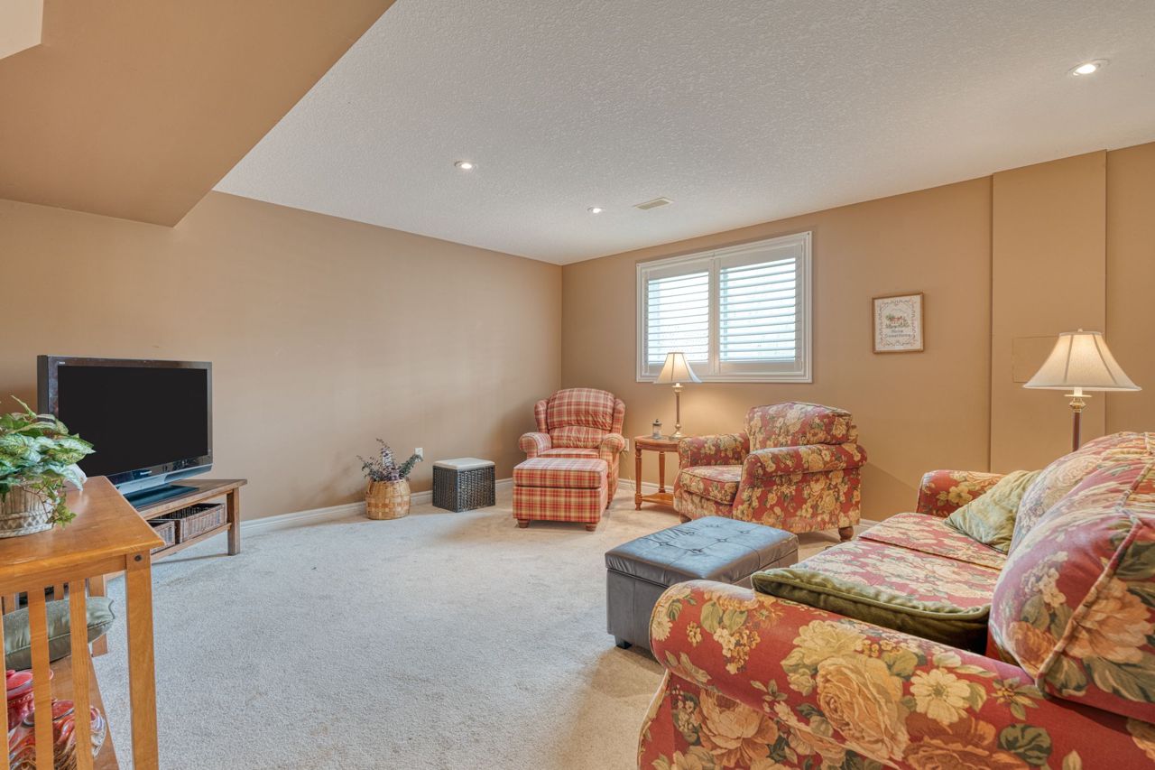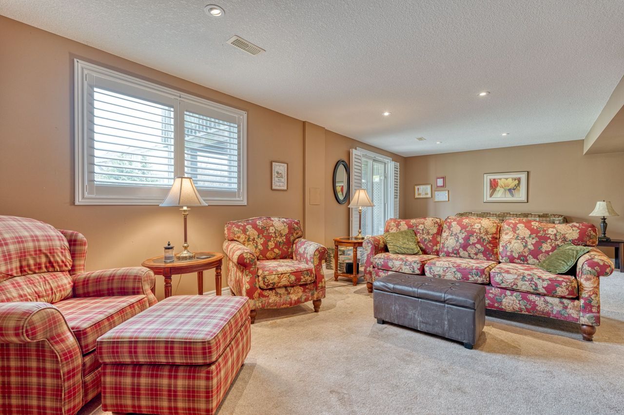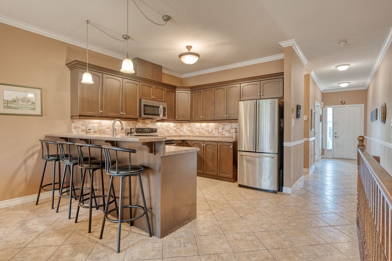 Rarely offered unit in quiet complex! This 2 bed, 2.5 bath bungalow town with finished walk out basement backs onto greenspace that you can enjoy from either the upper or lower patio areas. Hardwood flooring, gas fireplace, generous size primary bedroom with ensuite. The second bedroom is currently used as a dining room. Finished basement with large family room, full bathroom and another room for either an office, gym, hobby room or bedroom. This home sits in a well run quiet complex. Single garage with inside entry. Furnace & AC (2021) Shingles (2022). Pets permitted. Don't delay! RSA.