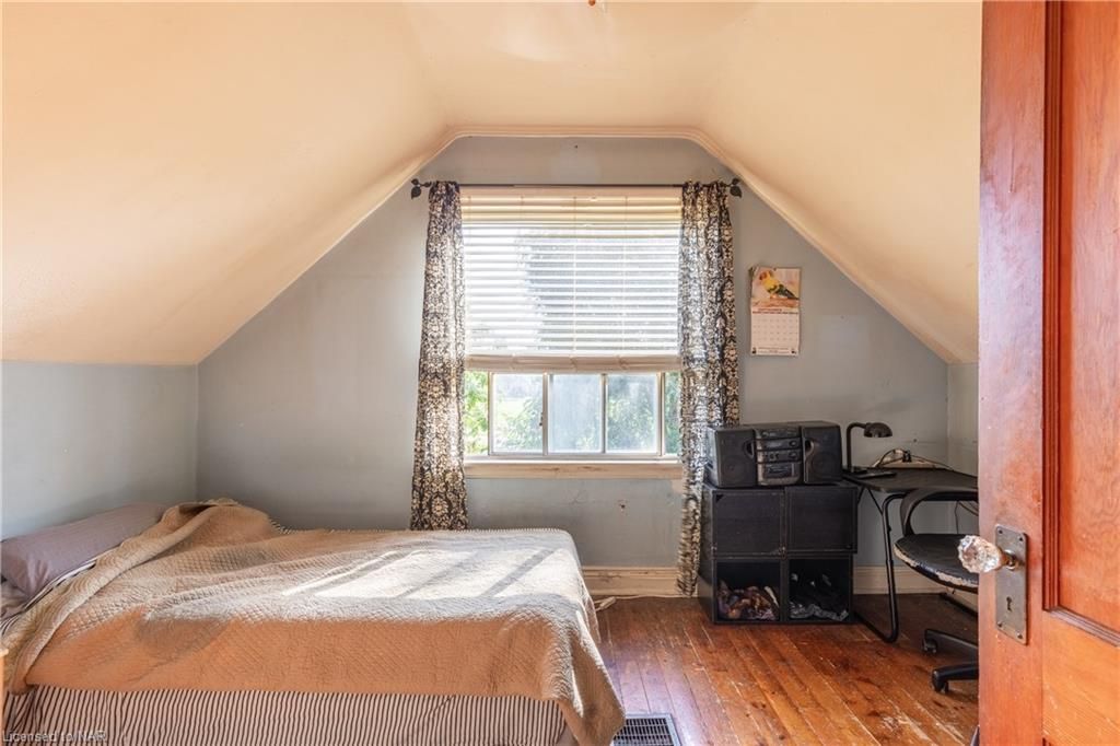 Looking for a project? Look no further! This 1.5 storey home is located a quiet desirable neighborhood and backs onto Montgomery Park. The main floor has a large open living/dining room, 2 bedrooms, 4 piece bathroom and a kitchen with a large mud room attached that has panoramic views of the backyard and park. Upstairs has 2 bedrooms and a 2 piece powder room. A third bedroom was taken out to make a large master bedroom but could easily be converted back. The basement is unfinished. This could be a great winter project!