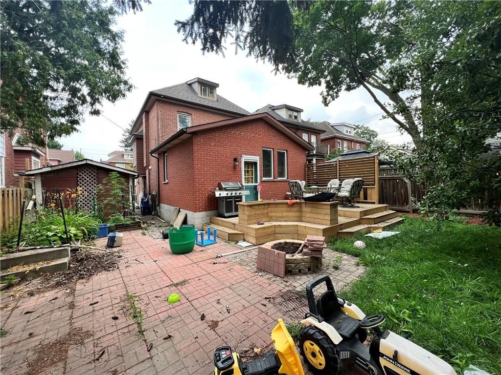 Set amongst other stately vintage homes, this classic 2.5 storey all brick home has immense potential. It offers lots of space for a growing family with a spacious main floor including a separate living room, dining room, kitchen & bonus addition including a family room, dinette, powder room & access to the deck & fully fenced backyard. Upstairs you will find 3 spacious bedrooms, 4 piece bathroom & an attic space awaiting your finishing touches. The basement features a separate side entrance, 3 piece bathroom & lots of space for future living space. Features include: original charm throughout with hardwood flooring & trim, driveway for 4 cars, detached garage & inviting front porch. Steps to public transit & the proposed LRT transit line. 10 minutes to the Hunter GO station. Easy highway access. Close to all amenities & a short walk to Gage Park & Tim Horton field. RSA. SQFTA (does not include attic).