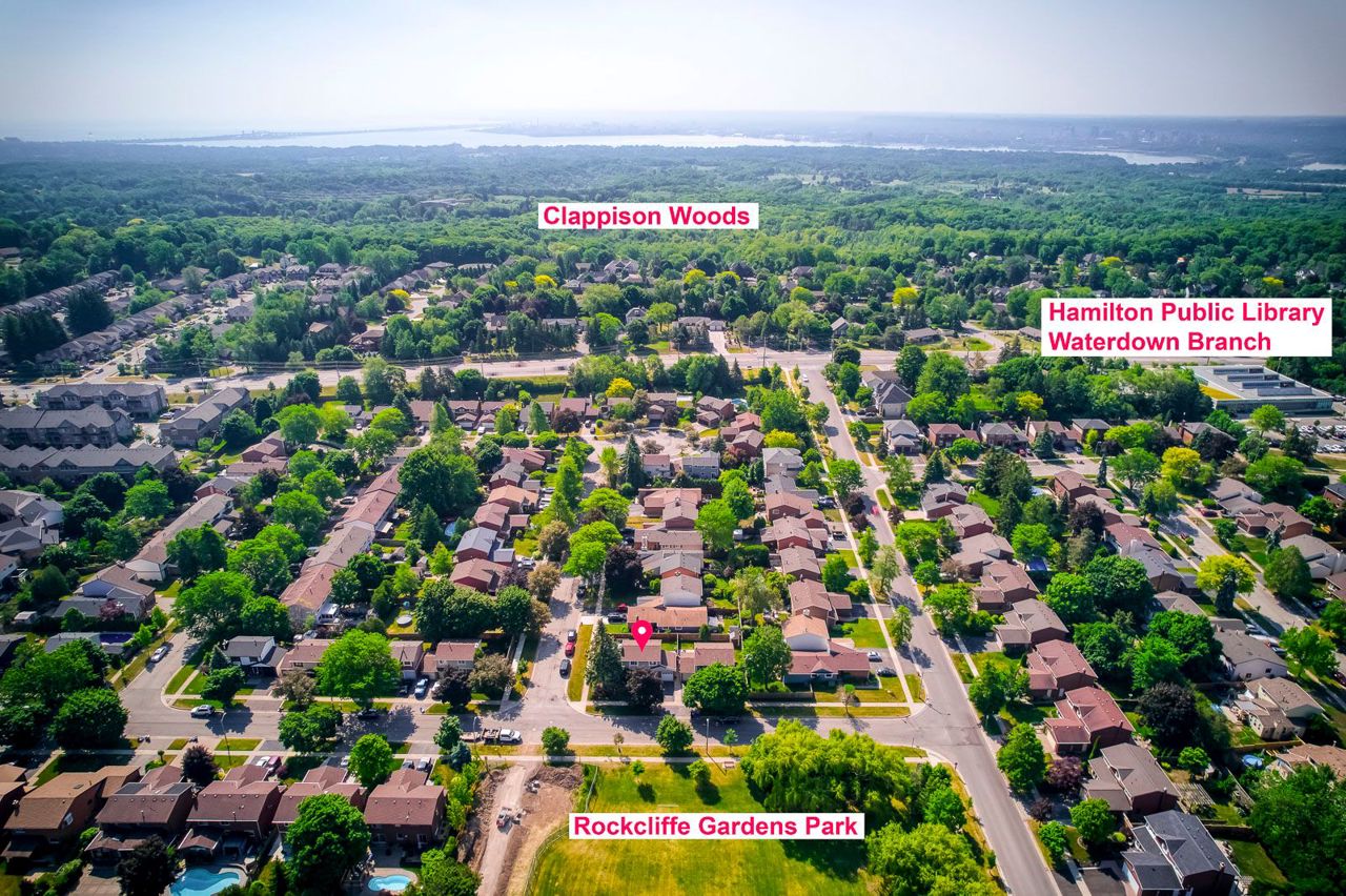 Welcome To Family Friendly Waterdown! Fabulous 3 Bedroom, 3 Bath Home, facing a beautiful park.Quiet Street, Perfectly Located Within Walking Distance To Schools, Trails, Library, Shops, Restaurants, And Parks. Main Lvl Has Nwr Flooring, Trim, F/P, Powder Rm, Laundry Rm. Upper Lvl Has 3 Beds W Nwr Closet Doors & Updated Bath. new backyard patio 2021, new hardwood stairs 2022, pot lights 2022, Rec Rm With Nwr Carpet, Trim, Pots, Bath W Nwr Shower. Private Fenced Backyard W Nwr Deck. Updates: Sump Pump '17, Shingles '15, Furnace/Ac '11. Fab Location Across From Park. Walk To Restaurants, Shops, Schools.*Linked At Foundation* Min To Go, 407, 403, 401. Portion Of Grg For Laundry, Can Move To Bsmnt.