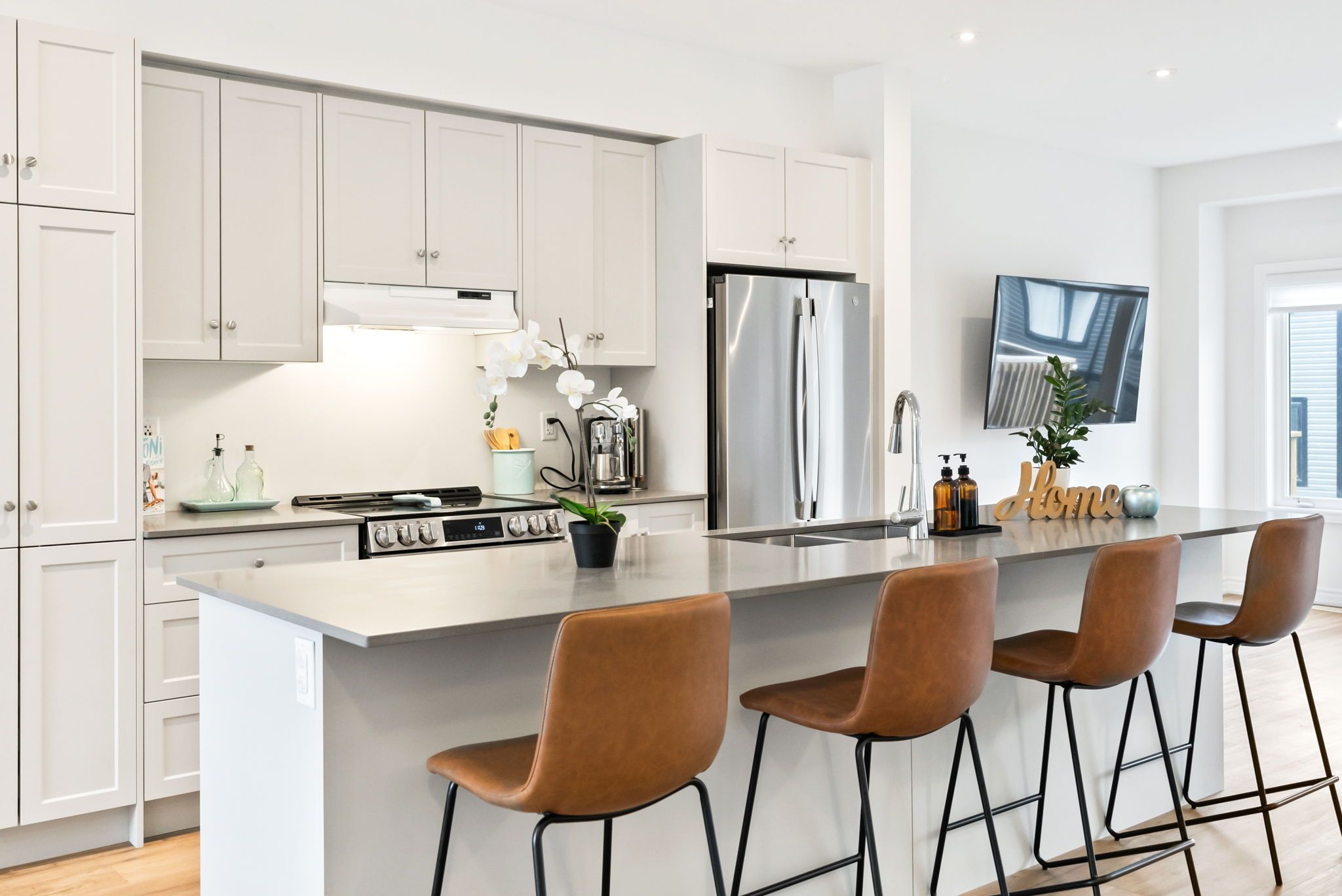 Stainless Steel Appl Quartz Counter Breakfast Bar