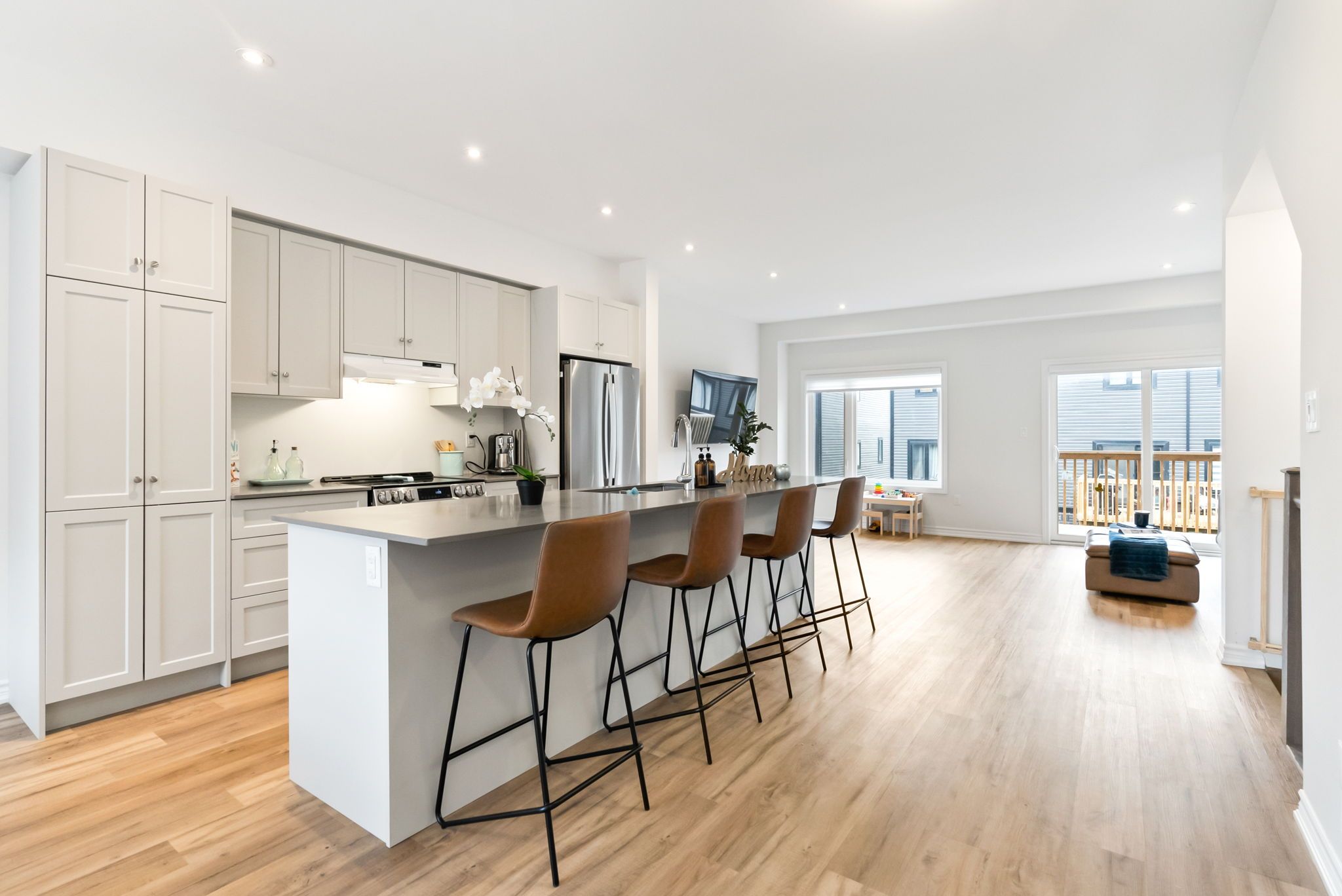 Open Concept W/O To Deck Pot Lights