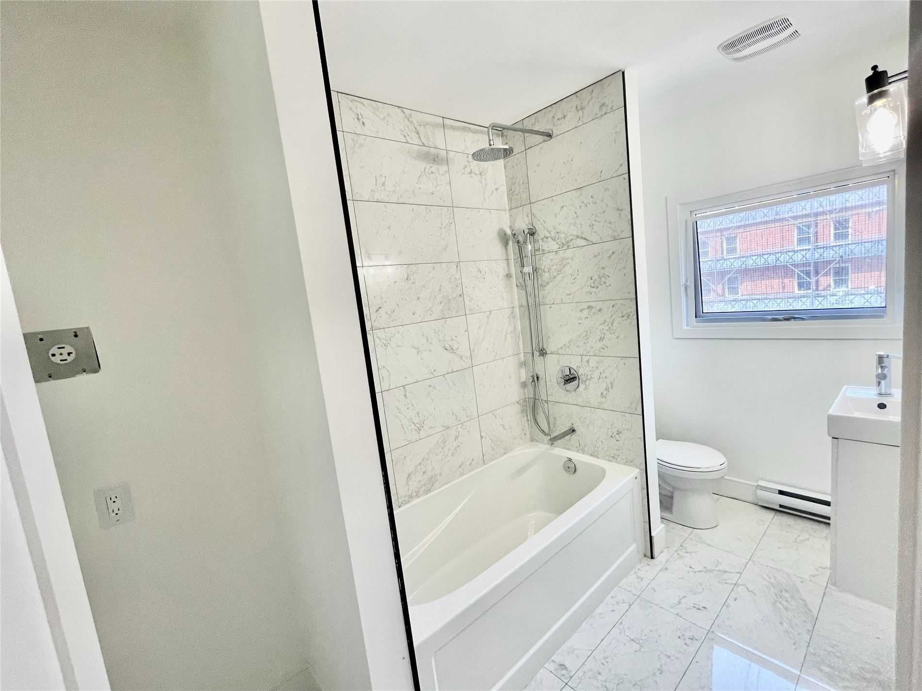 Lease Fully Renovated Modern Apartment! 800 Sq Ft Third Floor Upper Unit, 2 Bedrooms, 1 Full Washroom, 1 Kitchen, Washer/Dryer, Dishwasher, High Ceiling, Exposed Brick Accent Wall, Fire Escape Exit Off Kitchen, Baseboard Electric Heat, Lower Level Storage Locker,2 Rear Parking Spaces, $2,000/Mth + Utilities, Parking And Storage Locker Additional Cost.