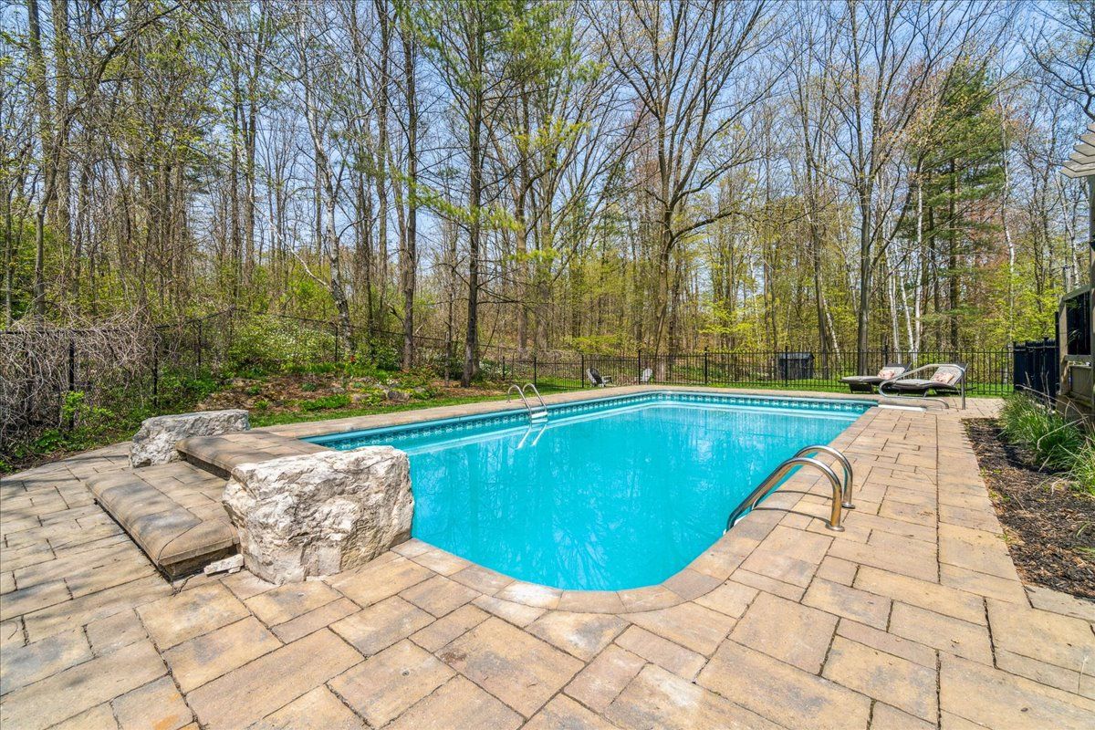 Beautiful 2 storey home located at the end of a quiet cul-de-sac on one of the best streets in Carlisle. This 4+2 bedroom 4+1 bathroom home is situated on a huge 2 plus acre lot backing onto a forested ravine and green space. Great curb appeal and an extensively landscaped lot giving you the upmost in privacy. Outstanding floor plan with over 6300 sqft of luxury living space. Large principal rooms and an amazing chefs kitchen with access to a outside terrace overlooking the private backyard and salt water pool. Main floor features large family room with vaulted ceiling and wood burning fire place. Second floor has large primary bedroom with ensuite and walk in closets, and three spacious bedrooms sharing a 5pc bathroom. Lower level has been recently professionally finished with 2 additional bedrooms, 3pc bathroom, 2 stairways, huge recreation room and bar. Walk out the backyard and enter trails into the forest where you can enjoy the peacefulness of this beautiful property.Enjoy the many walking paths, quiet family friendly streets, nearby park, and only a short walk to library, restaurant and other amenities of Carlisle.
