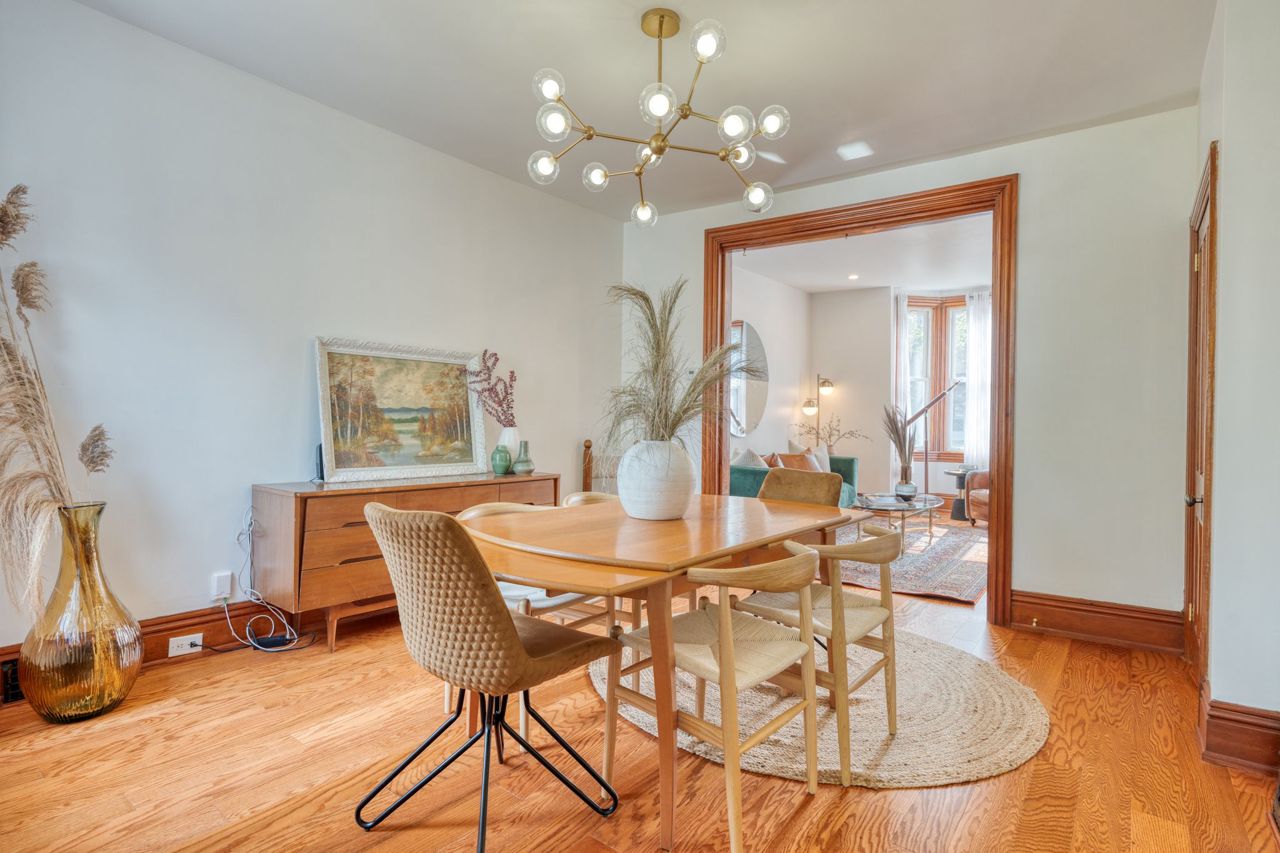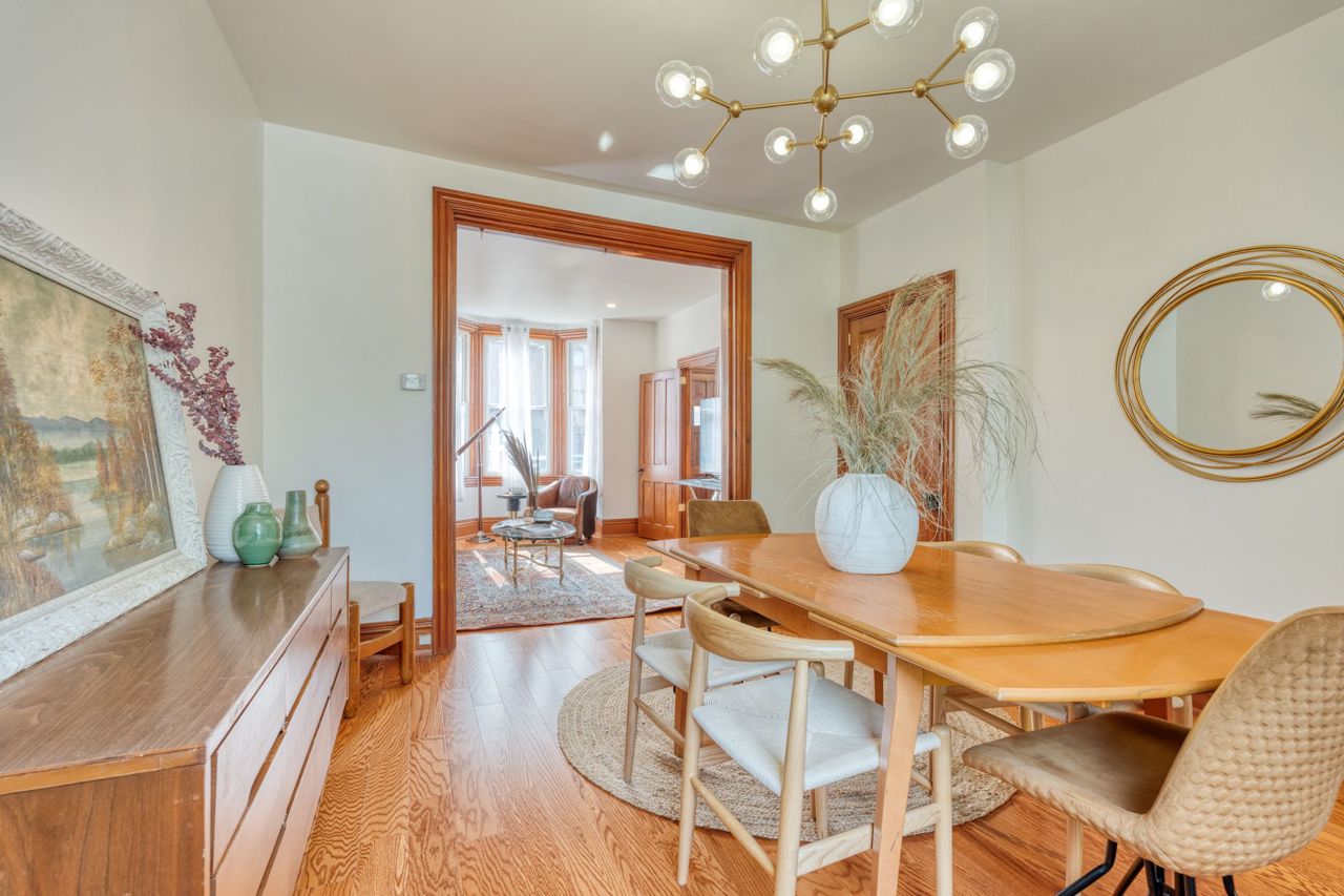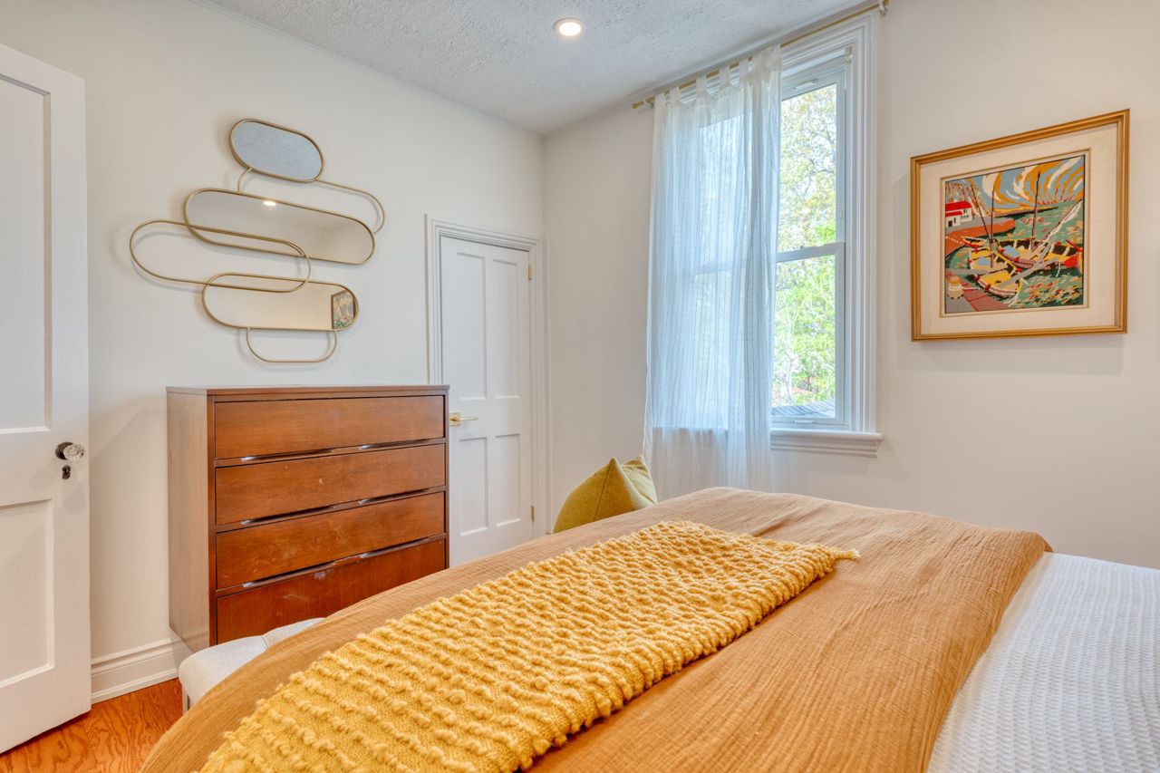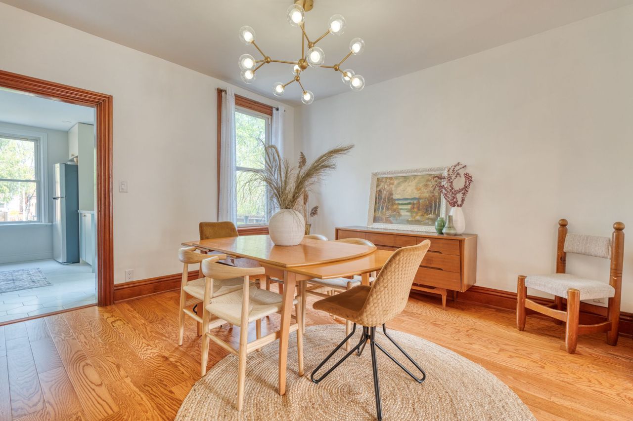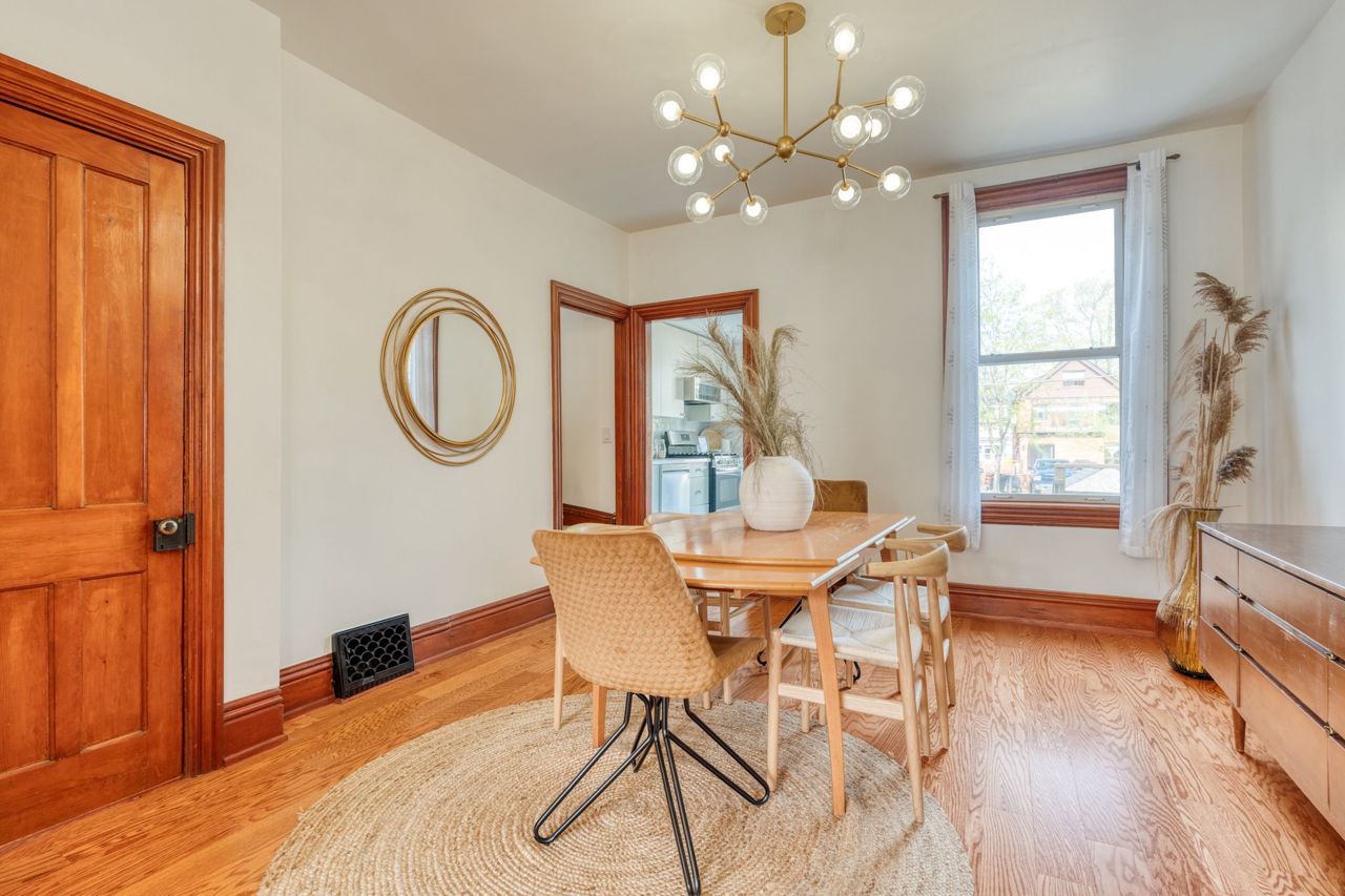 This tastefully updated home has all the contemporary conveniences while retaining its original charm. Upon entering, you'll be greeted by the stunning living and dining area, complete with engineered hardwood, ample natural light, and high ceilings. The kitchen includes direct access to the backyard and has been modernized with quartz countertops and stainless steel appliances. The flow continues upstairs to find two bedrooms and a 5 piece bathroom. Outside, you'll appreciate the patio area perfect for hosting guests or enjoying a morning coffee. This home has been updated with the utmost care, ensuring that the original character of the property has been preserved such as the original woodwork and dedicated living spaces that add to the charm of this downtown gem. With two parking spots, you can leave your car at home and explore all the city has to offer. This home's prime downtown location puts you steps away from all the best shopping, dining, and entertainment in Hamilton. RSA.