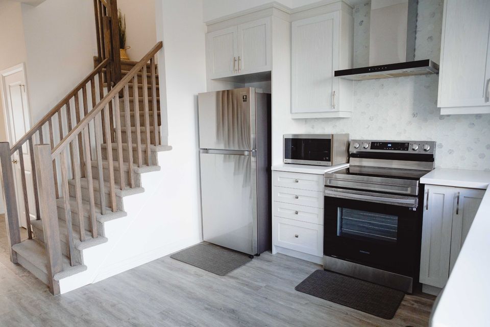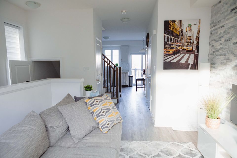 Absolute amazing corner unit townhouse which backs onto a premium lot of park with a gorgeous view. Upgrades including beautiful stone wall in the great room, spacious kitchen with stainless steel appliances with quarts counter top, walkout to deck from kitchen, den on ground level ( with walkout to yard), primary bedroom has walk in closeteasy to access to QEW, 401, redhill, lincoln alexander parkway, go train and public transit