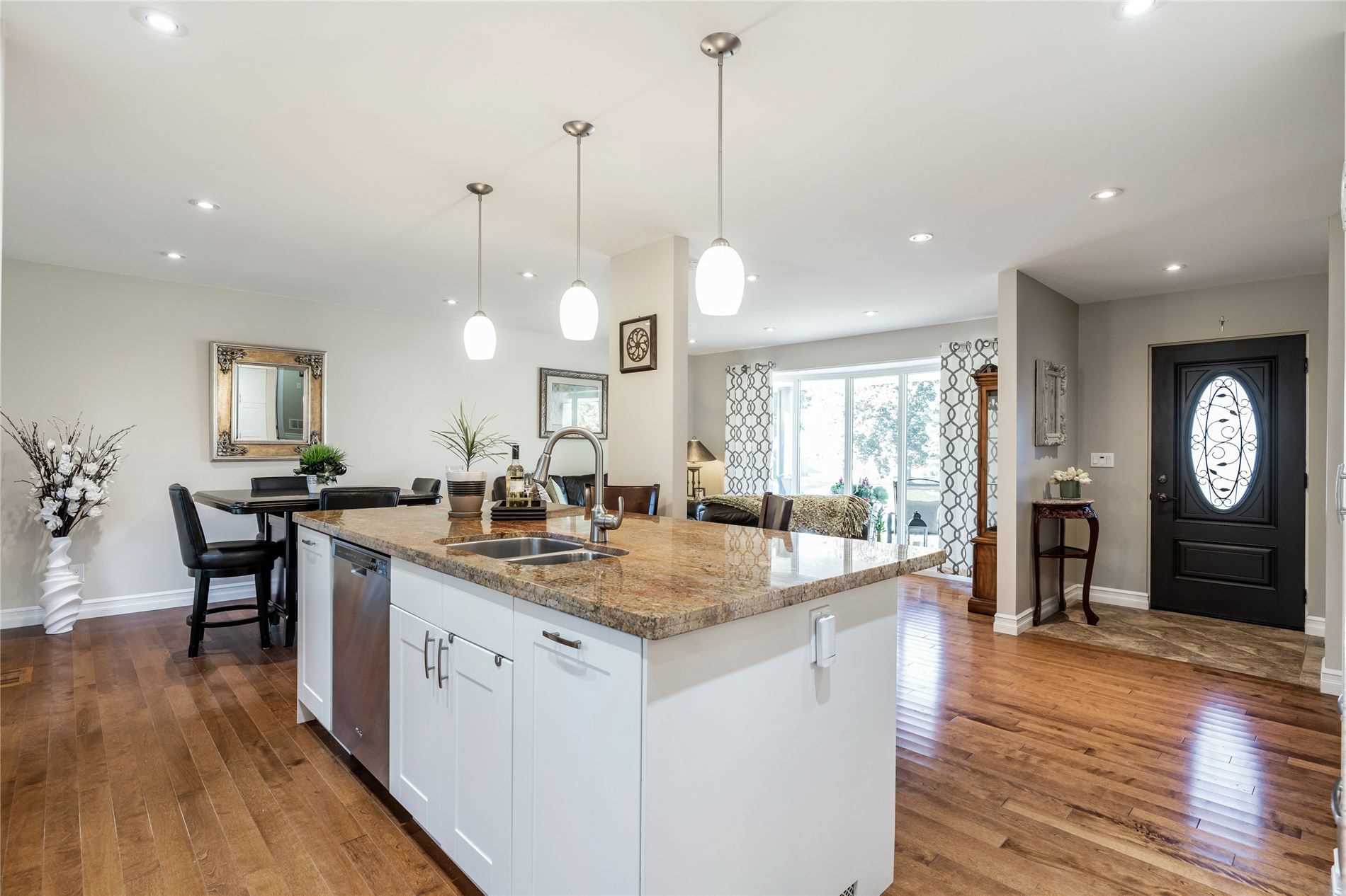 Peaceful Country Living! Sprawling Picturesque Home Located In The Heart Of Sought After Carlisle On Beautiful Half Acre Lot. Hardwood Floors Through-Out. Updated Kitchen With Granite Counter, Pot Lights And Large Centre Island. Many Upgrades Including Heated Roof, Plumbing, Electrical, Flooring, Doors, Garage Doors, Vertical Siding, Stucco, Shed, Foam Insulation In Basement & Updated Attic Insulation, 200 Amp Service. Ll Has Sep Entrance, Addit'l Bdrm. S/S Fridge, S/S Gas Stove, S/S Dishwasher, S/S Washer, S/S Dryer, S/S Built-In Microwave, Garage Door Opener & Remote, Workshop, Water Softener, Window Coverings, Blinds, All Elfs, Exclusions: Liv Rm Curtains, Speakers In Family Room