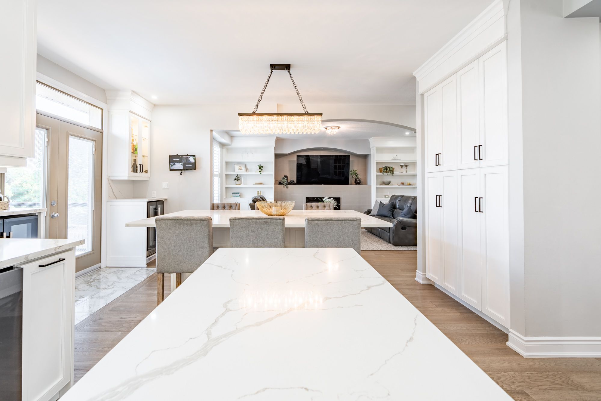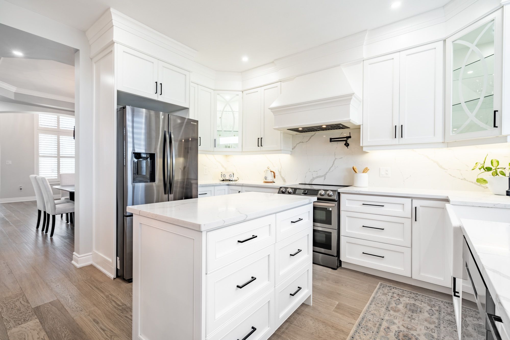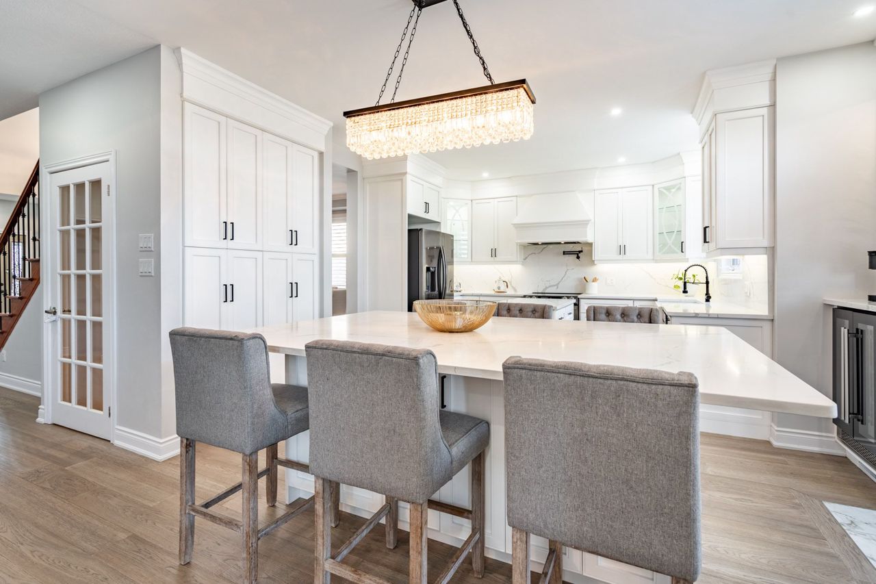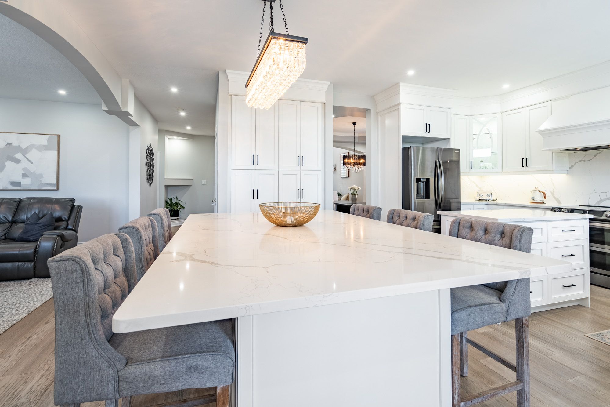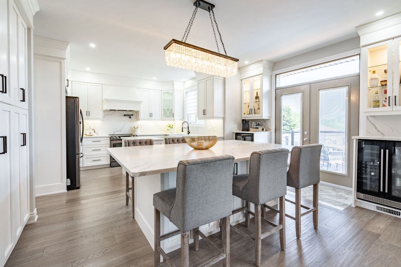 kitchen/ main floor finishes with flawless concept including exquisite 6-8 seat island & soaring ceilings